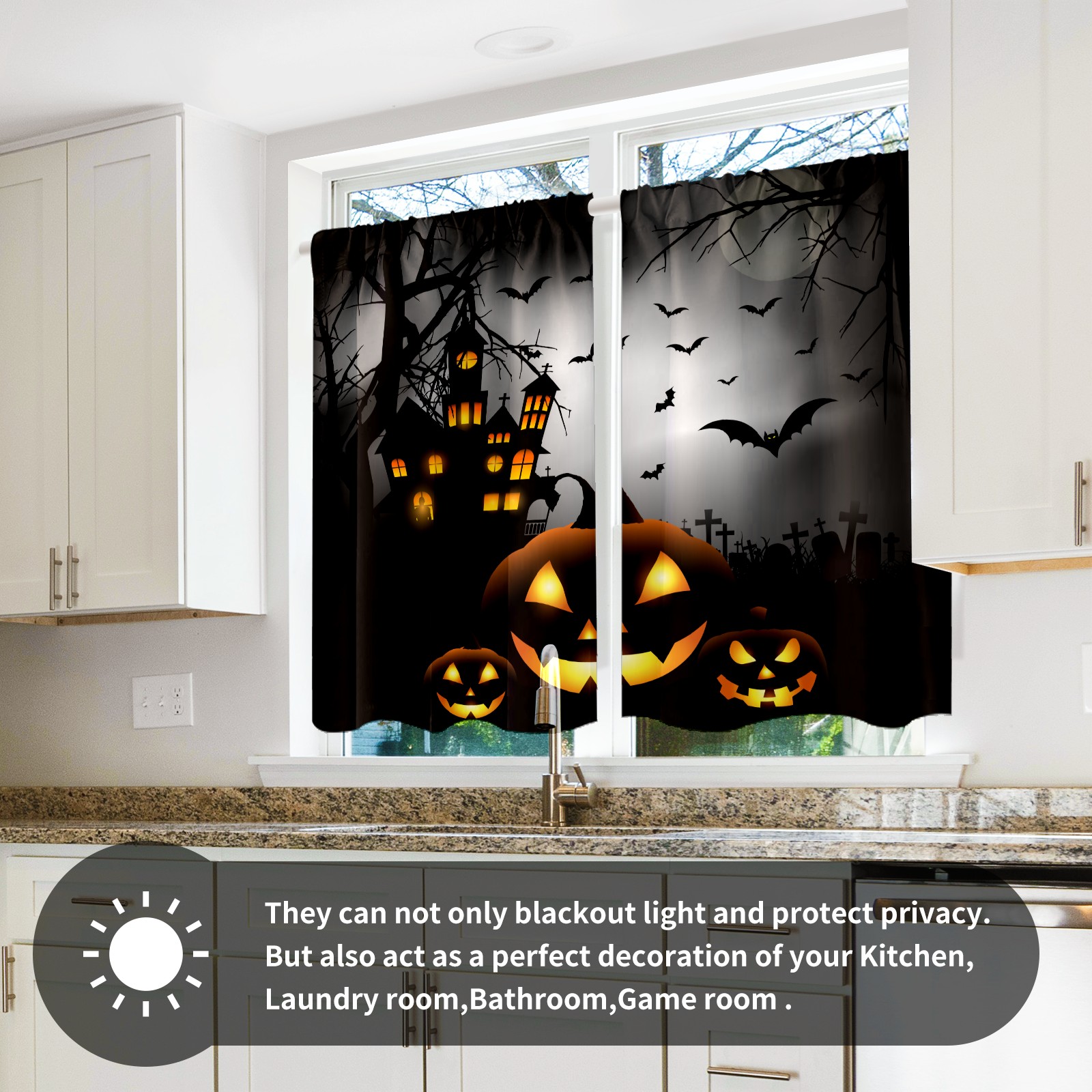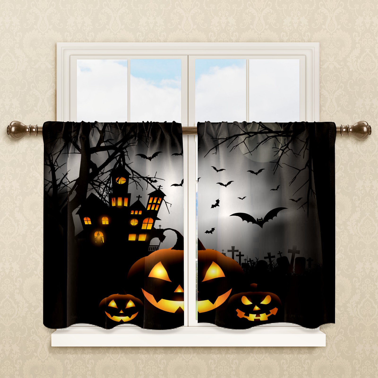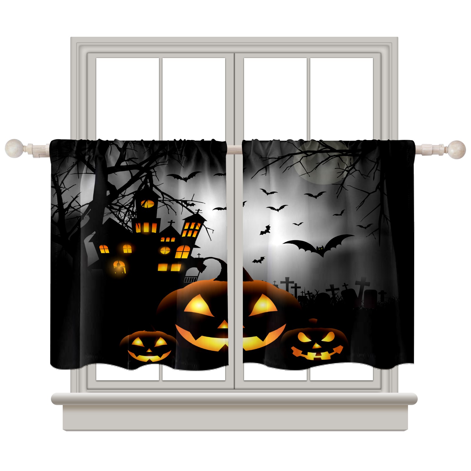 Шторы-панно для дома, декоративные драпировки для гостиной и спальни, легкие и прочные, Halloween Pumpkin Light & Ancient Castle-01
