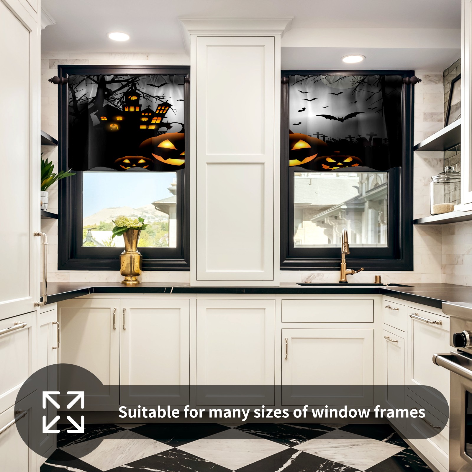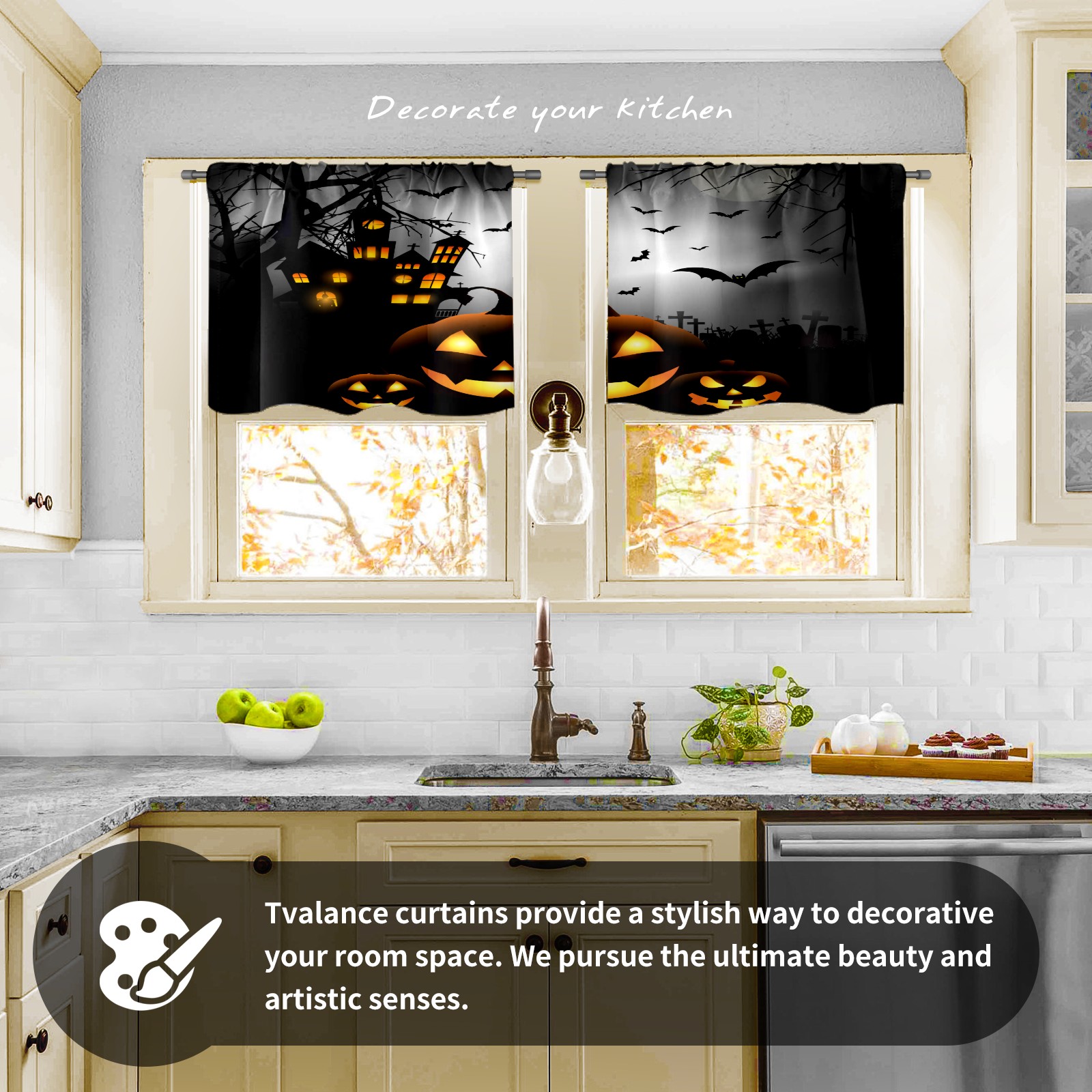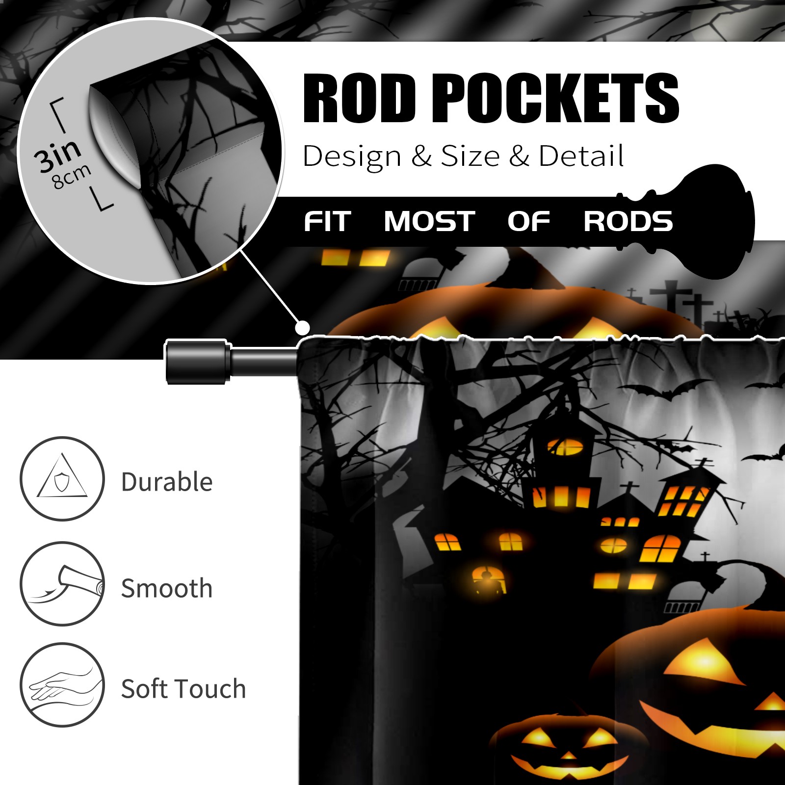 Шторы-панно для дома, декоративные драпировки для гостиной и спальни, легкие и прочные, Halloween Pumpkin Light & Ancient Castle-01