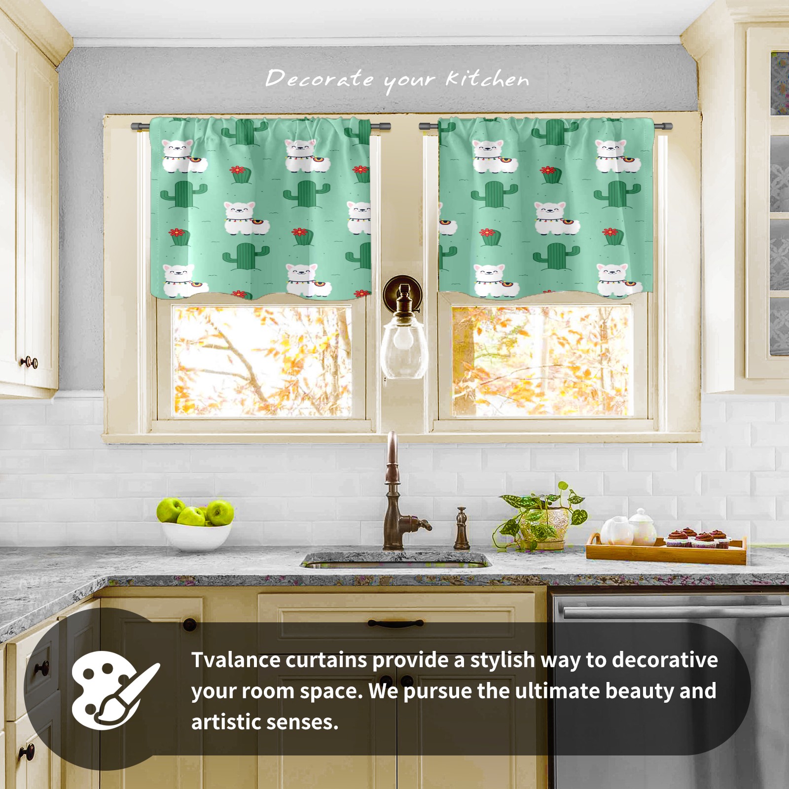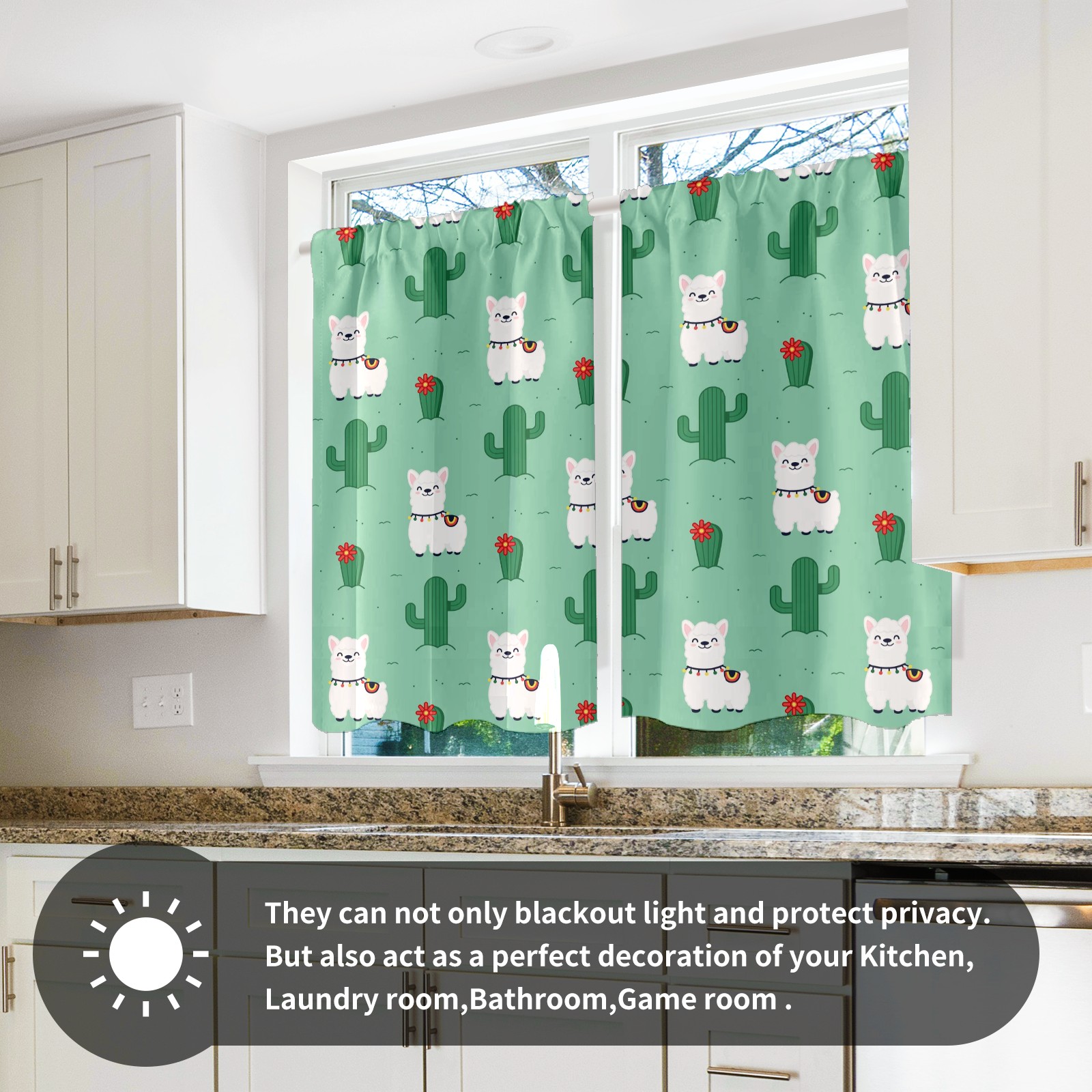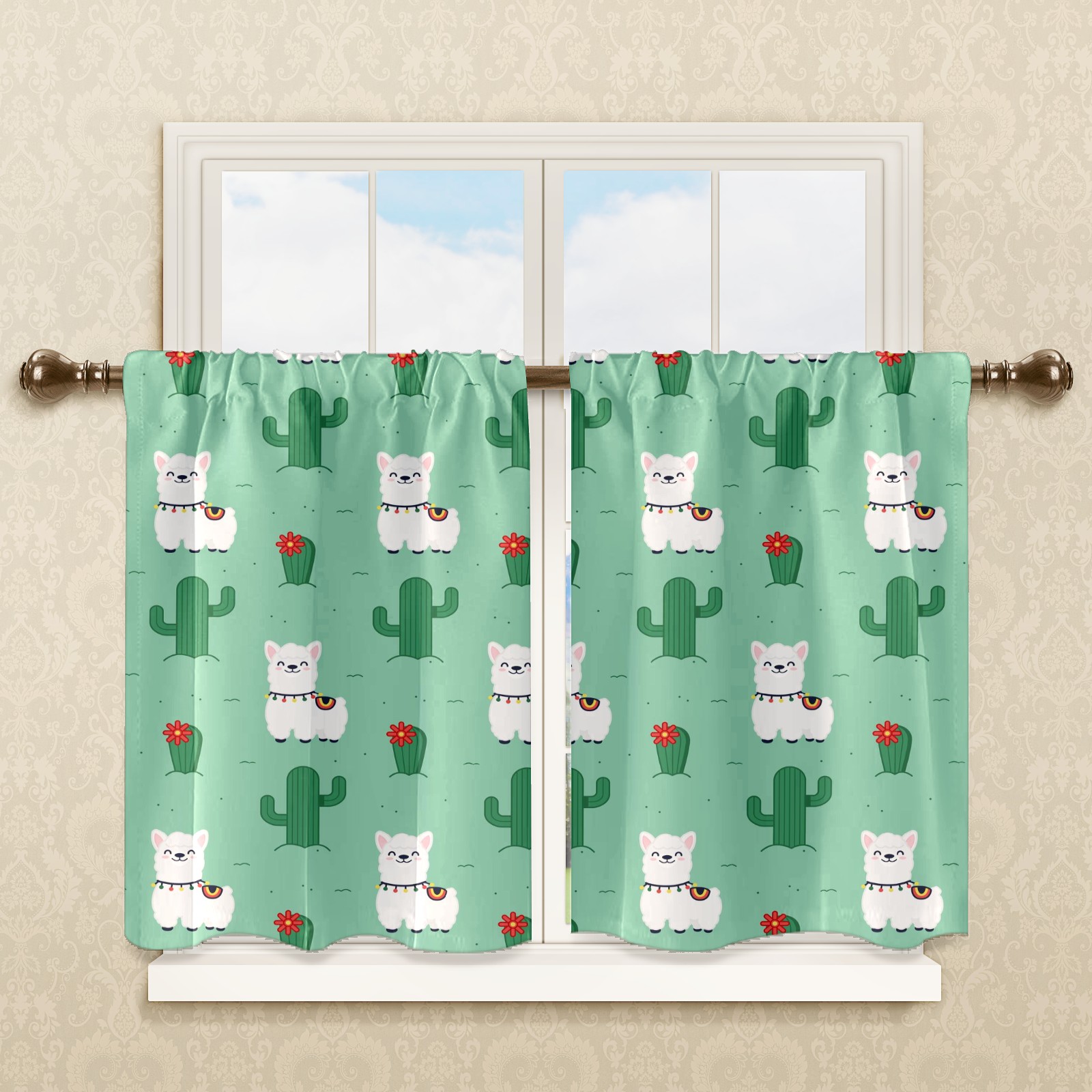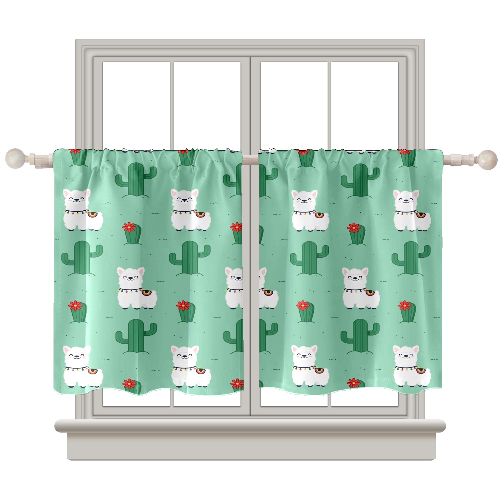 Шторы-панно для дома, декоративные драпировки для гостиной и спальни, легкие и прочные, Alpaca Llama White Cactus Green