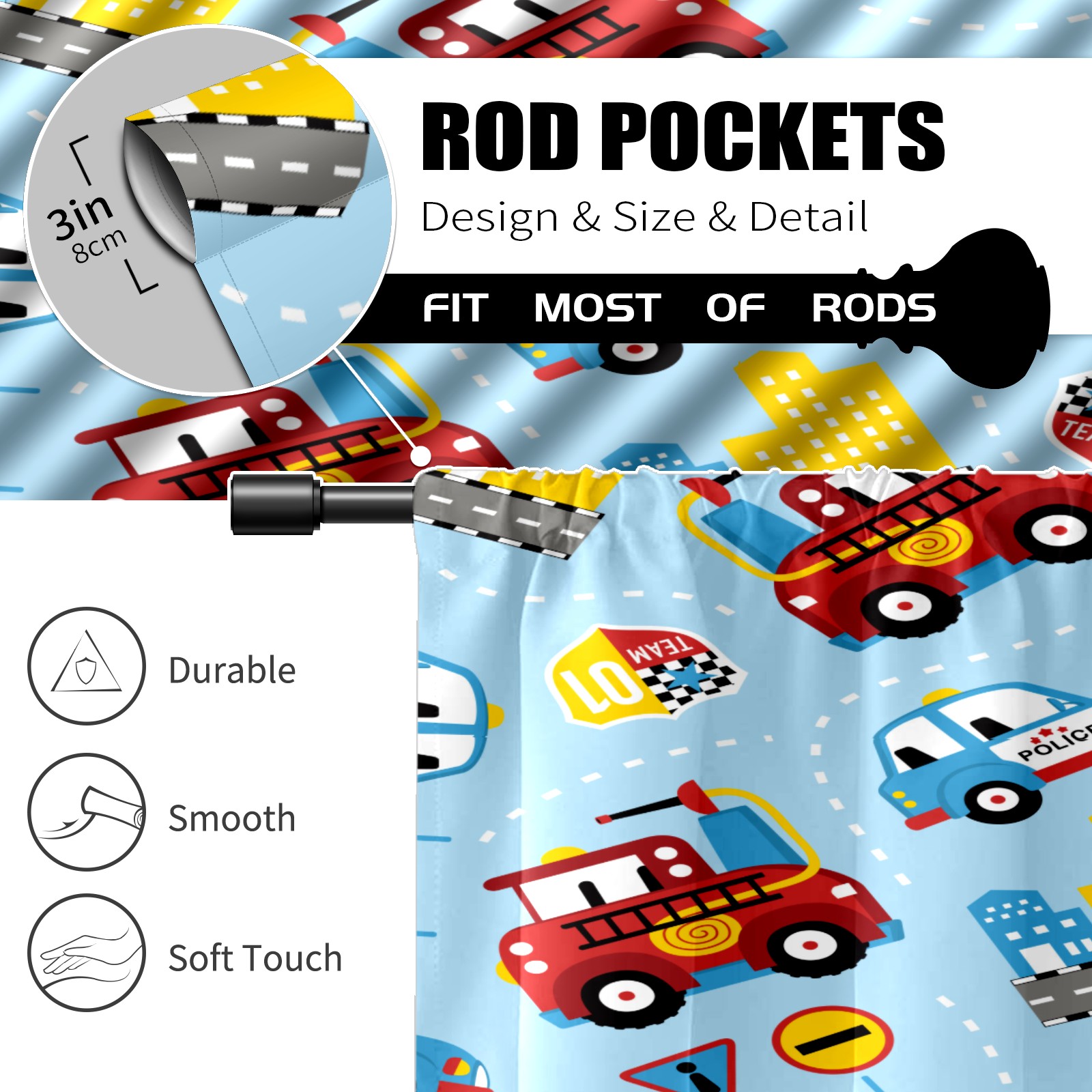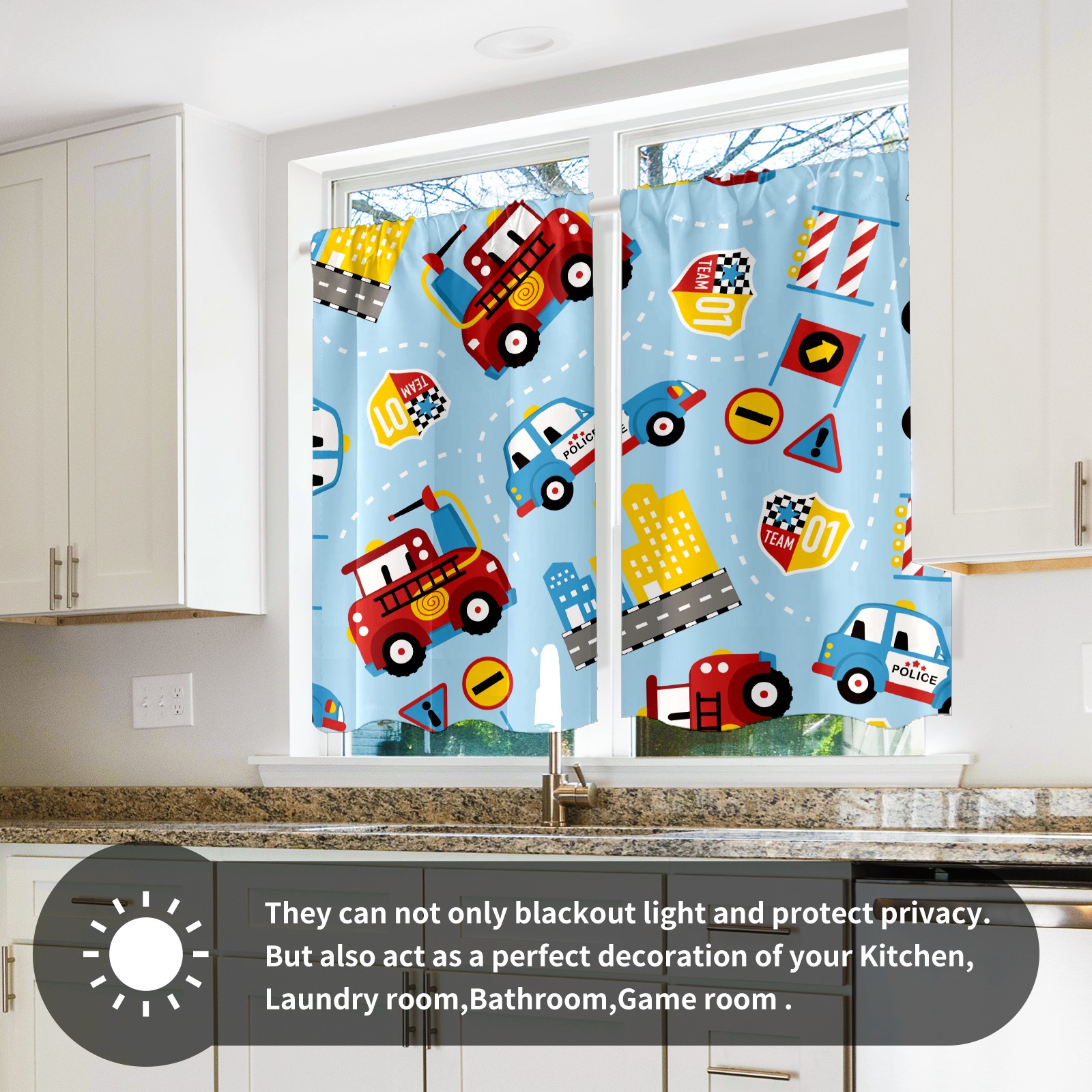Шторы-панно для дома, декоративные драпировки для гостиной и спальни, легкие и прочные, Cartoon Cars Pattern