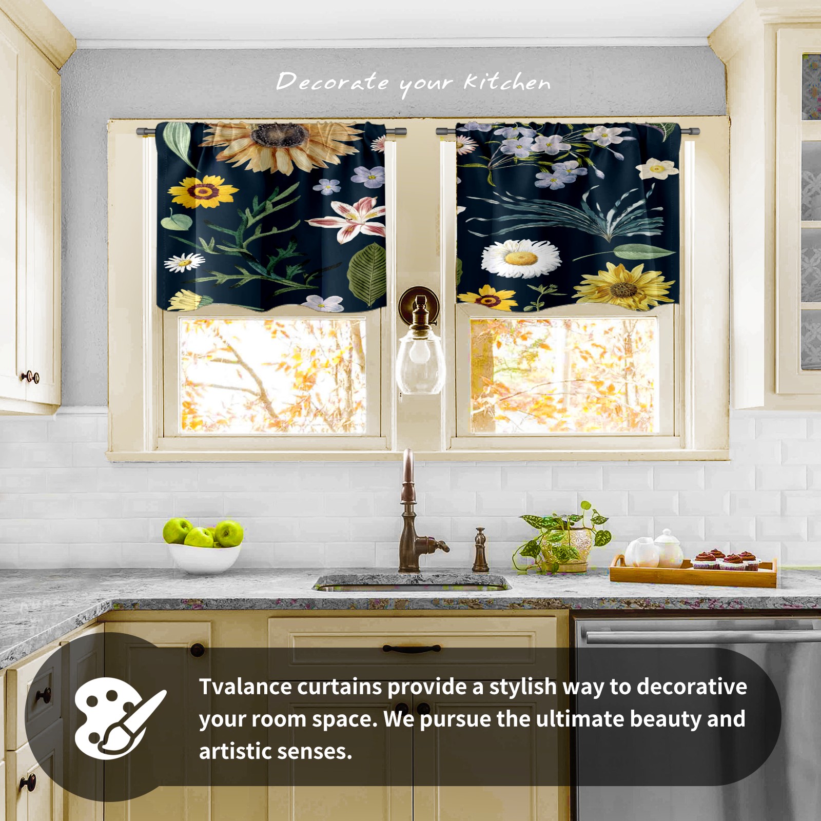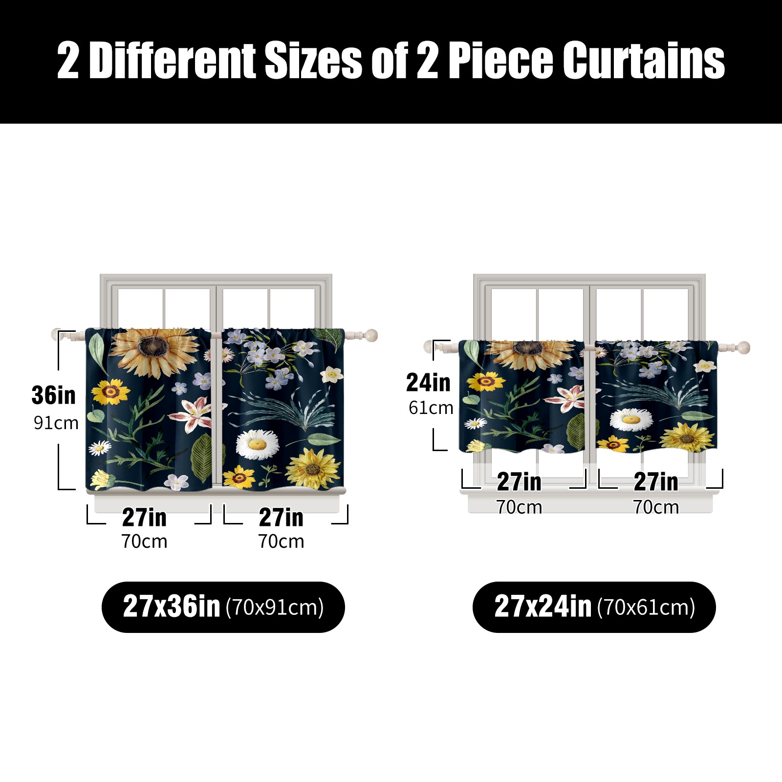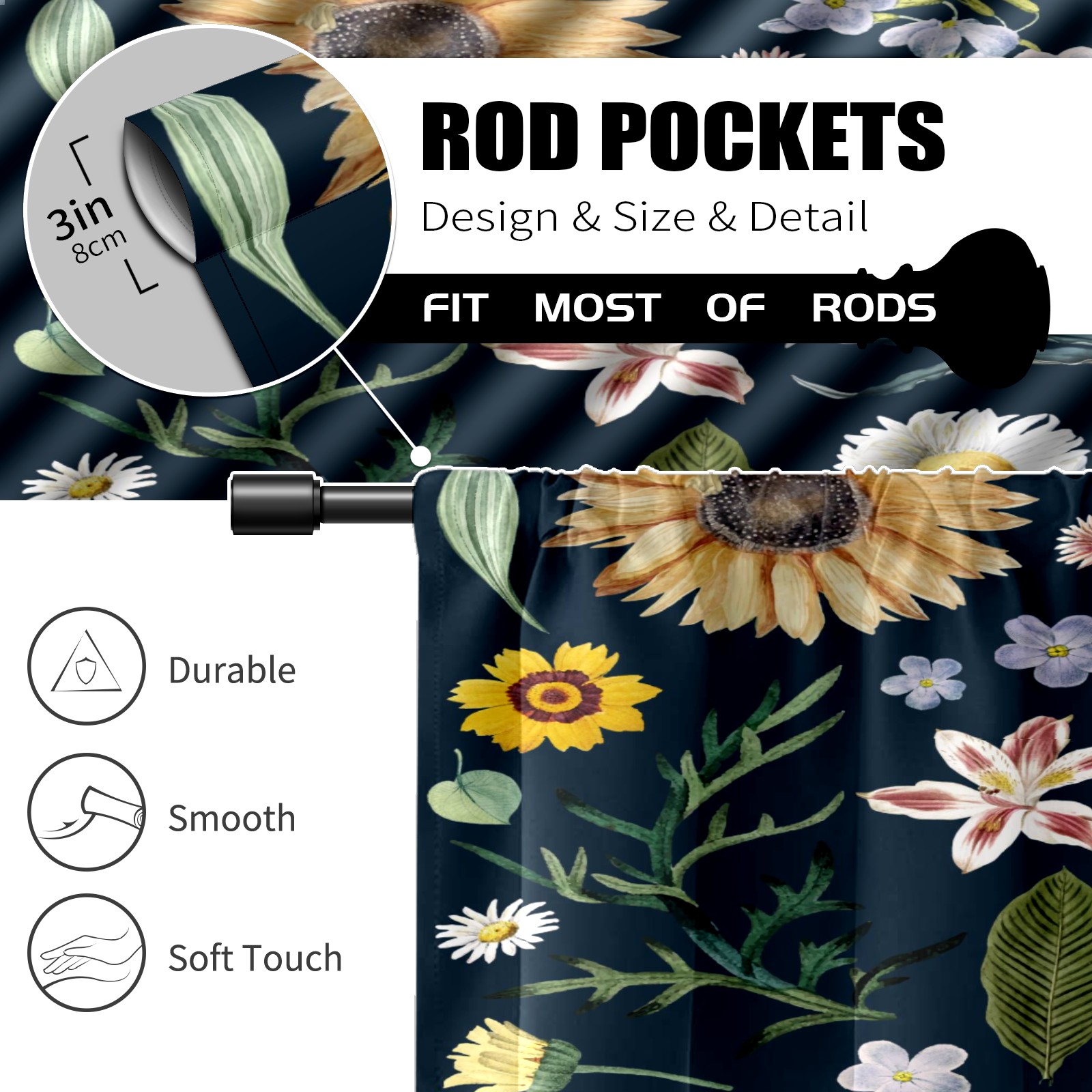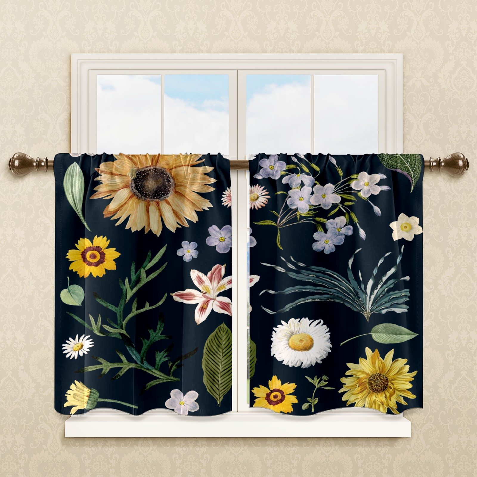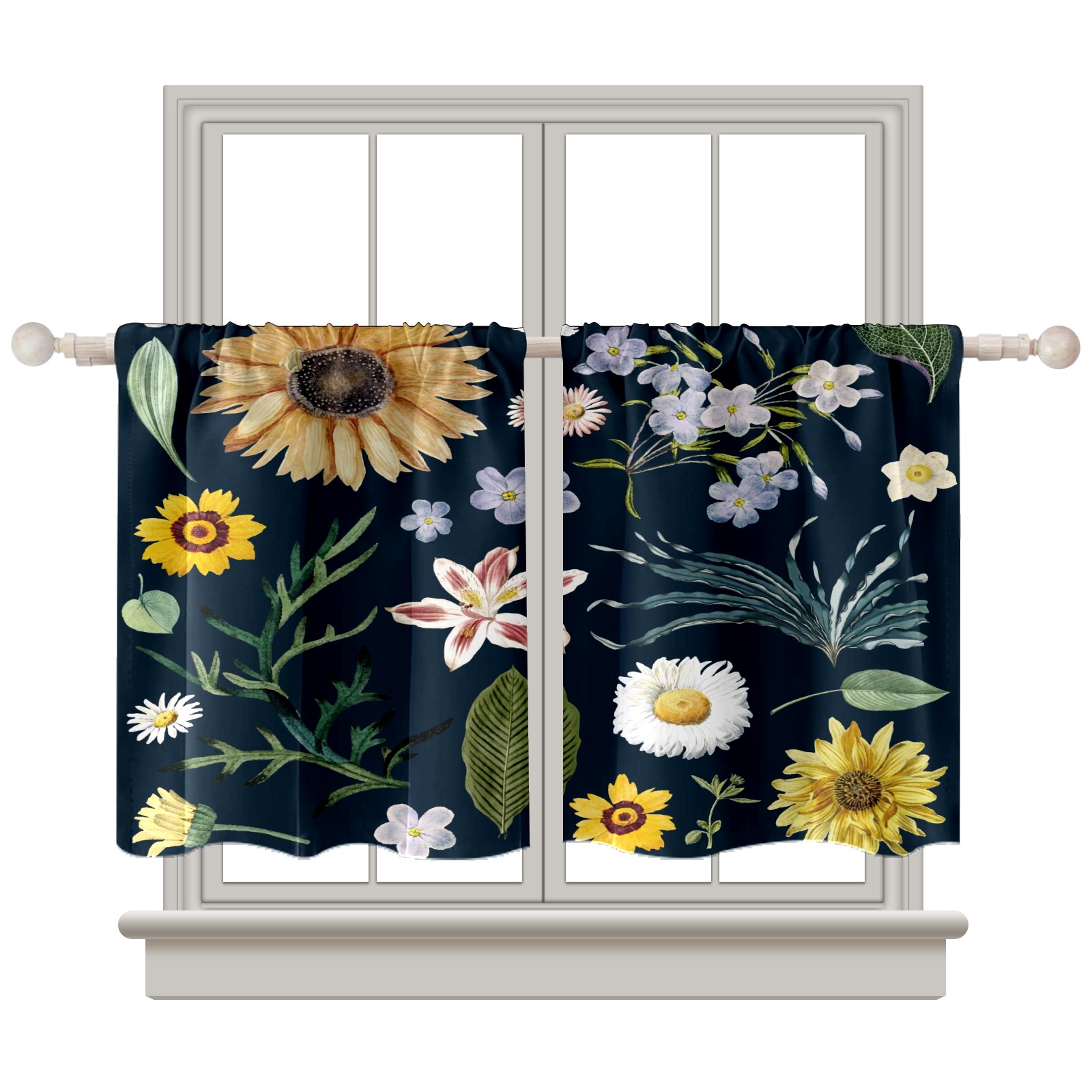 Шторы-панно для дома, декоративные драпировки для гостиной и спальни, легкие и прочные, Sunflower Little White Daisy Floral Pattern Navy Blue