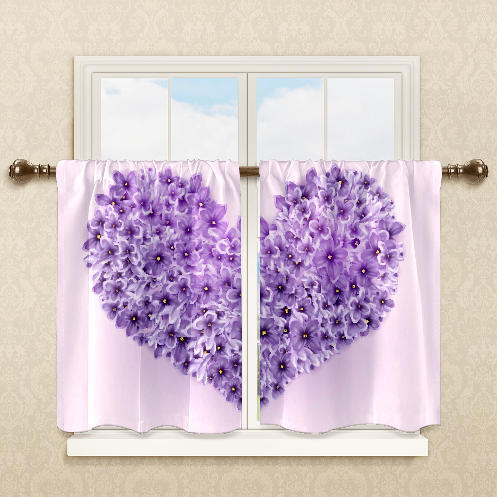 Шторы-панно для дома, декоративные драпировки для гостиной и спальни, легкие и прочные, Purple Love-Shaped Flower