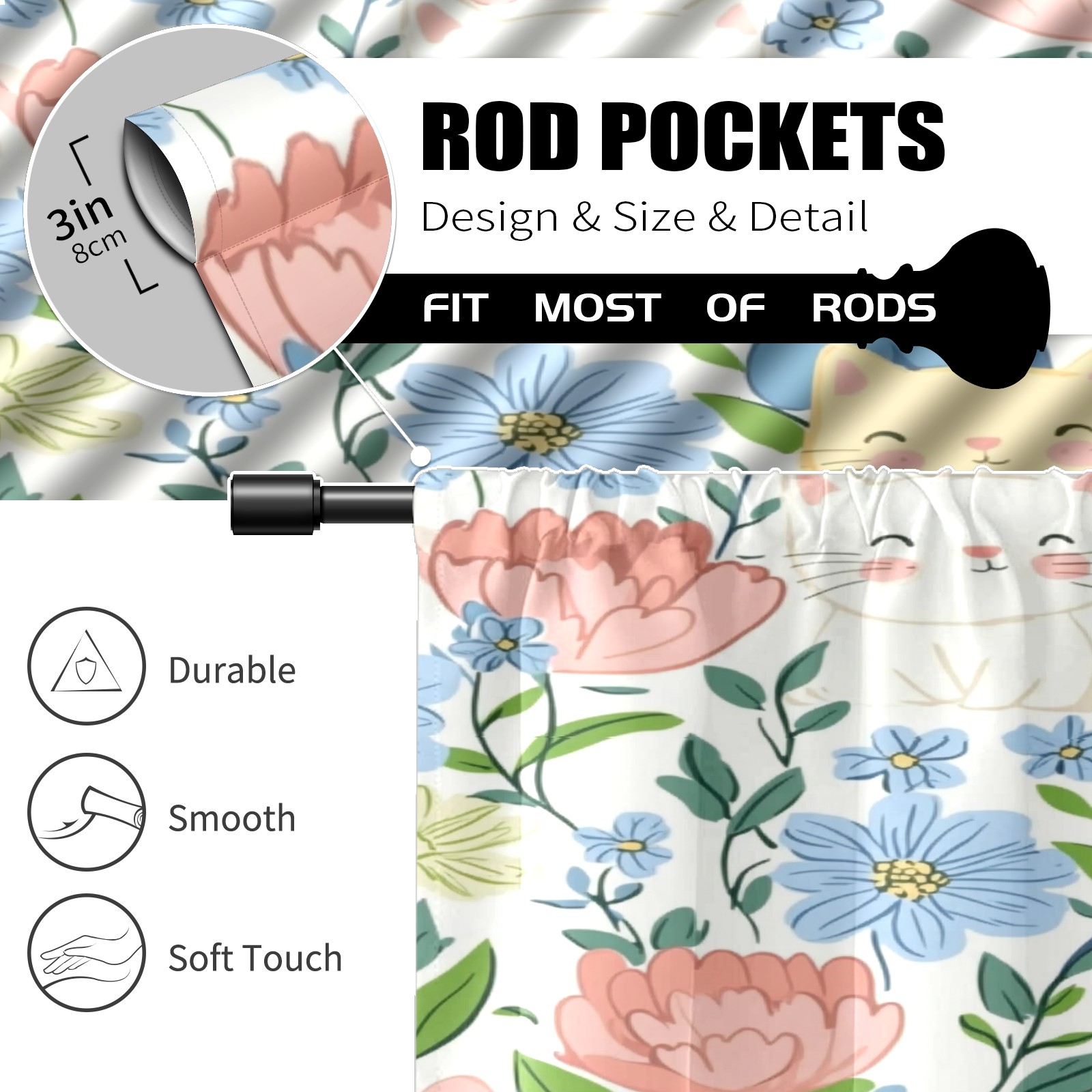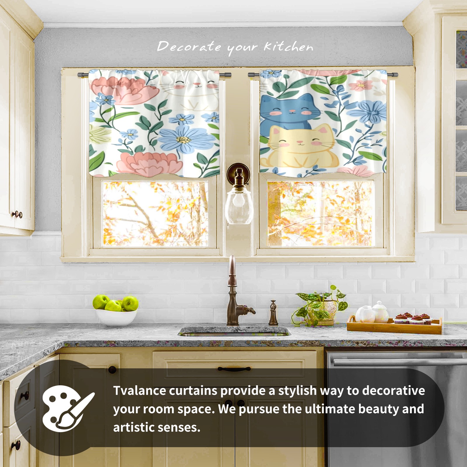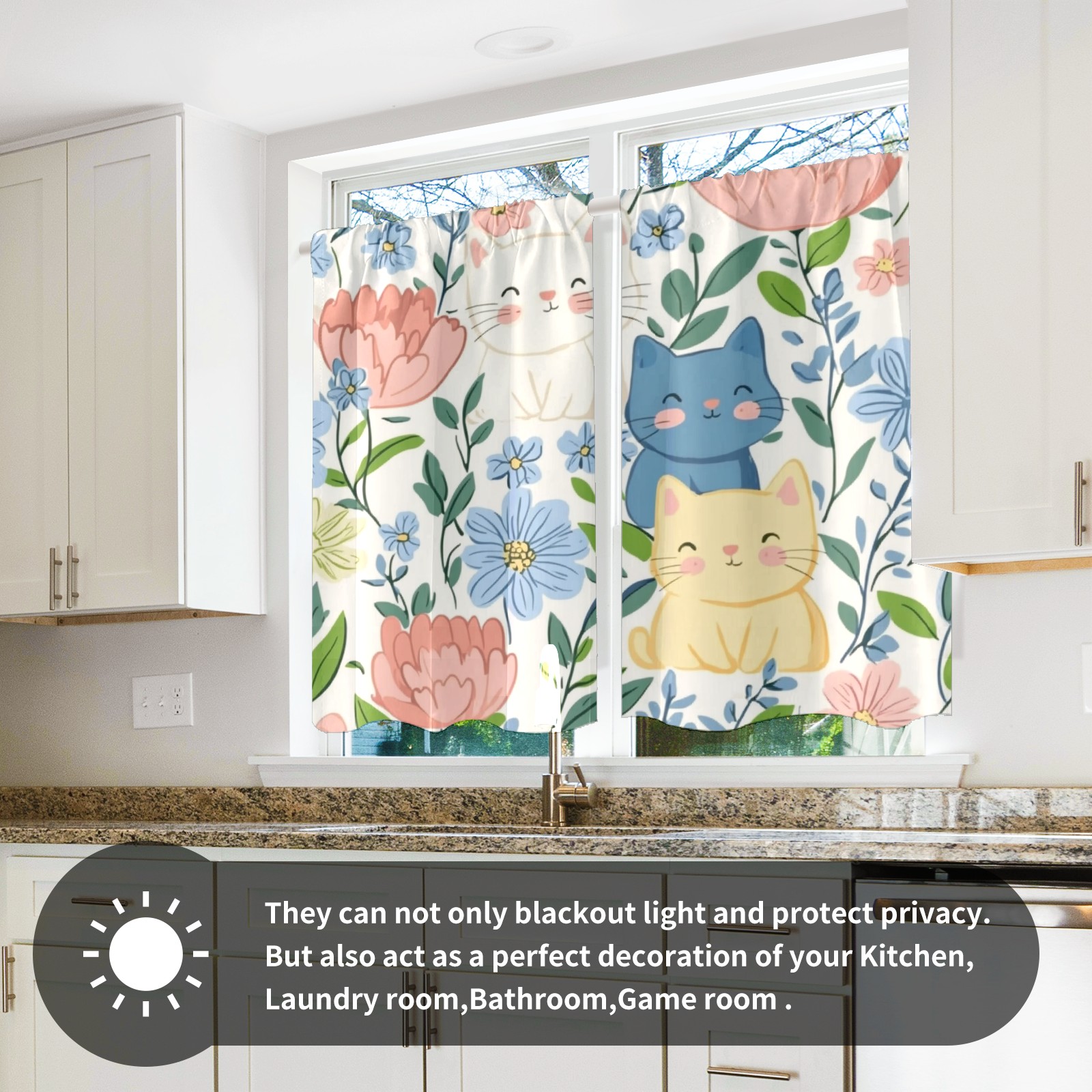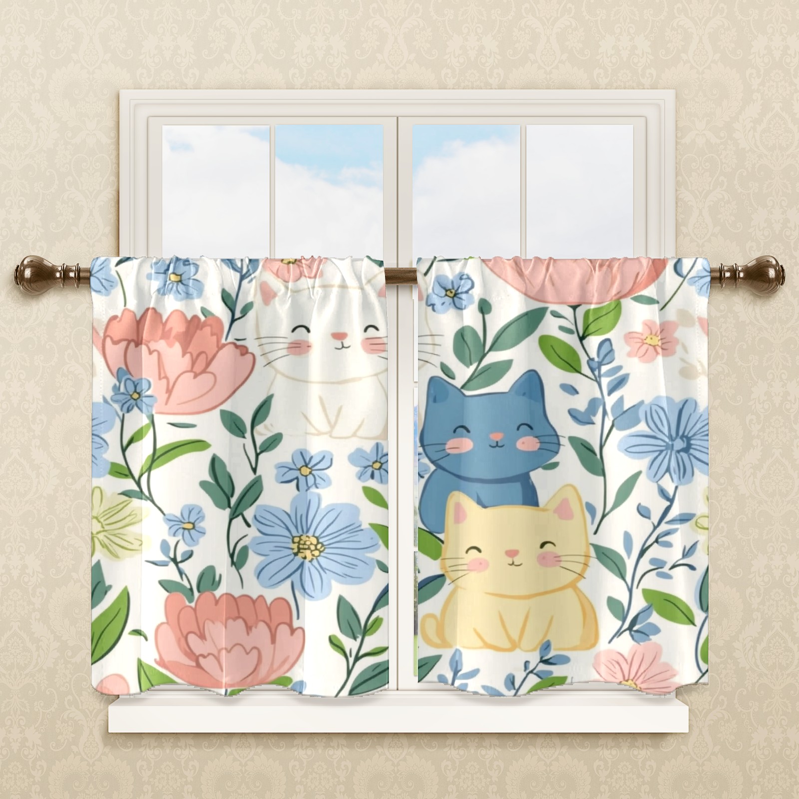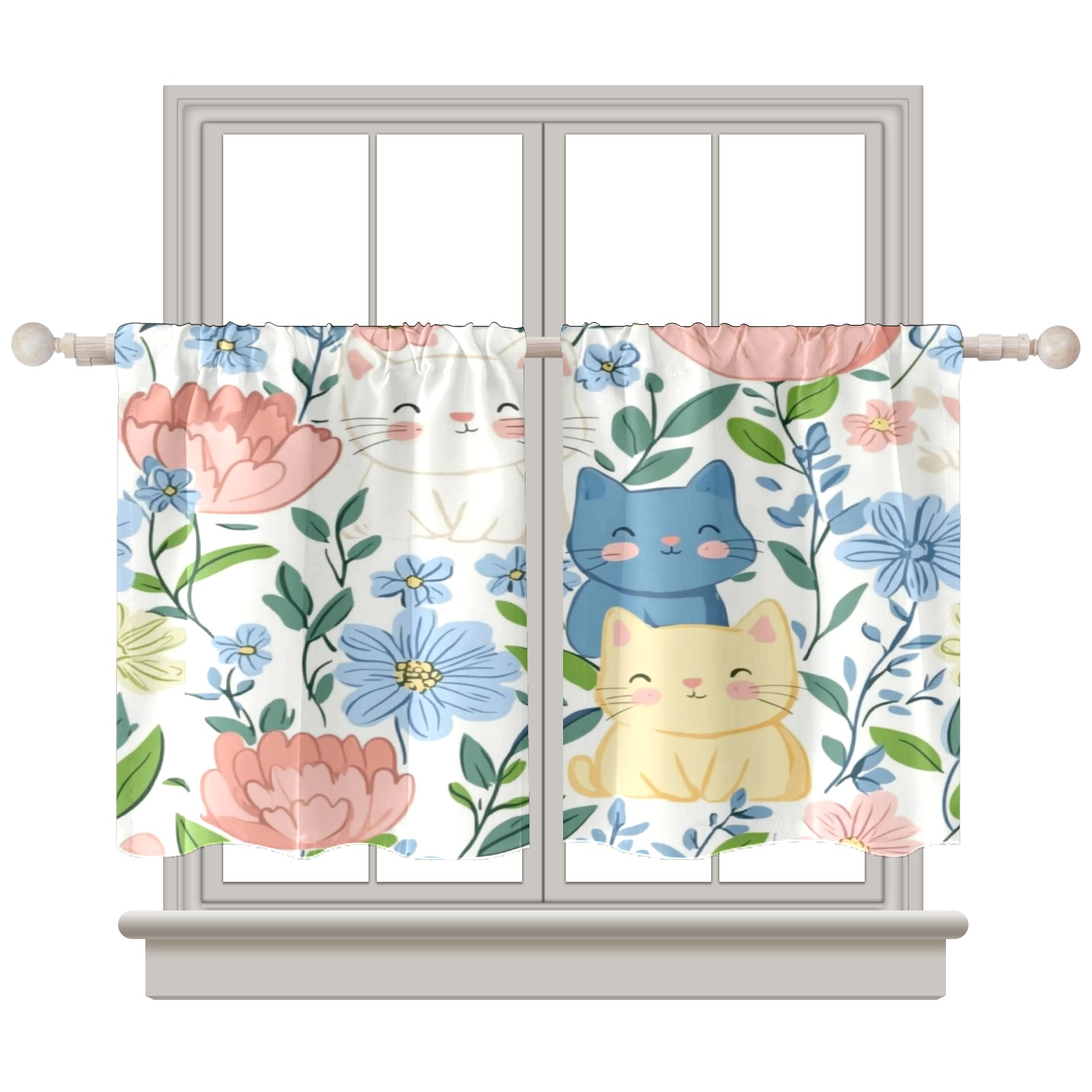 Шторы-панно для дома, декоративные драпировки для гостиной и спальни, легкие и прочные, Cats In Flowers