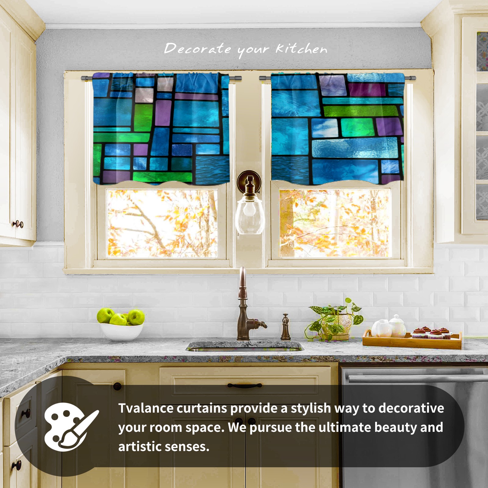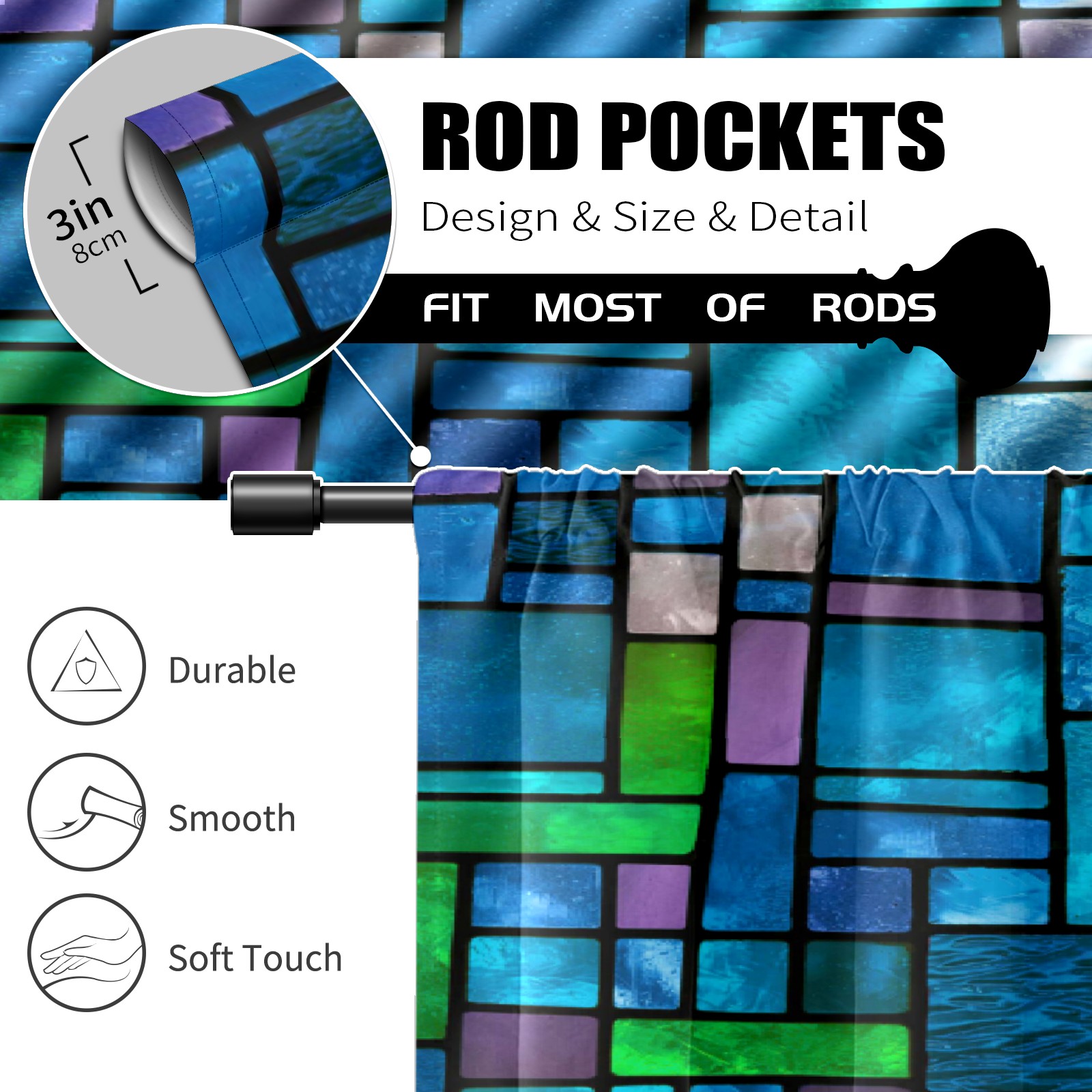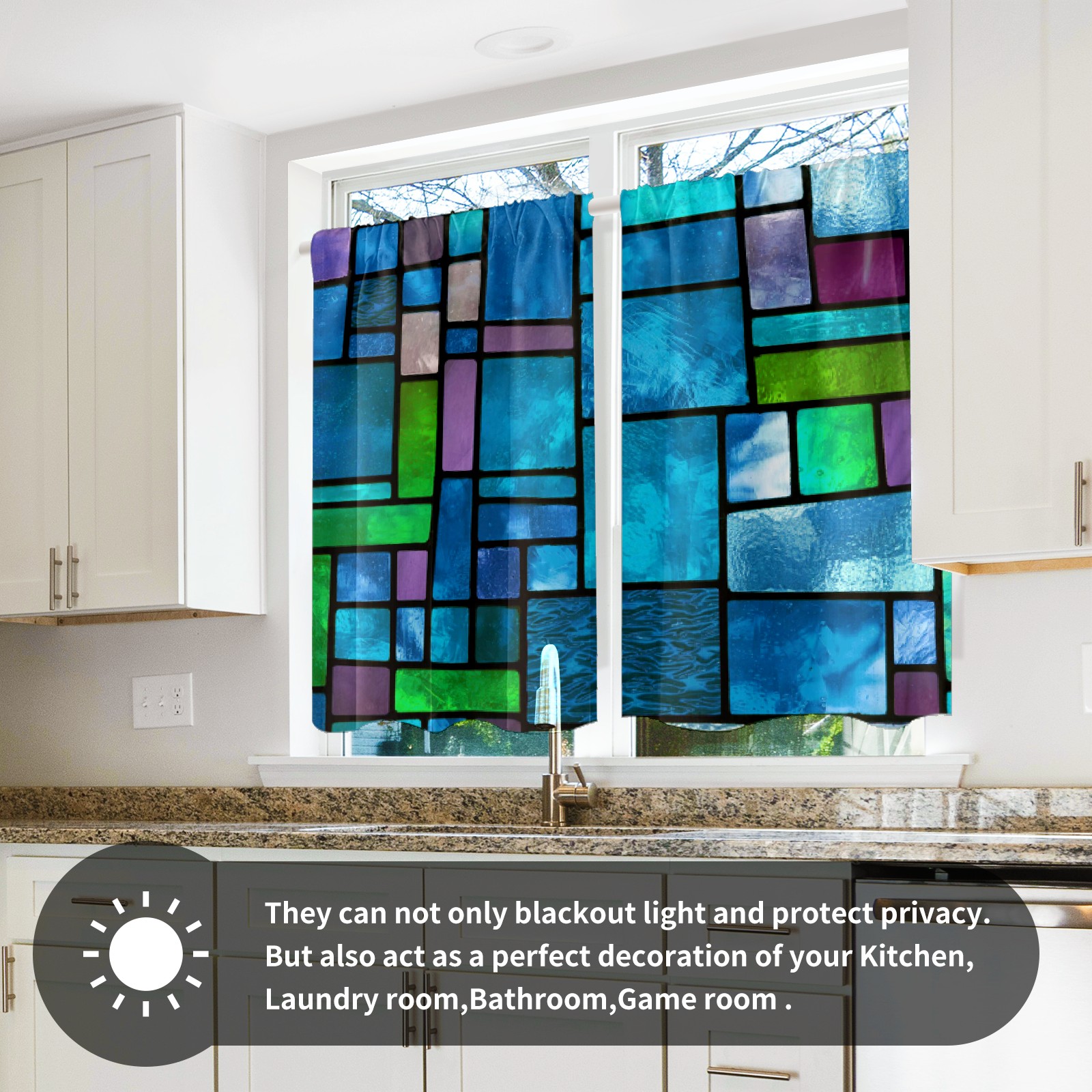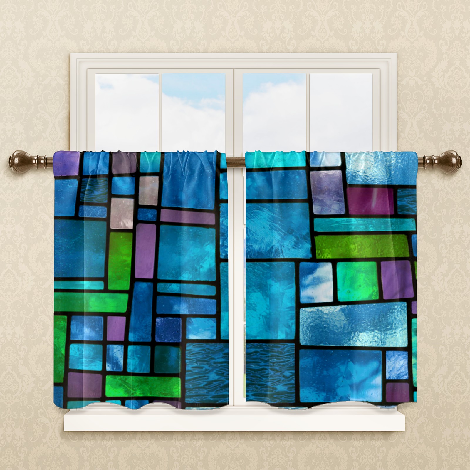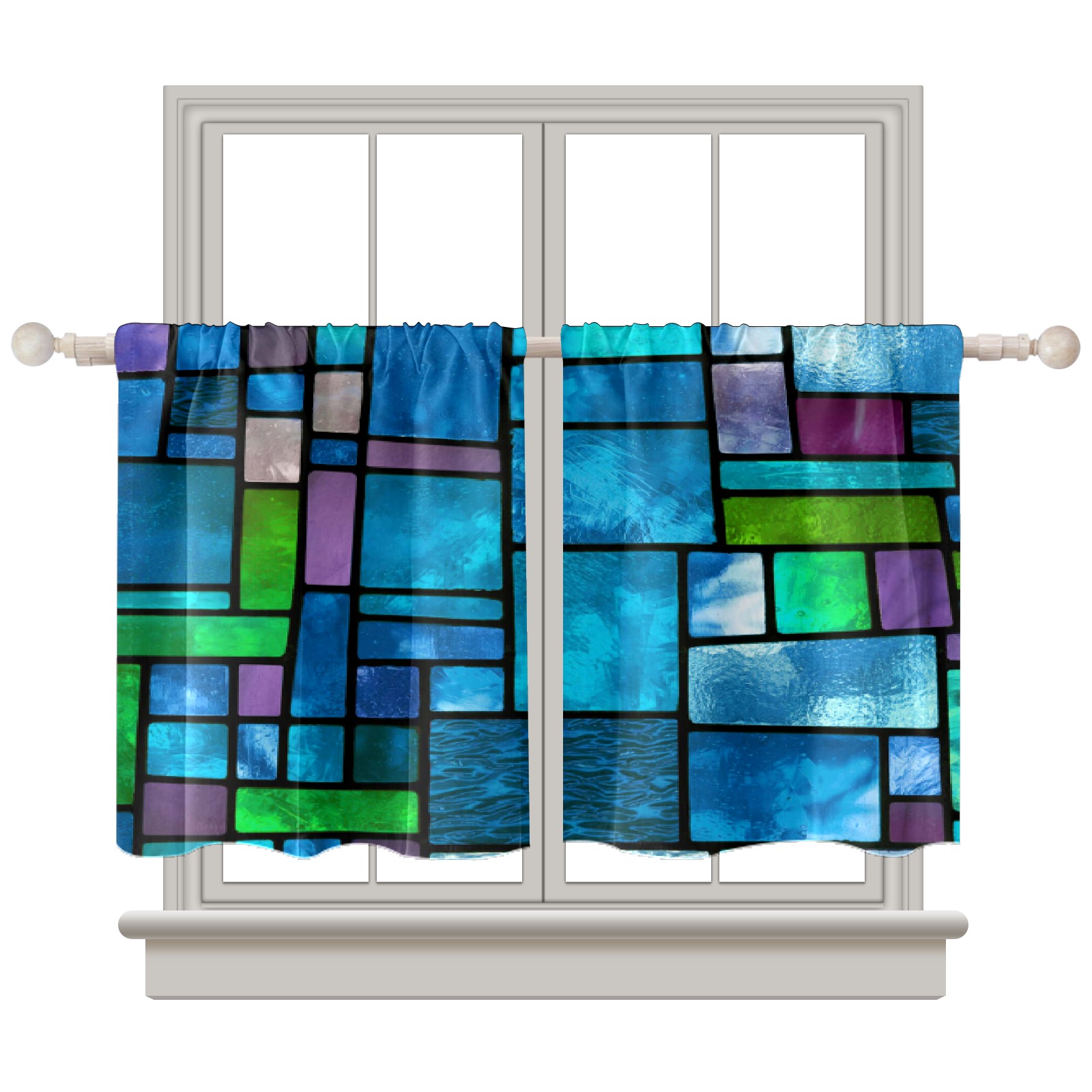 Шторы-панно для дома, декоративные драпировки для гостиной и спальни, легкие и прочные, Blue Green Stained Glass