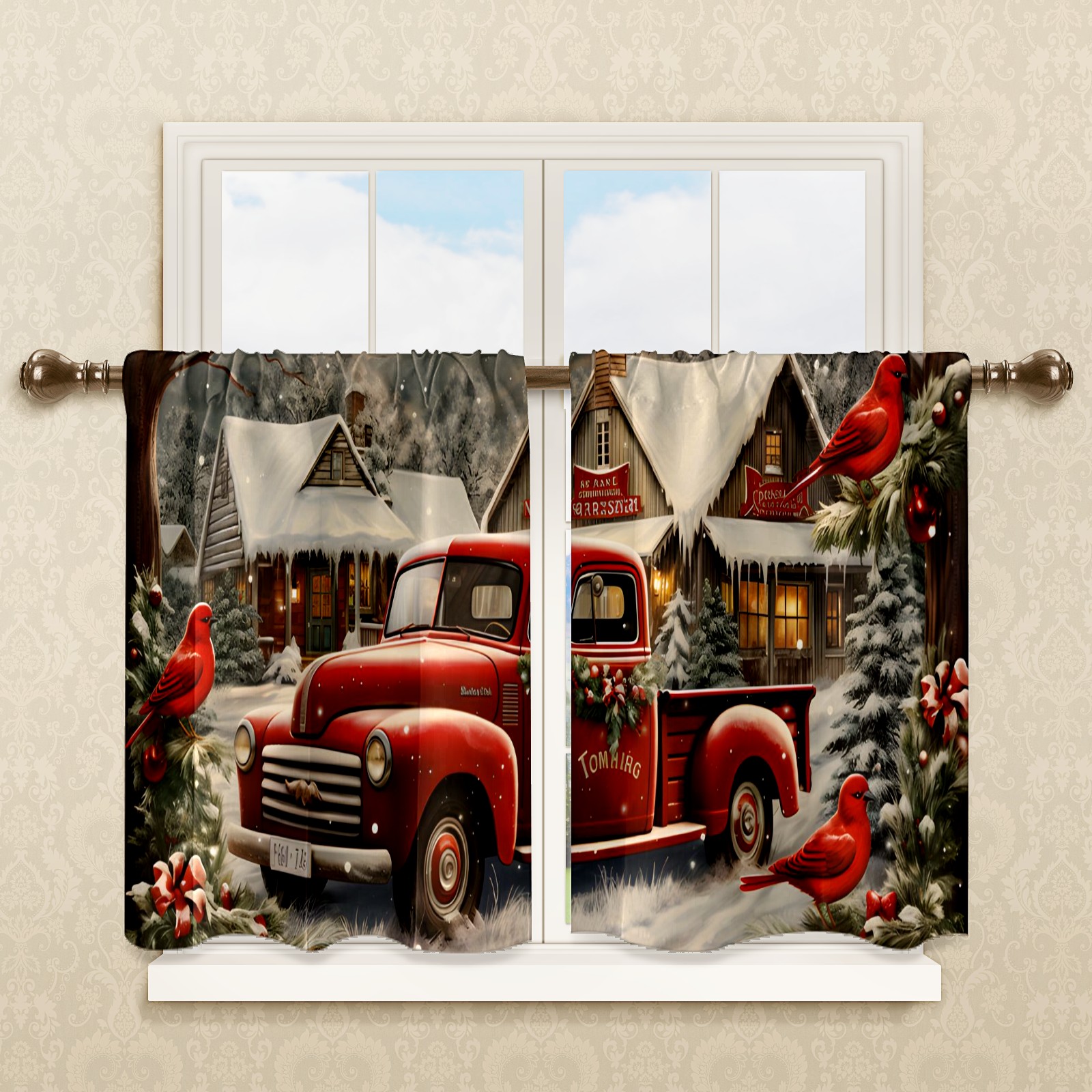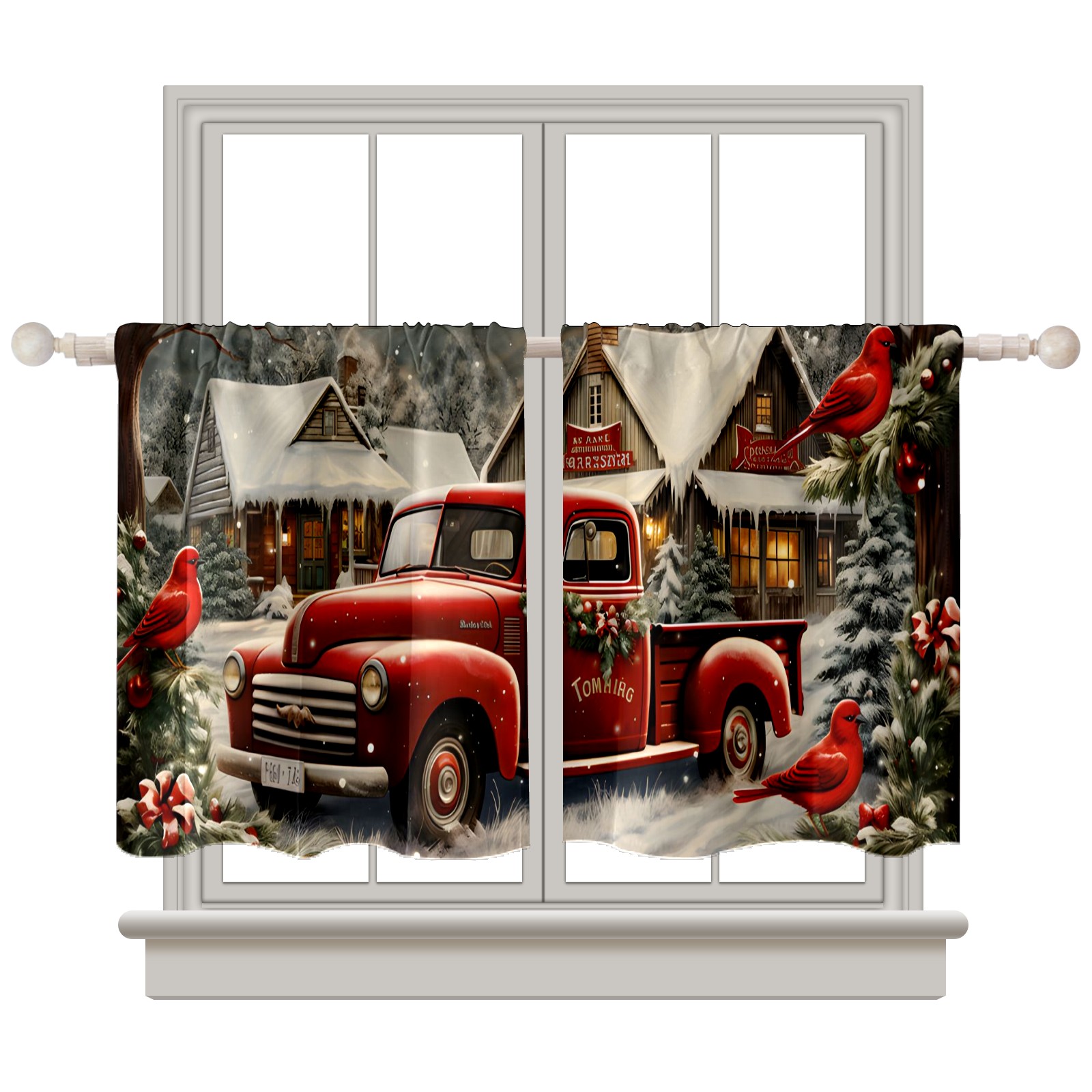 Шторы-панно для дома, декоративные драпировки для гостиной и спальни, легкие и прочные, Christmas Snow Truck