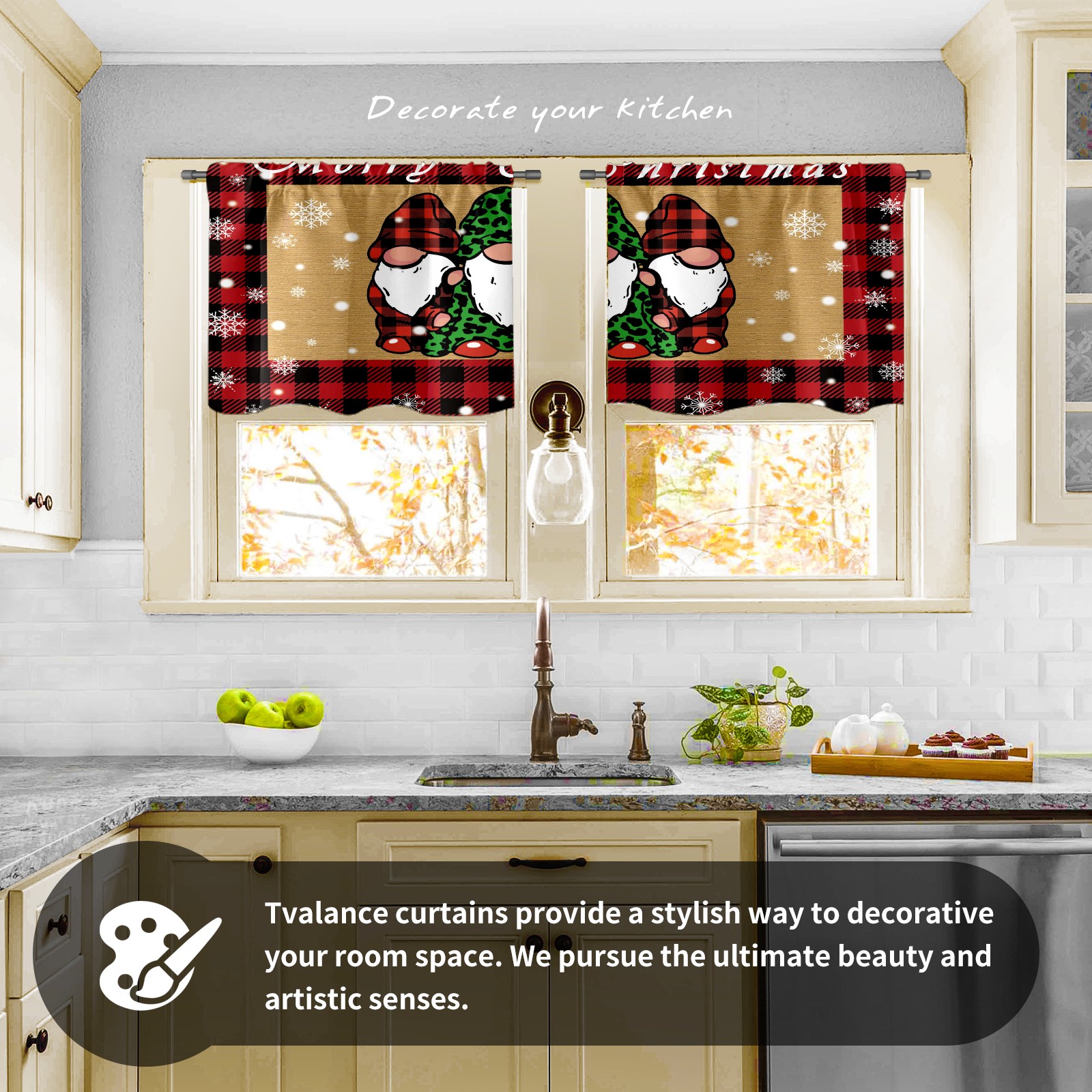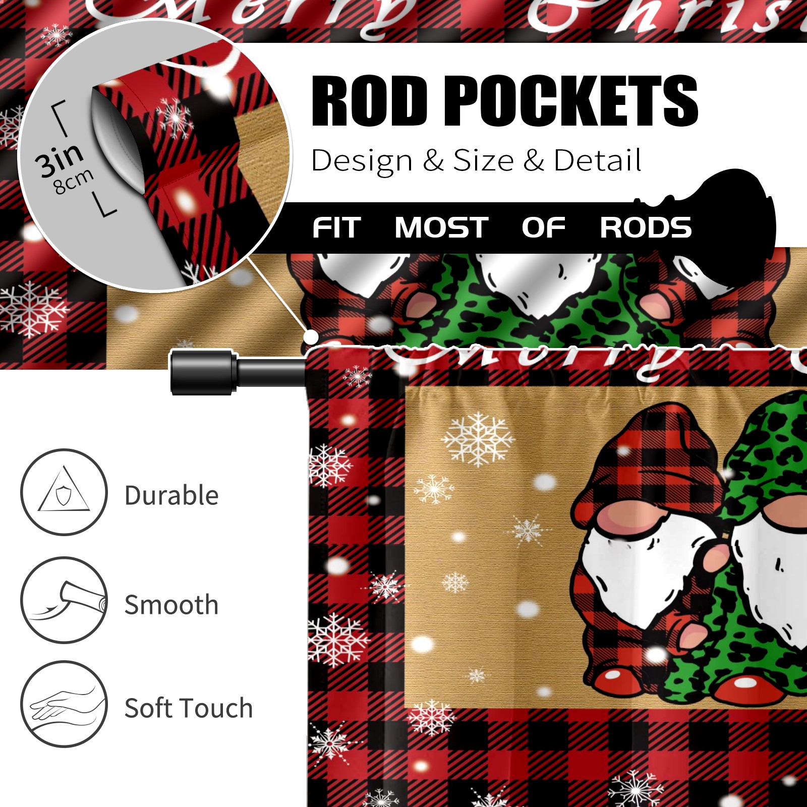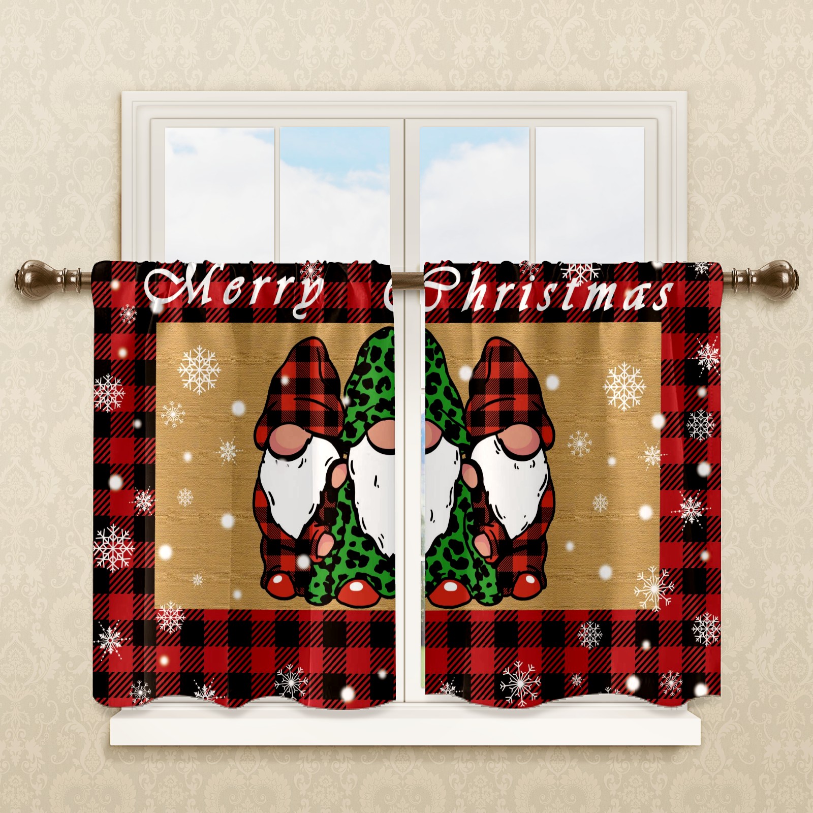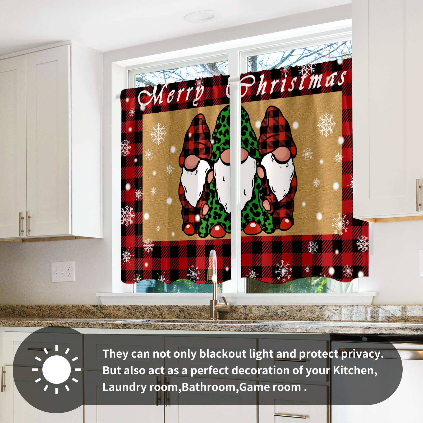 Шторы-панно для дома, декоративные драпировки для гостиной и спальни, легкие и прочные, Christmas Plaid Gnome