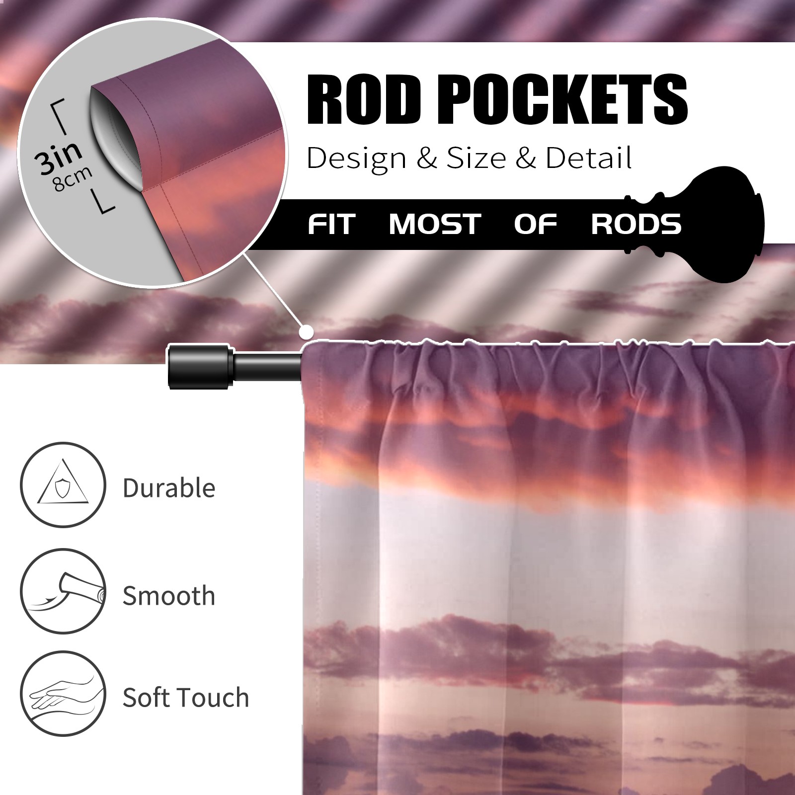 Шторы-панно для дома, декоративные драпировки для гостиной и спальни, легкие и прочные, Pink Cloud Nature Sky