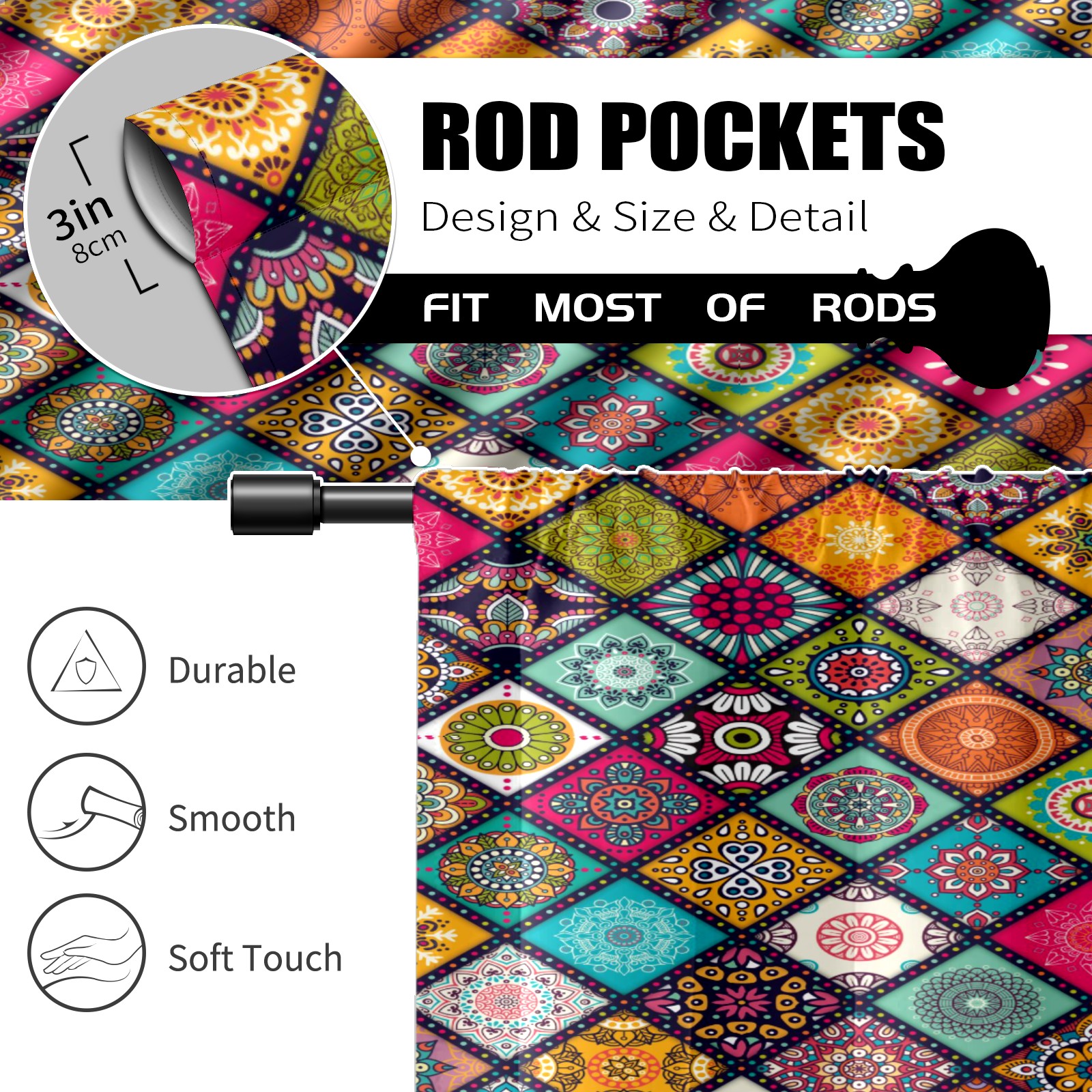 Шторы-панно для дома, декоративные драпировки для гостиной и спальни, легкие и прочные, Ethnic Mandalas Colorful Square Patch