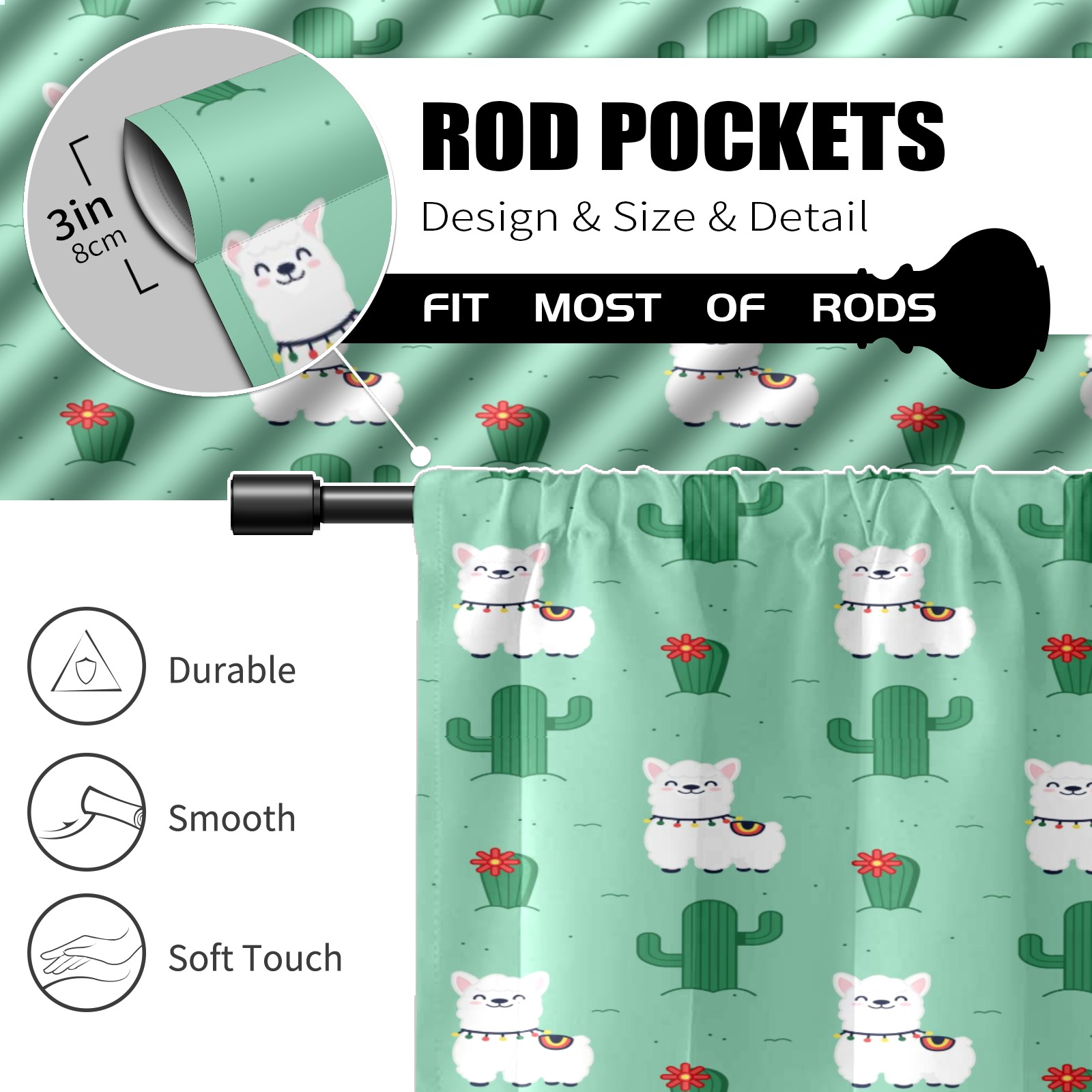 Шторы-панно для дома, декоративные драпировки для гостиной и спальни, легкие и прочные, Alpaca Llama White Cactus Green