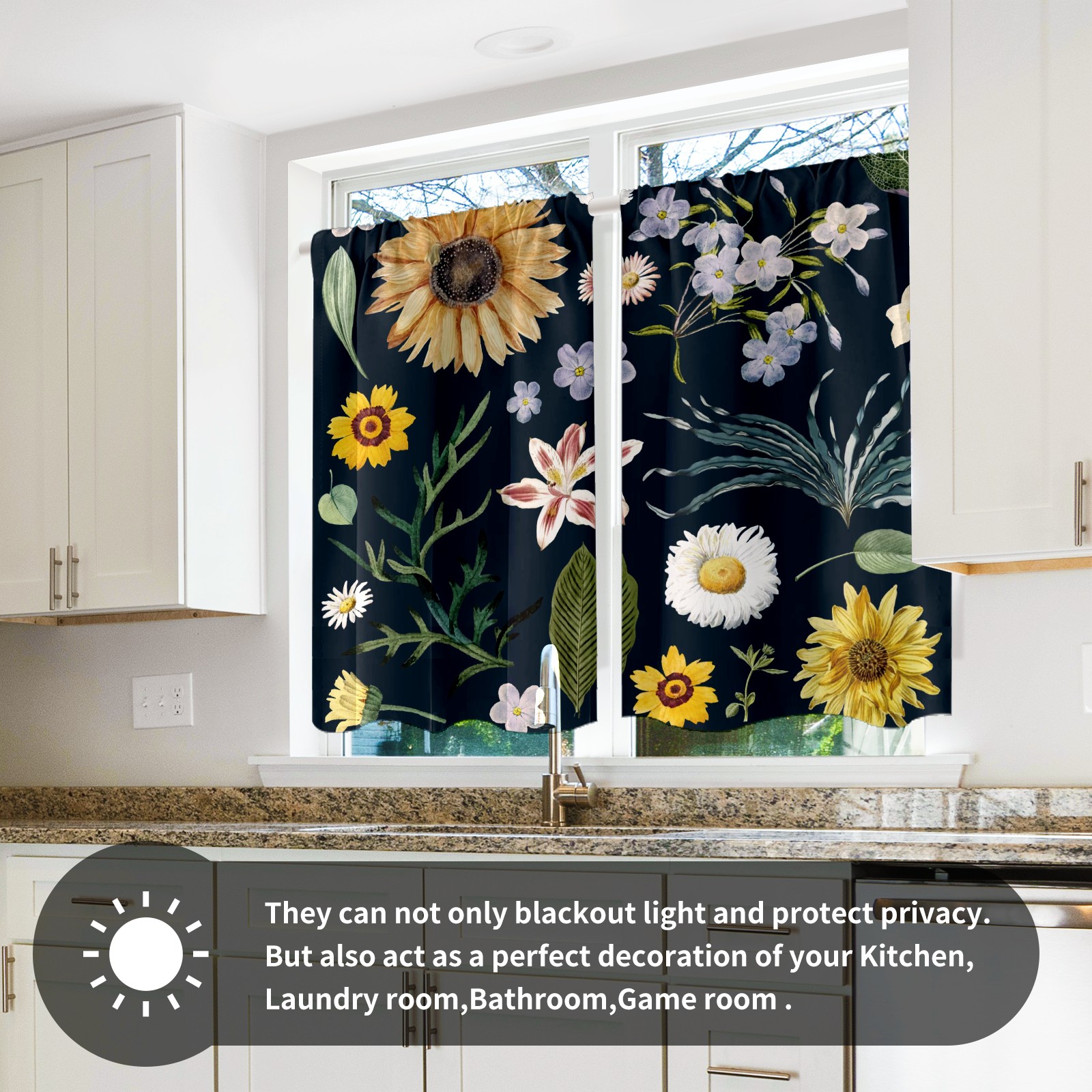 Шторы-панно для дома, декоративные драпировки для гостиной и спальни, легкие и прочные, Sunflower Little White Daisy Floral Pattern Navy Blue