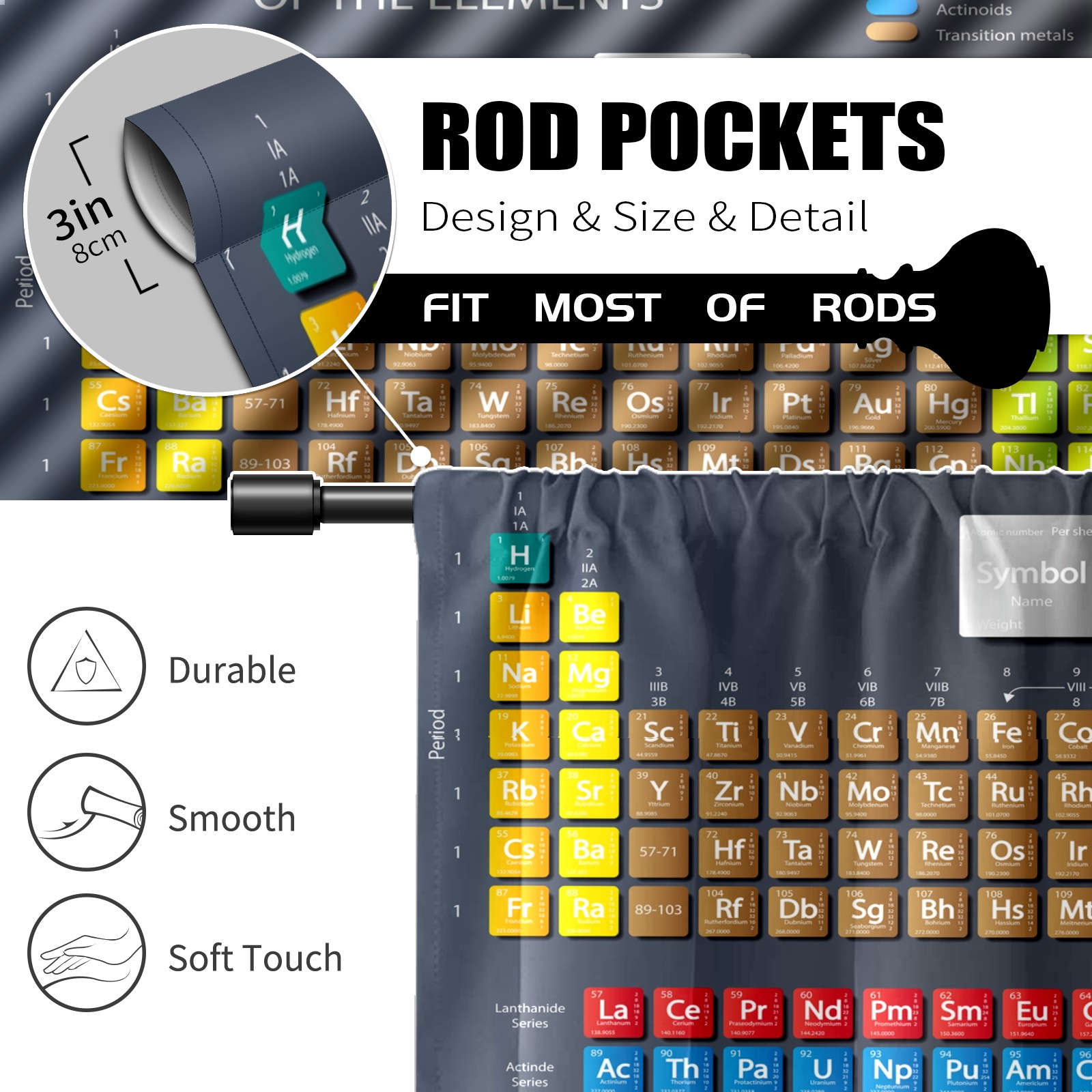 Шторы-панно для дома, декоративные драпировки для гостиной и спальни, легкие и прочные, Grey Colorful Periodic Table Chemistry