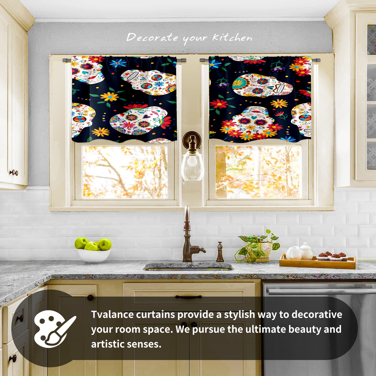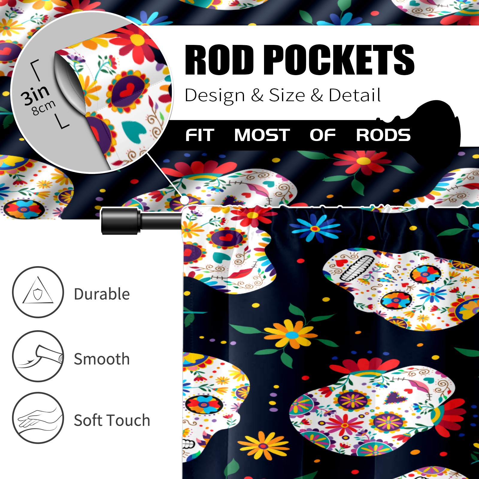 Шторы-панно для дома, декоративные драпировки для гостиной и спальни, легкие и прочные, Sugar Skull