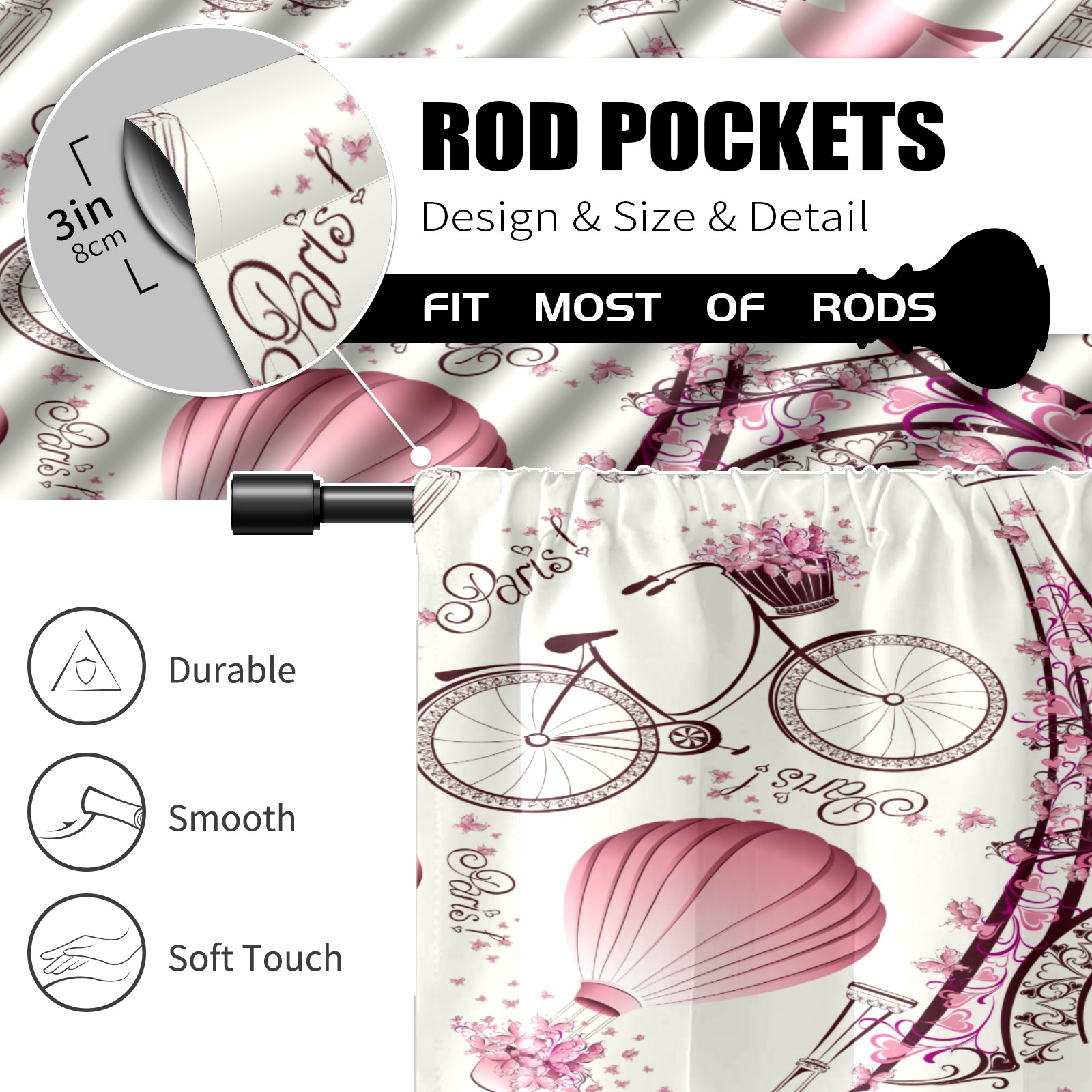 Шторы-панно для дома, декоративные драпировки для гостиной и спальни, легкие и прочные, Paris Eiffel Tower Pink Retro Love Bike Hot Balloon