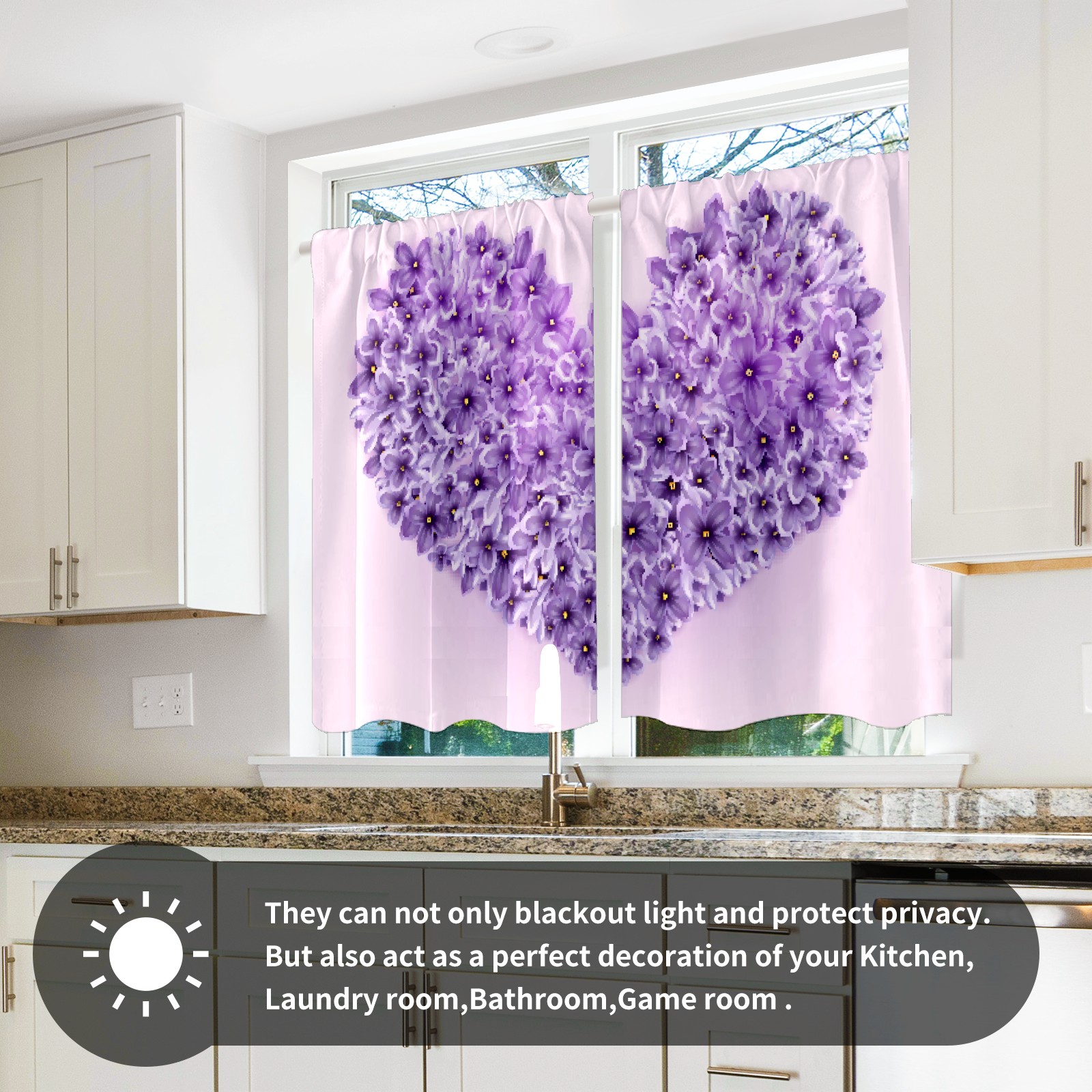 Шторы-панно для дома, декоративные драпировки для гостиной и спальни, легкие и прочные, Purple Love-Shaped Flower
