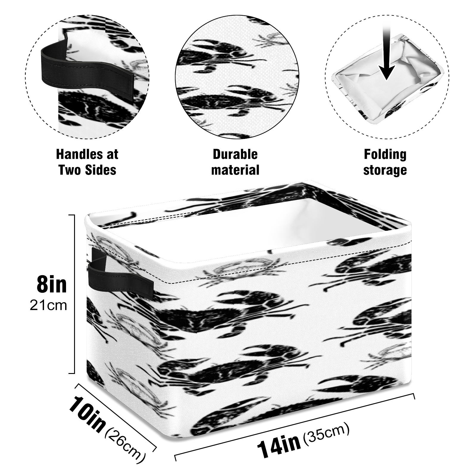 【Материал】Оксфордская ткань из полиэстера 600D; ручки изготовлены из полиэстера. 【Описание материала】Внешняя ткань: Оксфордская ткань полотняного переплетения высокой плотности 300D (ПВХ); Подкладка: белая ткань 750D; Ручки: черная композитная ткань 290T. 【Размер】26x35x21 см (10x14x8 дюймов) 【Описание продукта】Эта корзина для хранения с ручками с обеих сторон предлагает достаточно места для хранения предметов разных размеров, что делает ее подходящей для различных случаев, таких как дом, офис и школа. Ручки с обеих сторон закреплены гвоздями для долговечности. Прочный металлический каркас окружает корзину, поддерживая ее форму. Складная корзина для хранения: Наши корзины для хранения легко складываются, когда не используются. Эти ящики для хранения изготовлены из легко моющейся оксфордской ткани и при необходимости могут быть аккуратно протерты мягким мылом и водой. Из-за внутреннего металлического каркаса и жесткого дна машинная стирка не рекомендуется. 【Подходящие сценарии использования】Дом, офис и школа 【Инструкции по стирке】Рекомендуется ручная стирка; избегайте длительного воздействия прямых солнечных лучей.