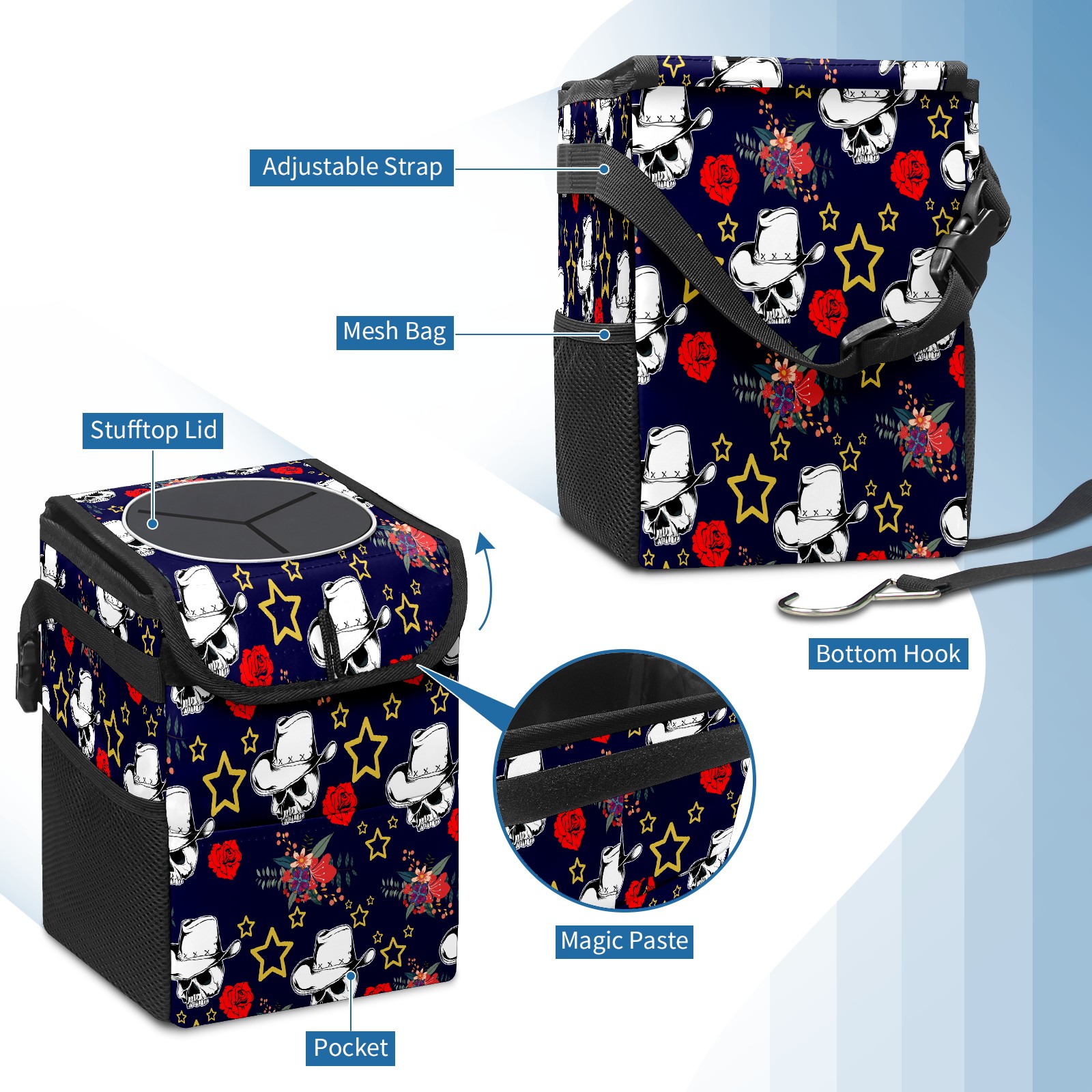 Эта многофункциональная автомобильная мусорная корзина отличается стильным принтом, сочетающим в себе практичность и эстетику. Изготовленная из высококачественной саржевой ткани с плетеными ремнями, она прочная, долговечная и износостойкая. Размеры корзины составляют 24×17×16 см (9,5×6,7×6,3 дюйма). Верхнее отверстие имеет прорезиненное покрытие для удобной утилизации мусора; боковые сетчатые карманы и передний карман обеспечивают удобное хранение закусок, телефонов и других мелких предметов.