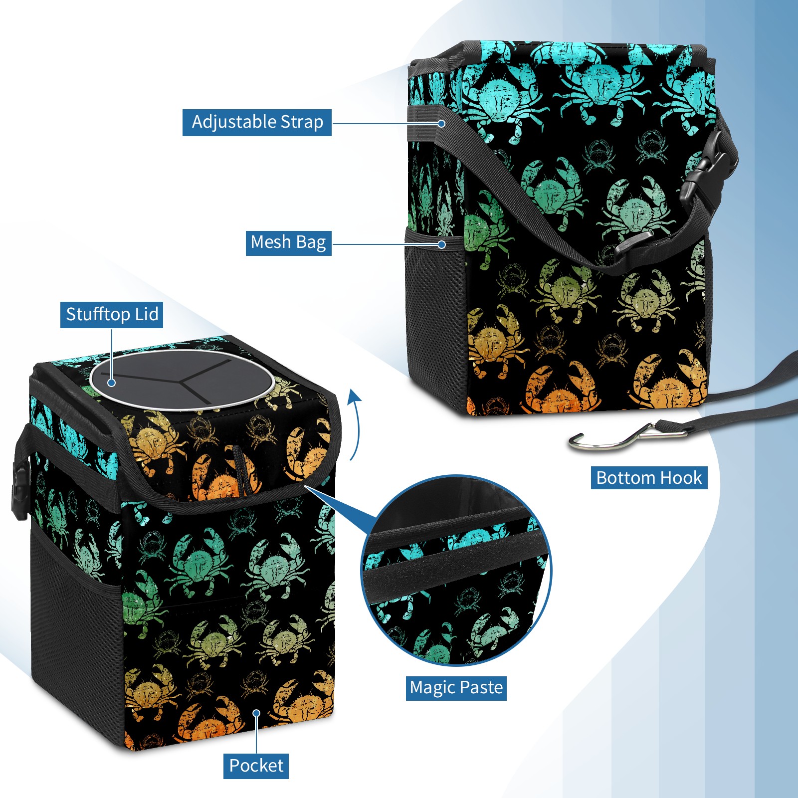 Эта многофункциональная автомобильная мусорная корзина отличается стильным принтом, сочетающим в себе практичность и эстетику. Изготовленная из высококачественной саржевой ткани с плетеными ремнями, она прочная, долговечная и износостойкая. Размеры корзины составляют 24×17×16 см (9,5×6,7×6,3 дюйма). Верхнее отверстие имеет прорезиненное покрытие для удобной утилизации мусора; боковые сетчатые карманы и передний карман обеспечивают удобное хранение закусок, телефонов и других мелких предметов.