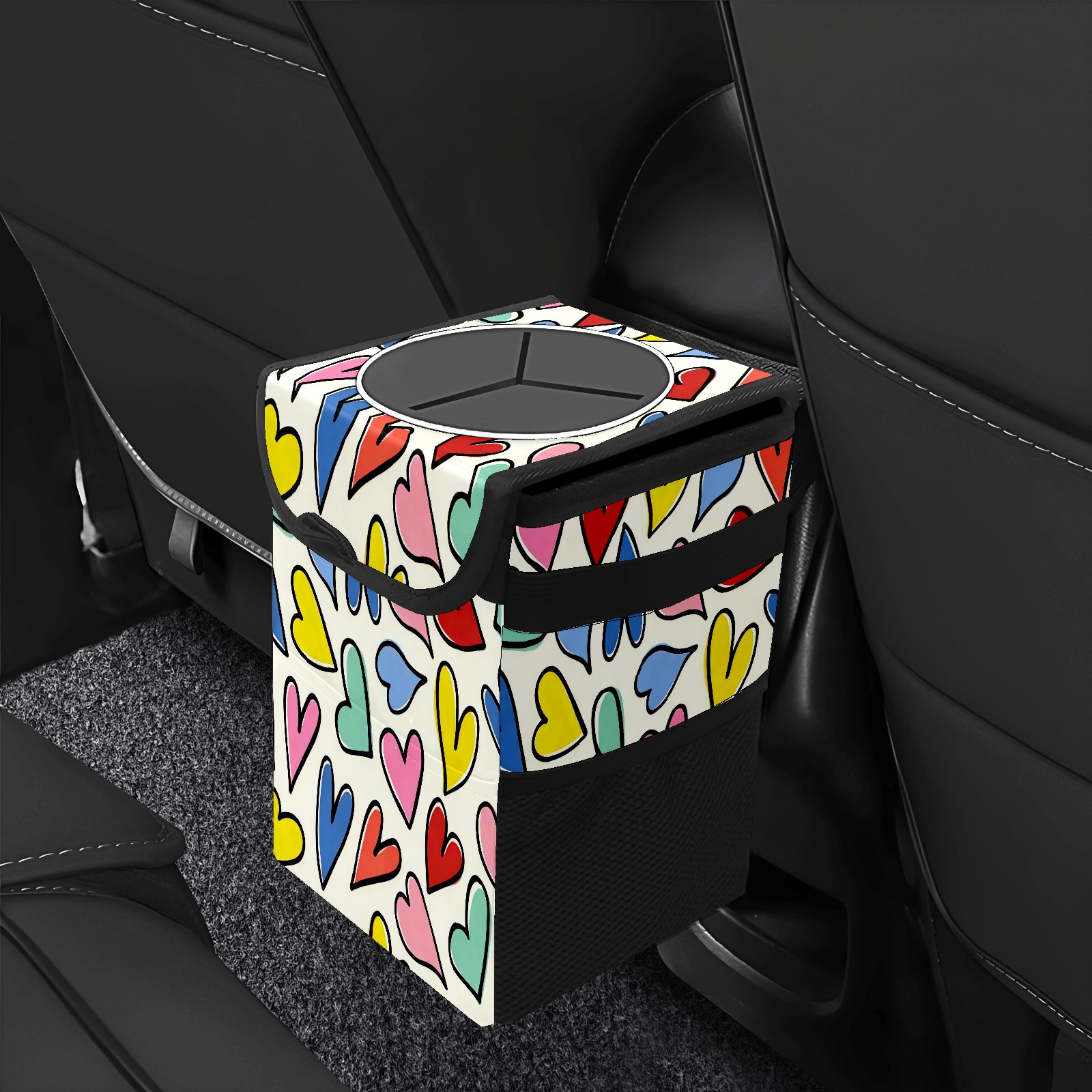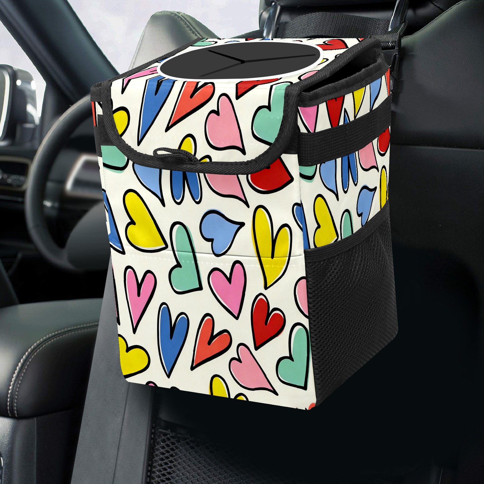 MSINMKOK Car Trash Bin with Lid Auto Garbage Bag Hanging for Back Seat - Leakproof Trash Can for Cars SUVs Trucks Vehicle Car Accessories (Multi-Color Heart)