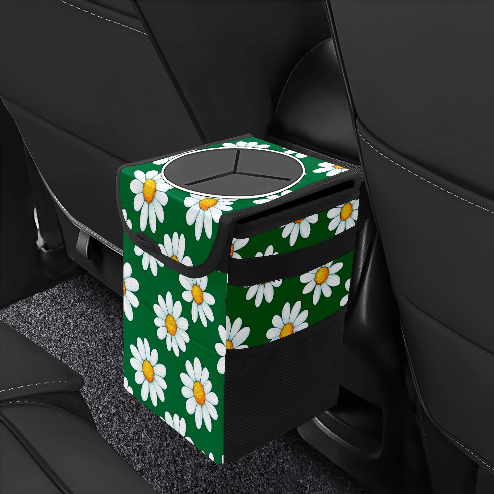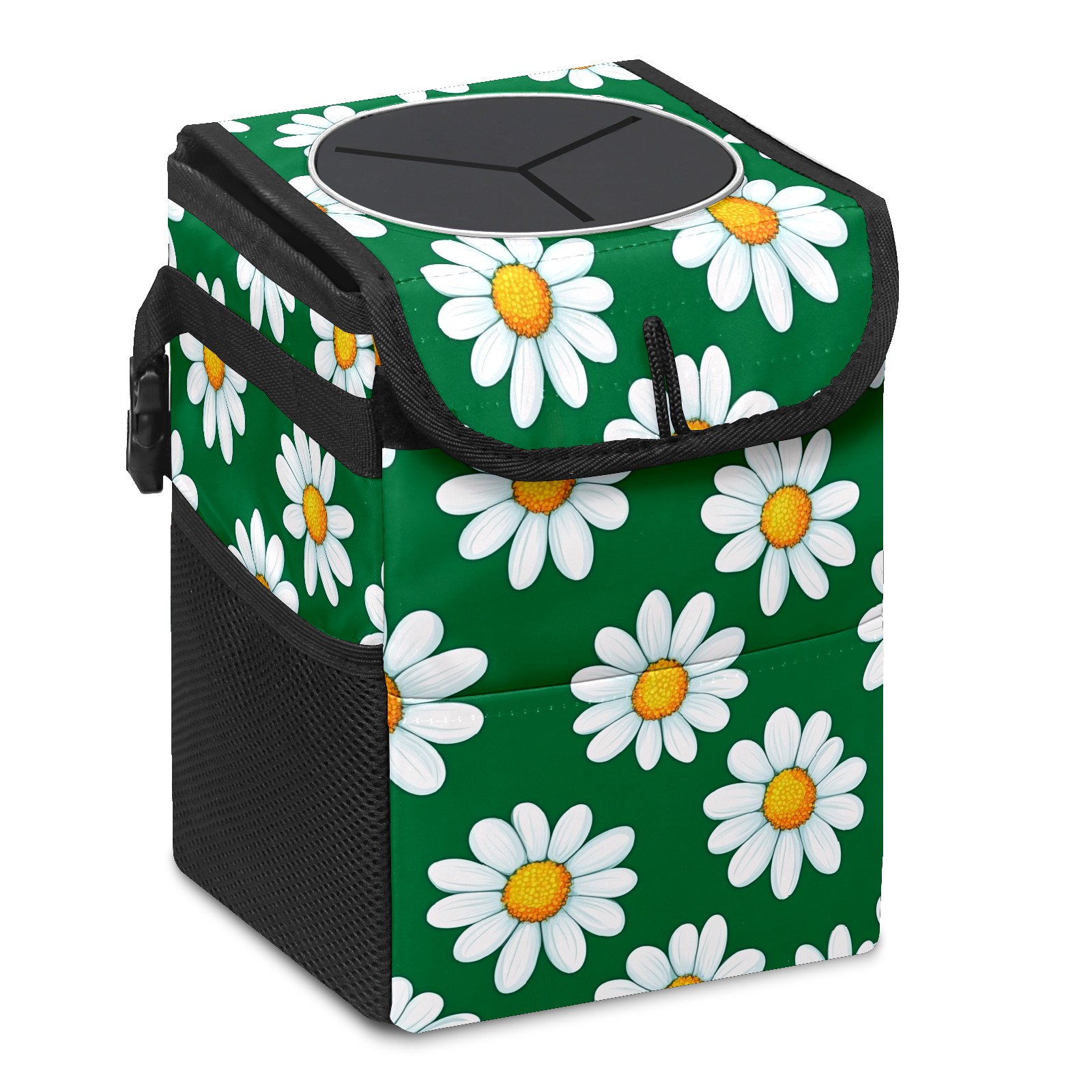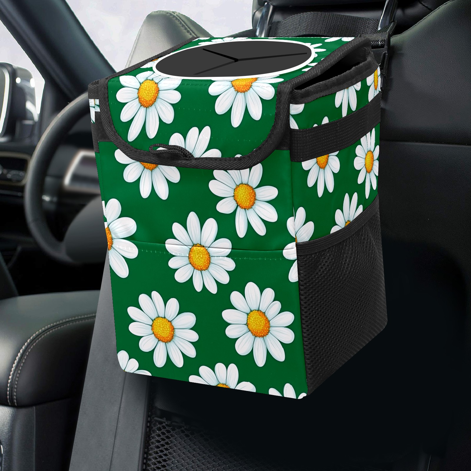 MSINMKOK Car Trash Bin with Lid Auto Garbage Bag Hanging for Back Seat - Leakproof Trash Can for Cars SUVs Trucks Vehicle Car Accessories (Daisy Floral Green)