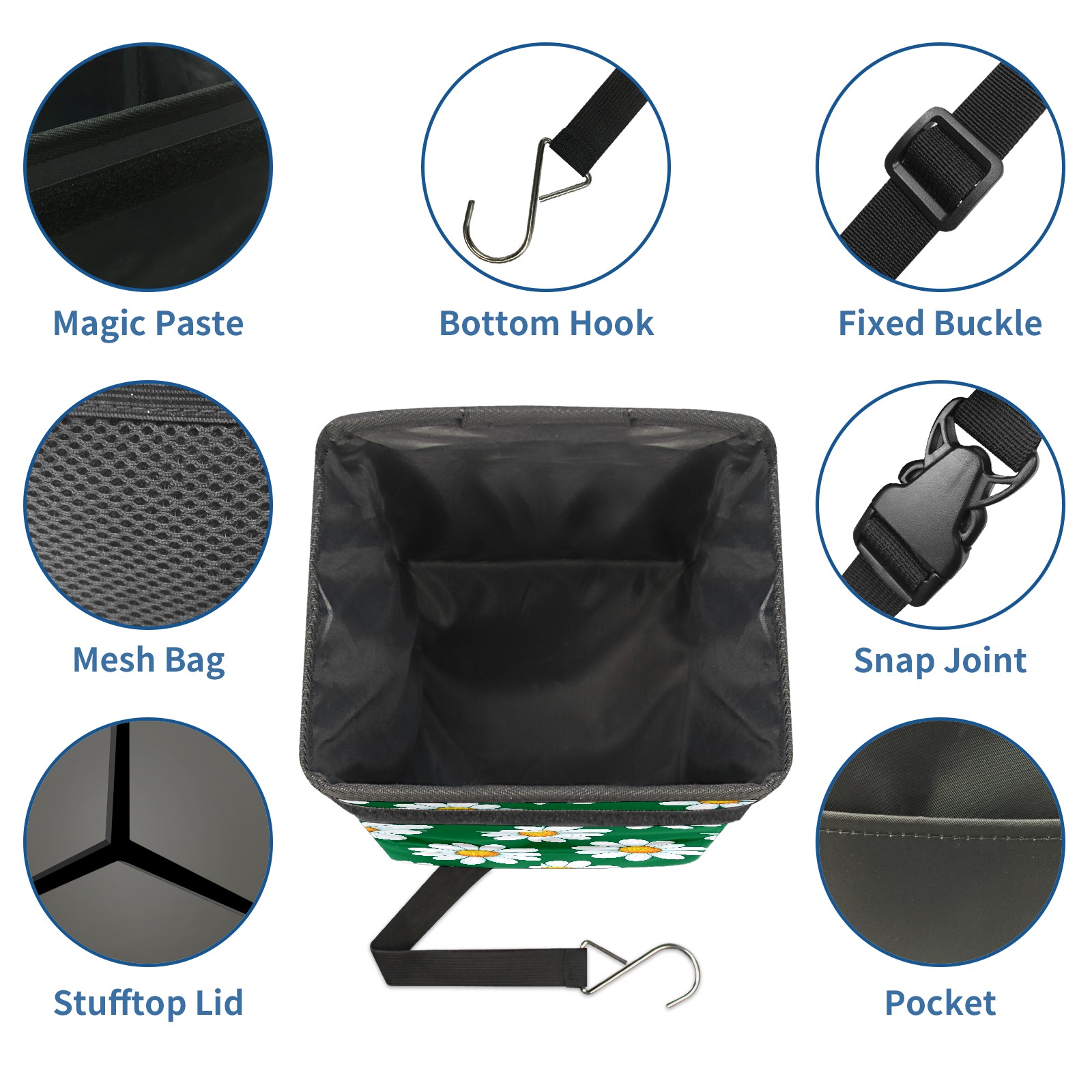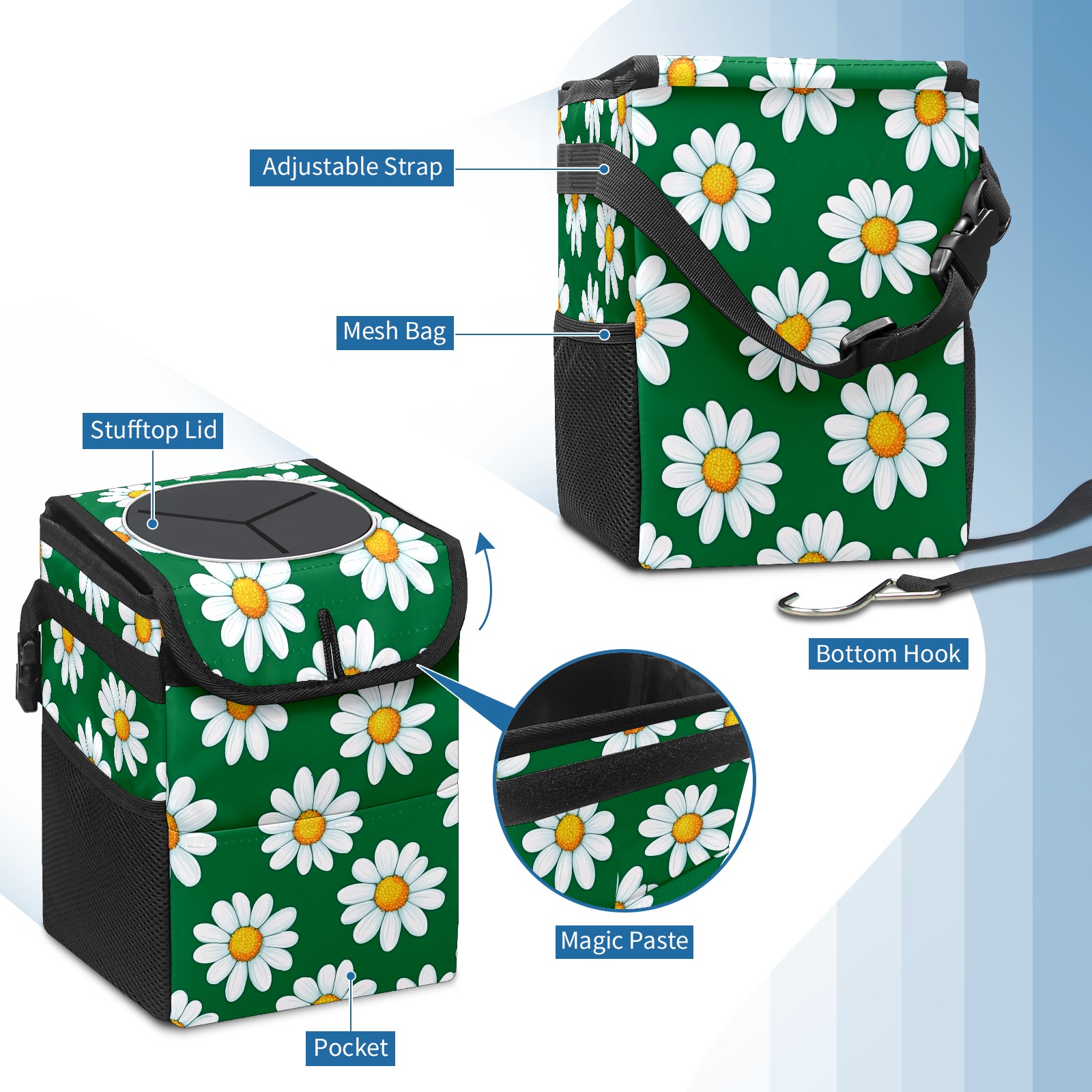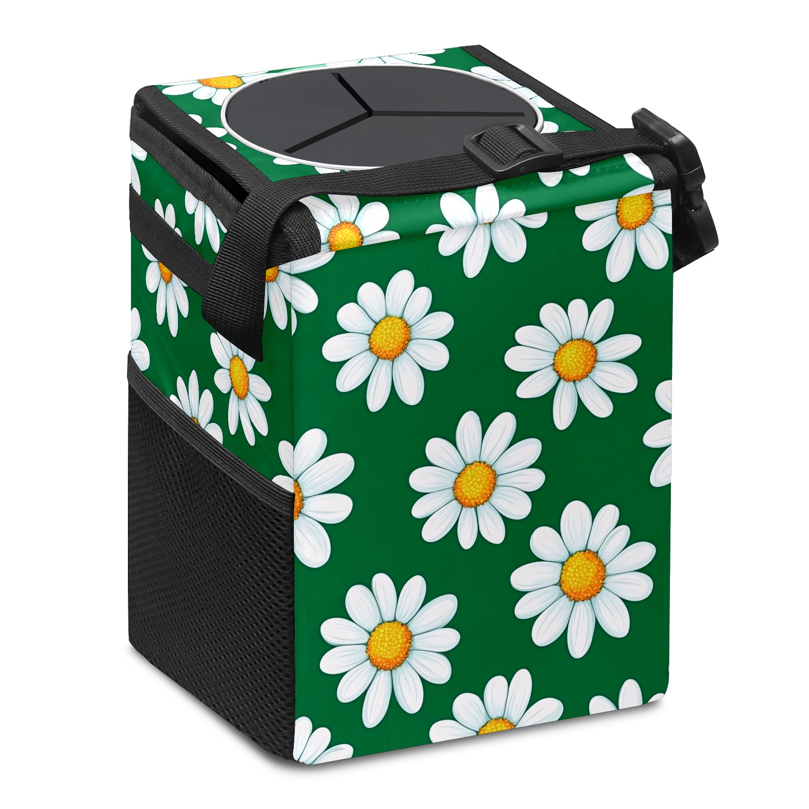 MSINMKOK Car Trash Bin with Lid Auto Garbage Bag Hanging for Back Seat - Leakproof Trash Can for Cars SUVs Trucks Vehicle Car Accessories (Daisy Floral Green)