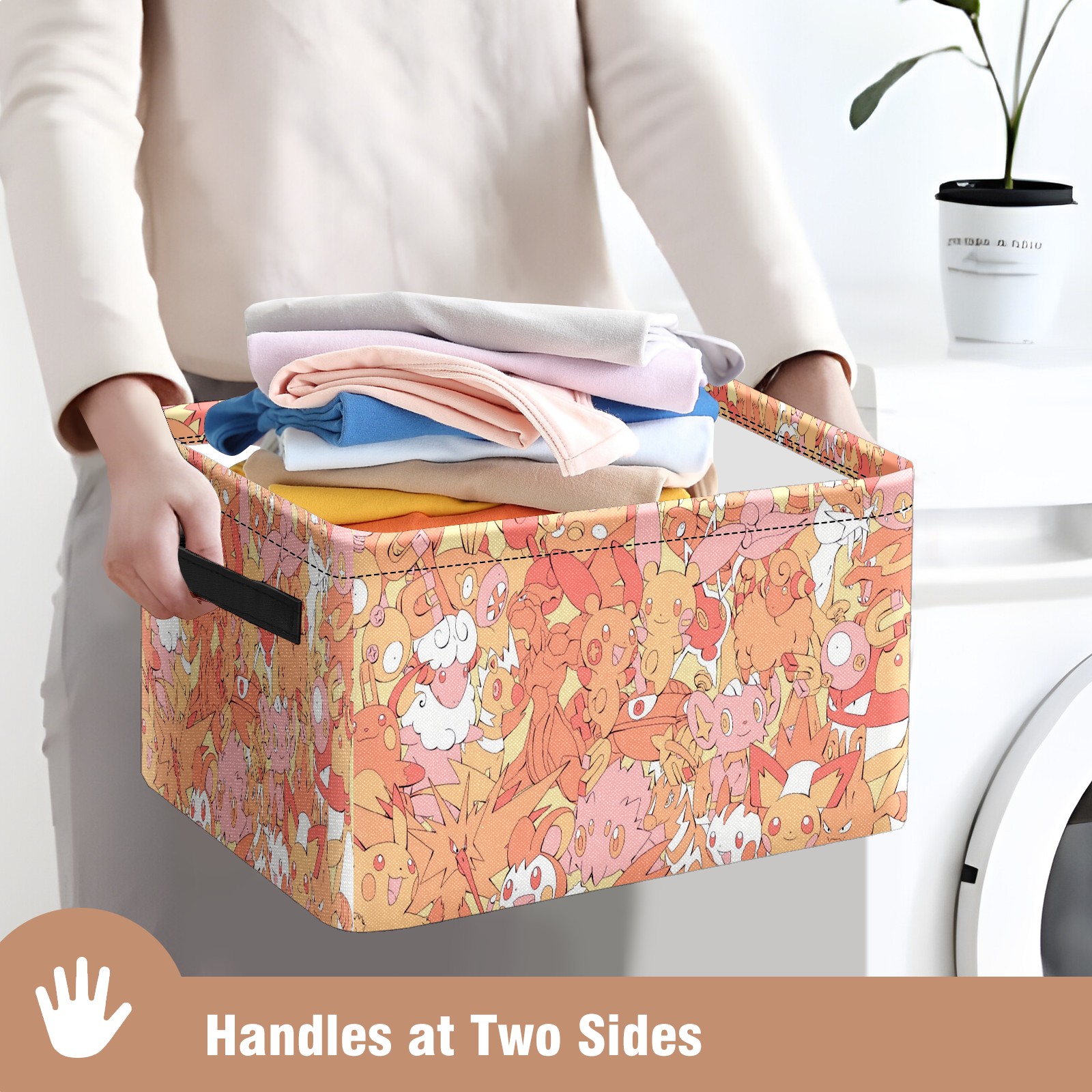 Foldable and Stackable Fabric Storage Basket for Home Organization with Handles, Decorative Closet Bins for Shelves and Laundry Storage( 横图B (416))