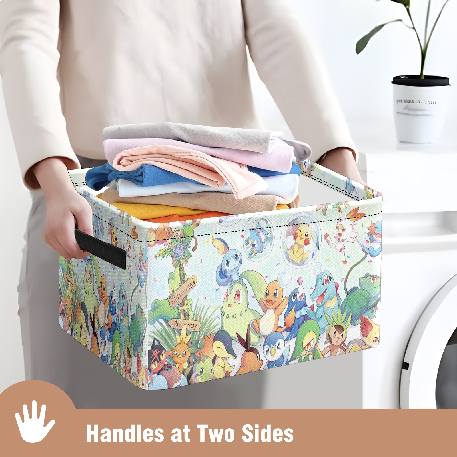 Foldable and Stackable Fabric Storage Basket for Home Organization with Handles, Decorative Closet Bins for Shelves and Laundry Storage( 横图B (337))