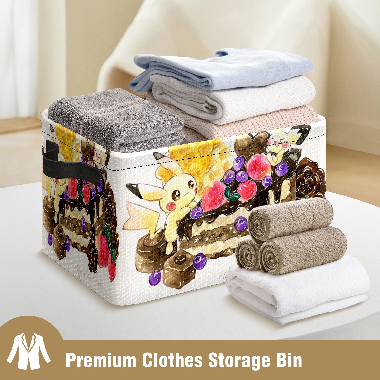 Foldable and Stackable Fabric Storage Basket for Home Organization with Handles, Decorative Closet Bins for Shelves and Laundry Storage( 横图B (170))