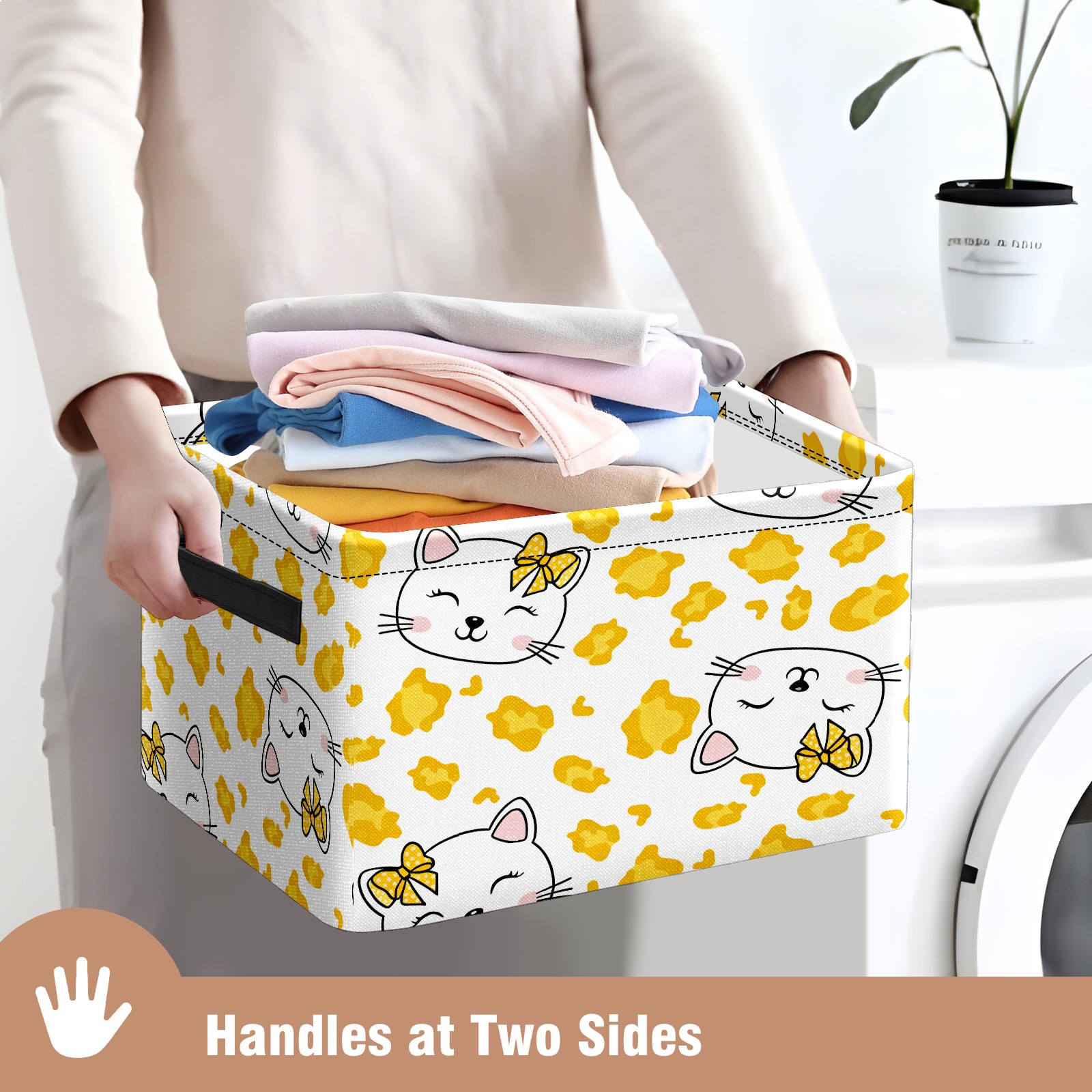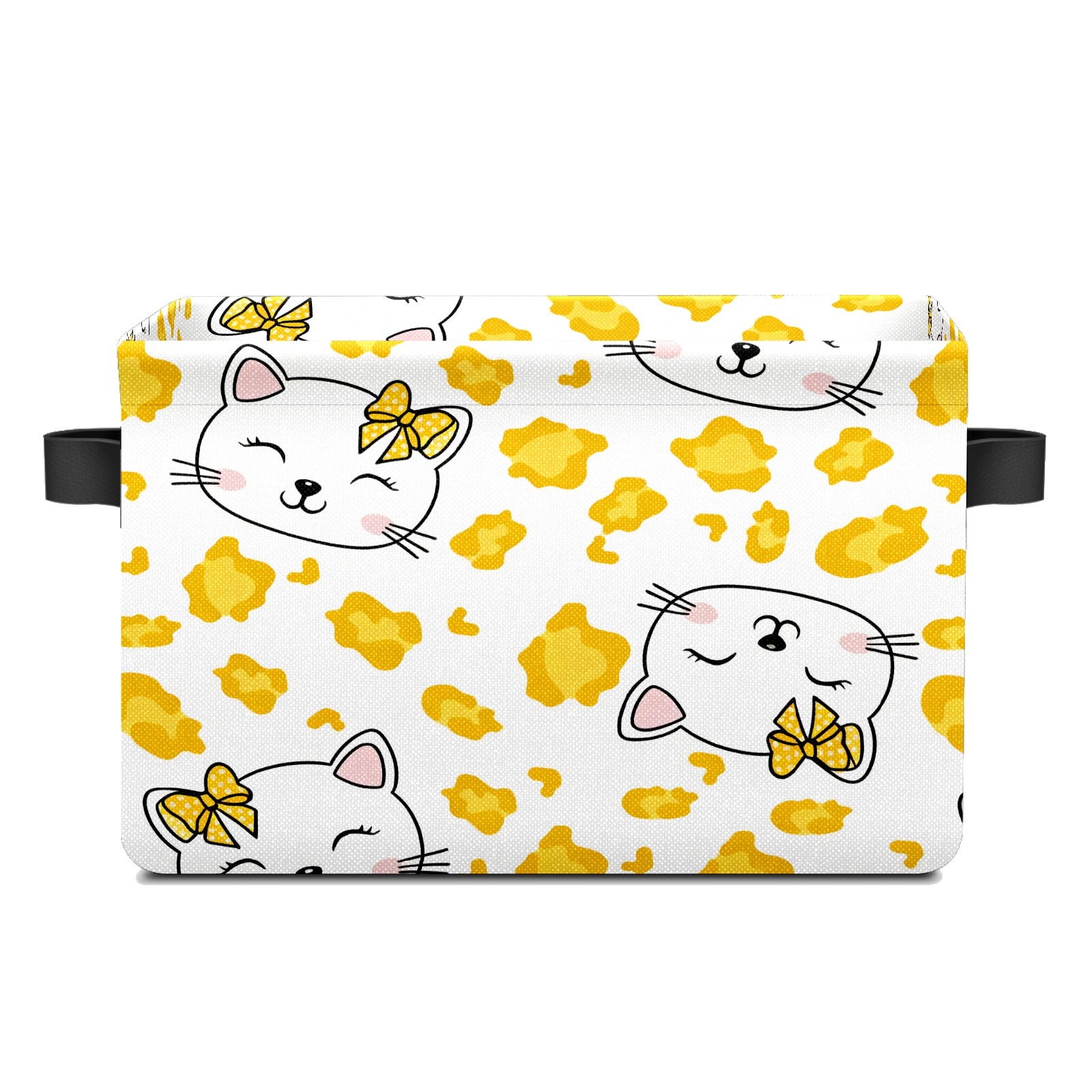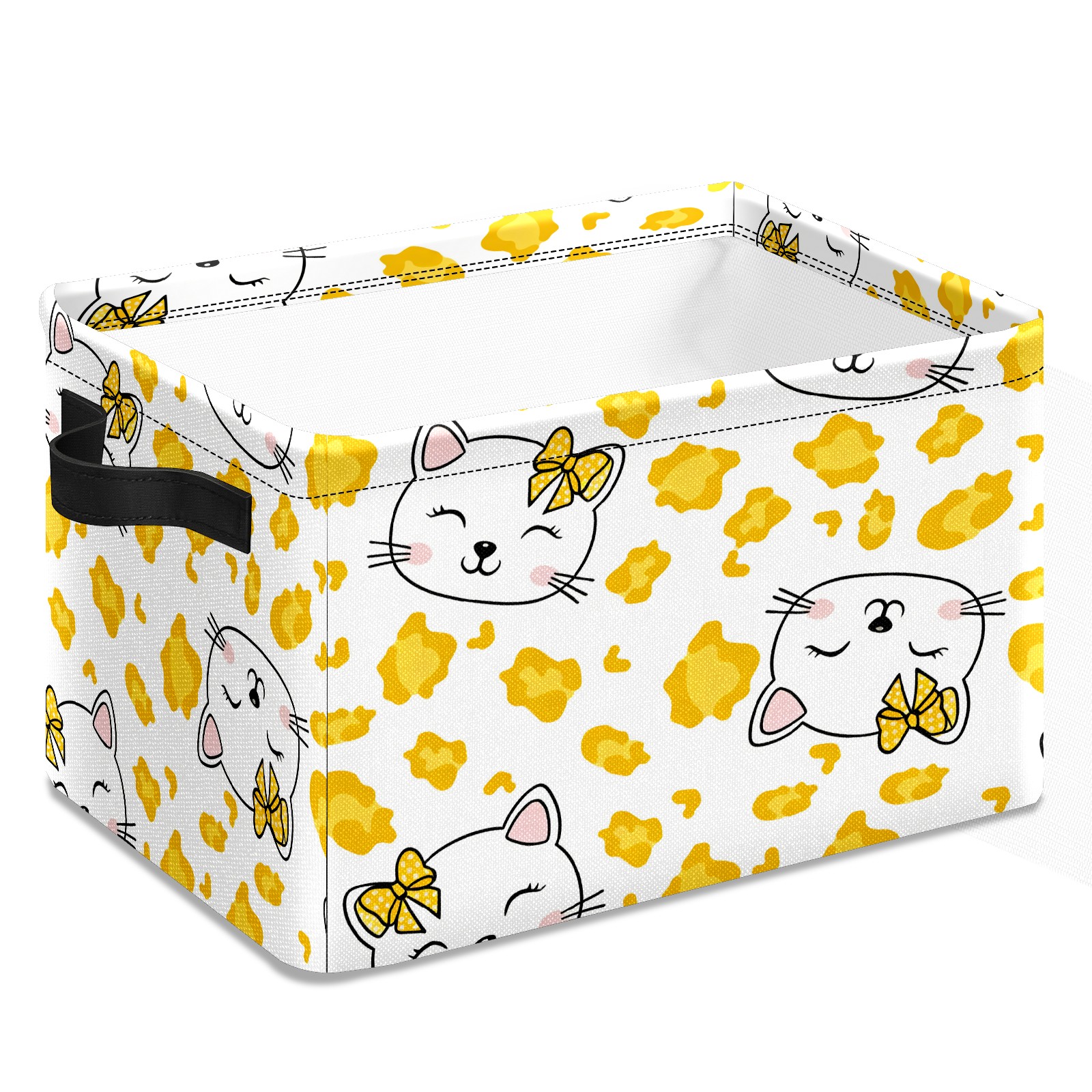 Foldable and Stackable Fabric Storage Basket for Home Organization with Handles, Decorative Closet Bins for Shelves and Laundry Storage( Hello Cat Yellow)