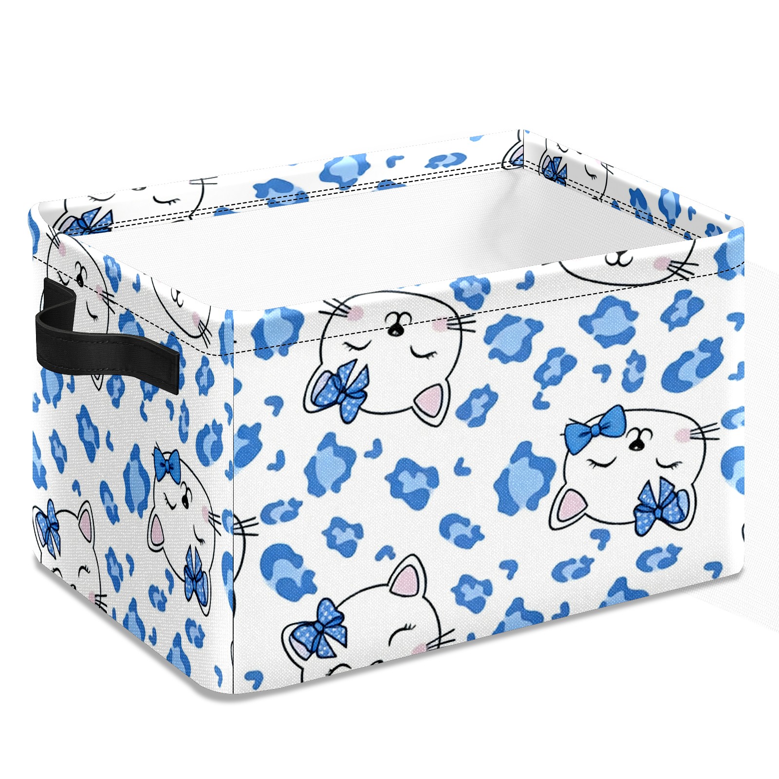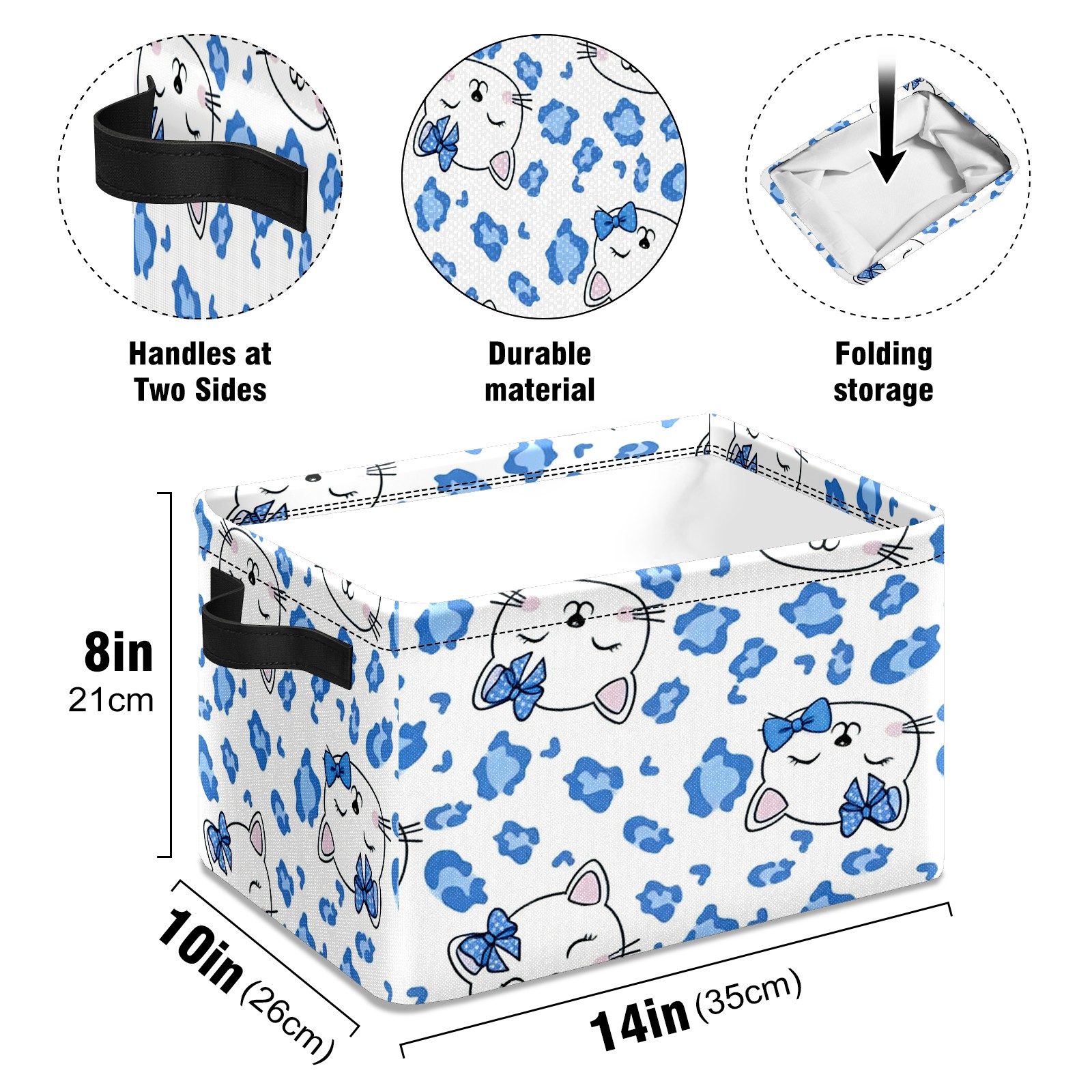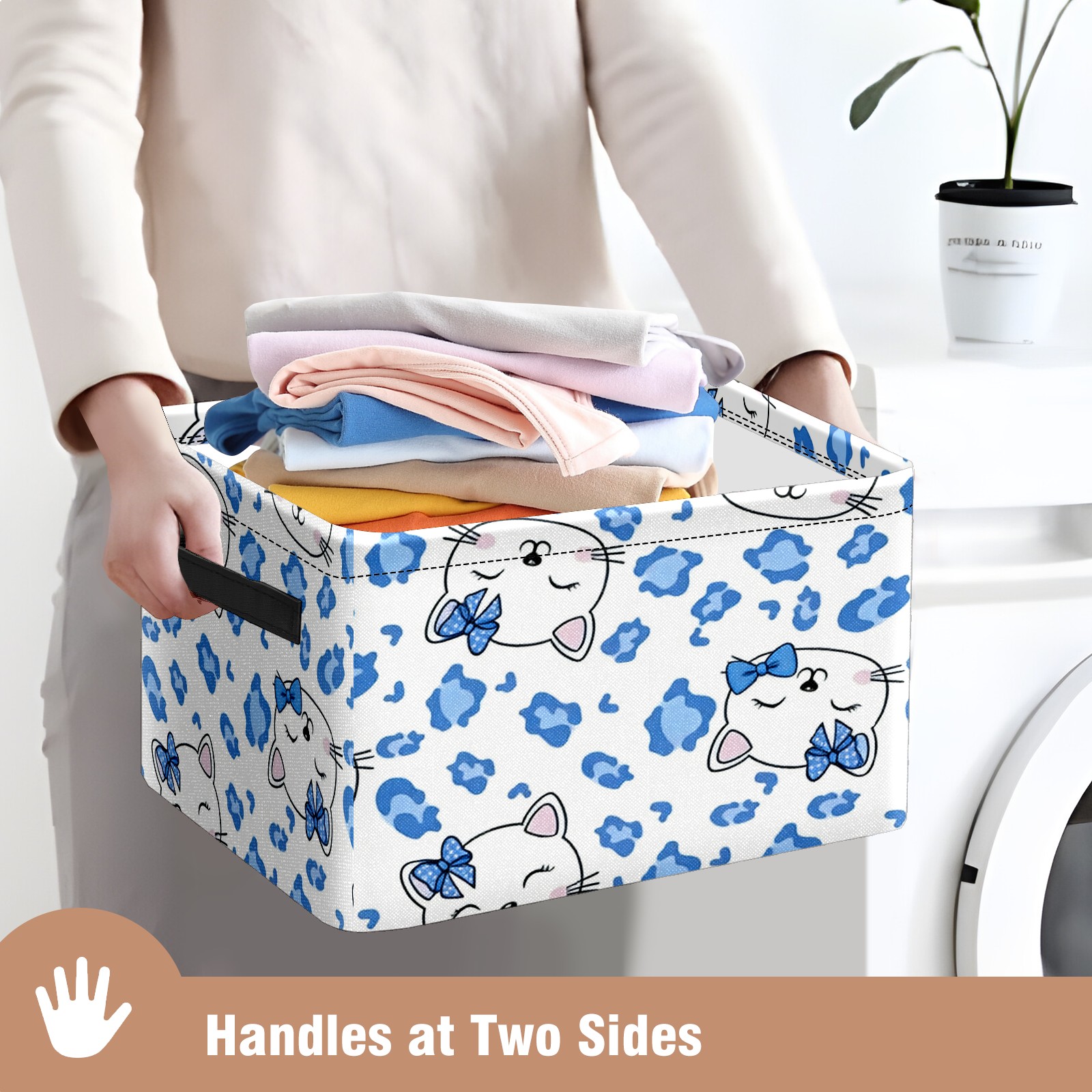 Foldable and Stackable Fabric Storage Basket for Home Organization with Handles, Decorative Closet Bins for Shelves and Laundry Storage( Soft Hello Cat Blue)