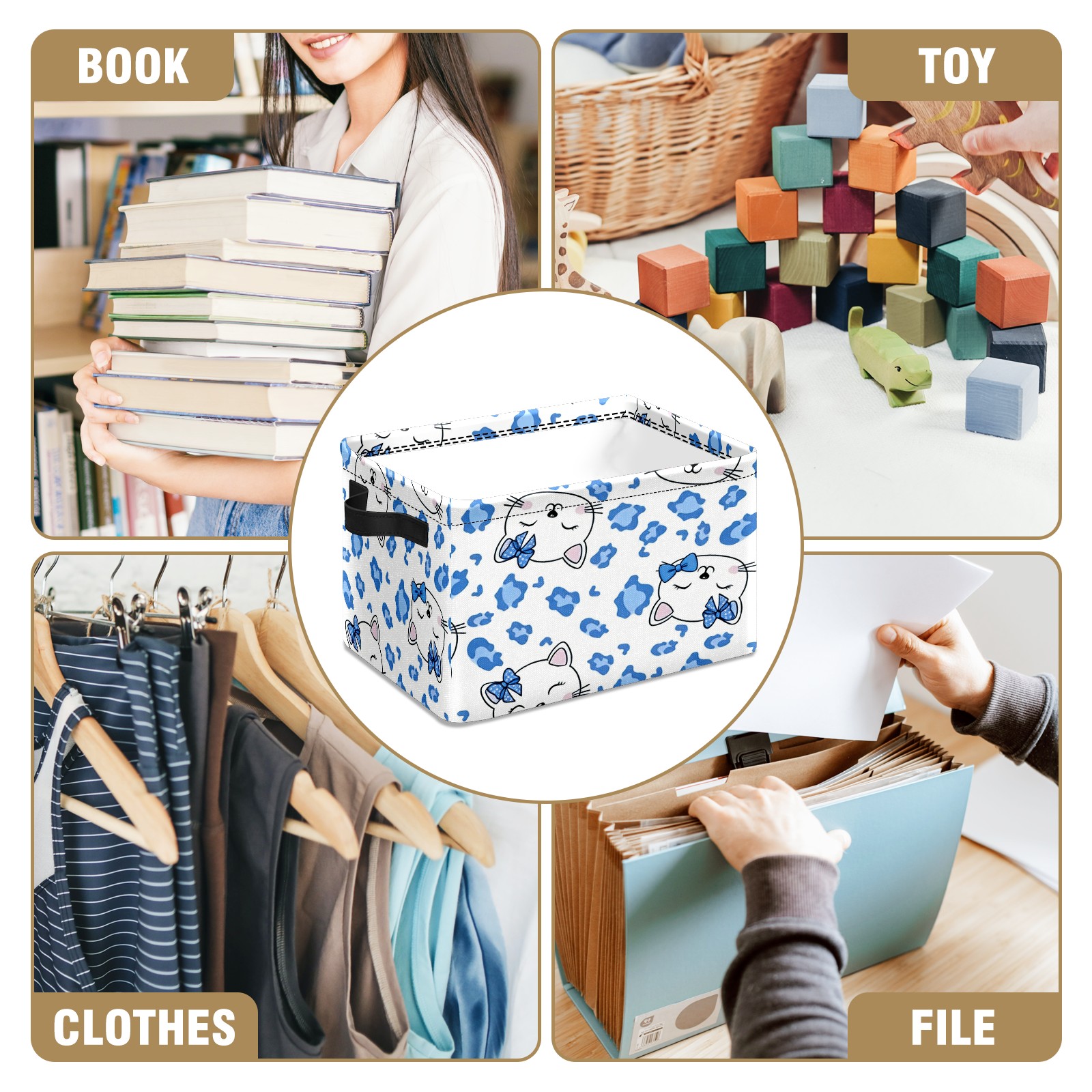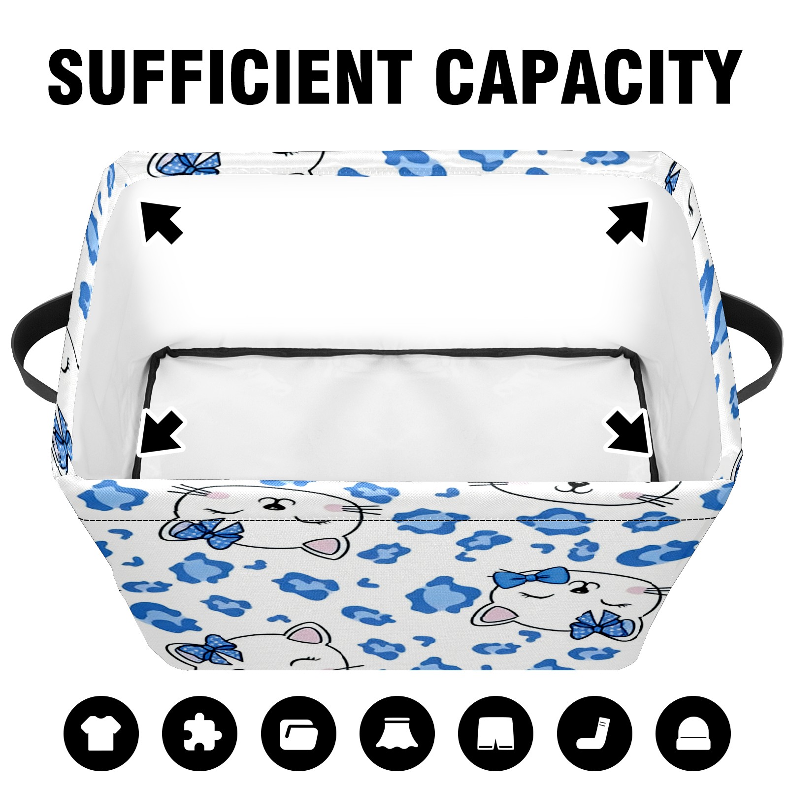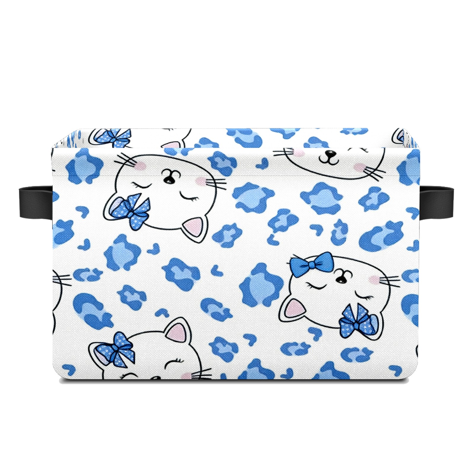 Foldable and Stackable Fabric Storage Basket for Home Organization with Handles, Decorative Closet Bins for Shelves and Laundry Storage( Soft Hello Cat Blue)