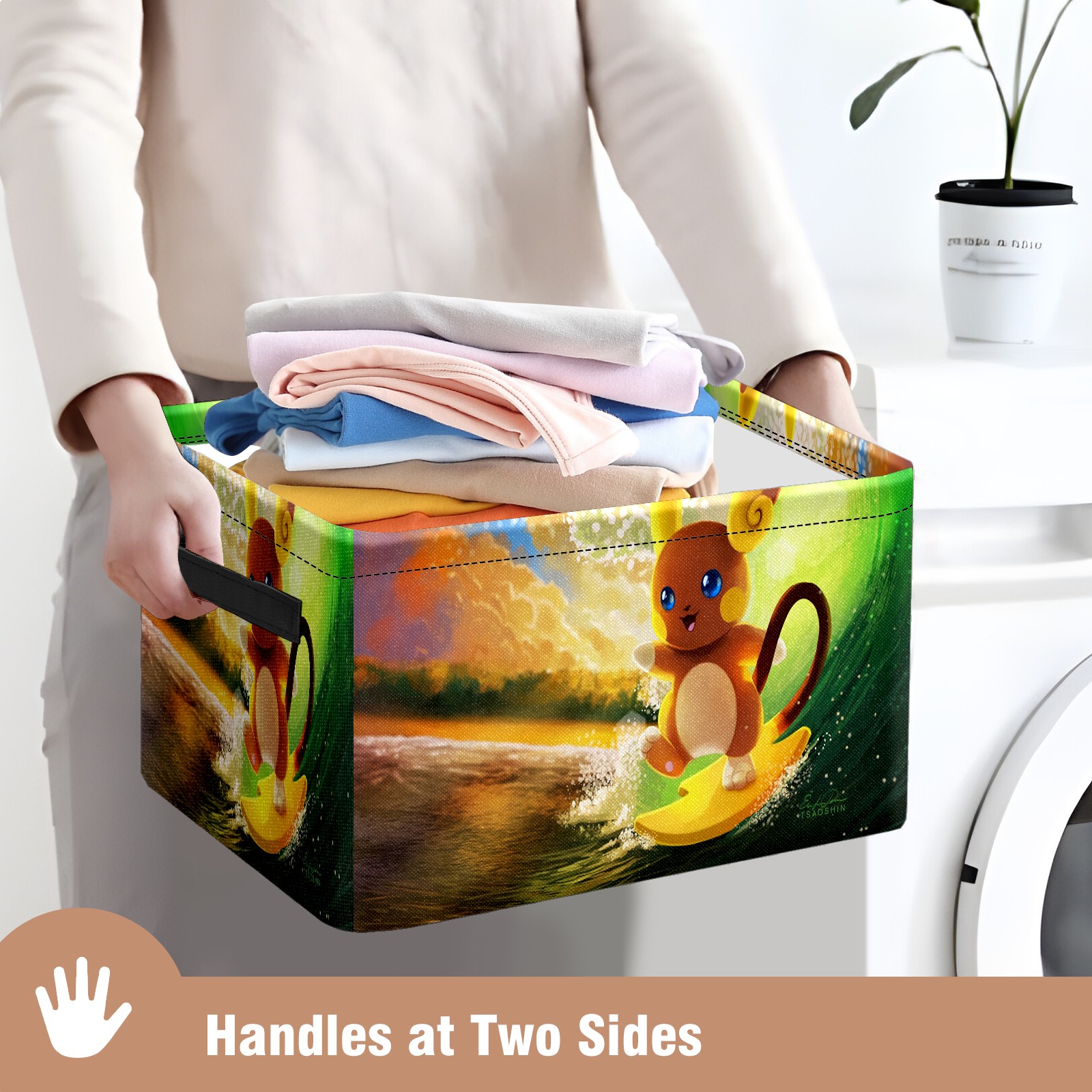 Foldable and Stackable Fabric Storage Basket for Home Organization with Handles, Decorative Closet Bins for Shelves and Laundry Storage( 横图A (381))