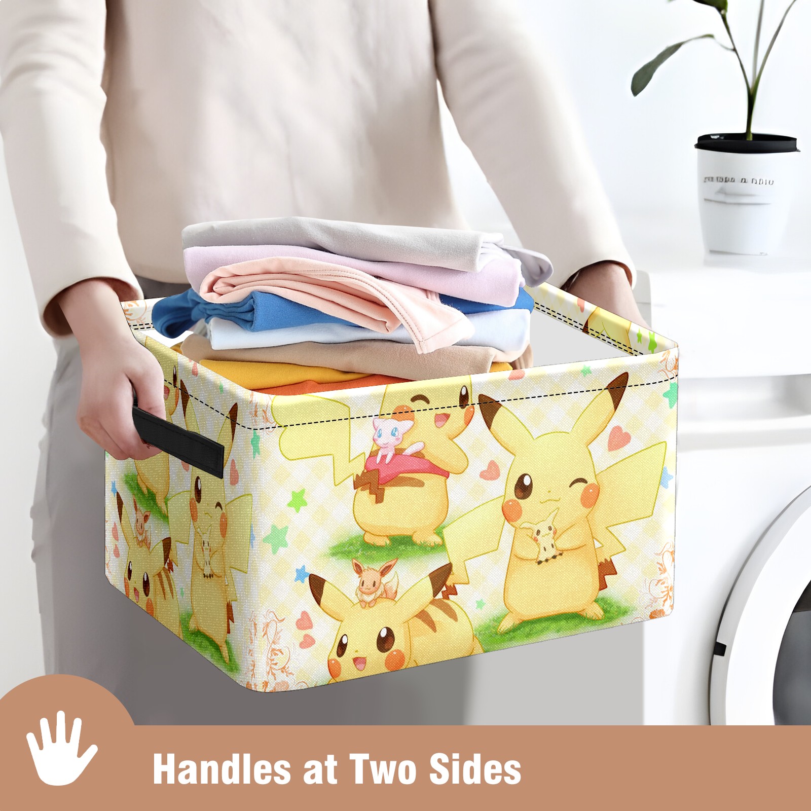 Foldable and Stackable Fabric Storage Basket for Home Organization with Handles, Decorative Closet Bins for Shelves and Laundry Storage( 横图A (306))