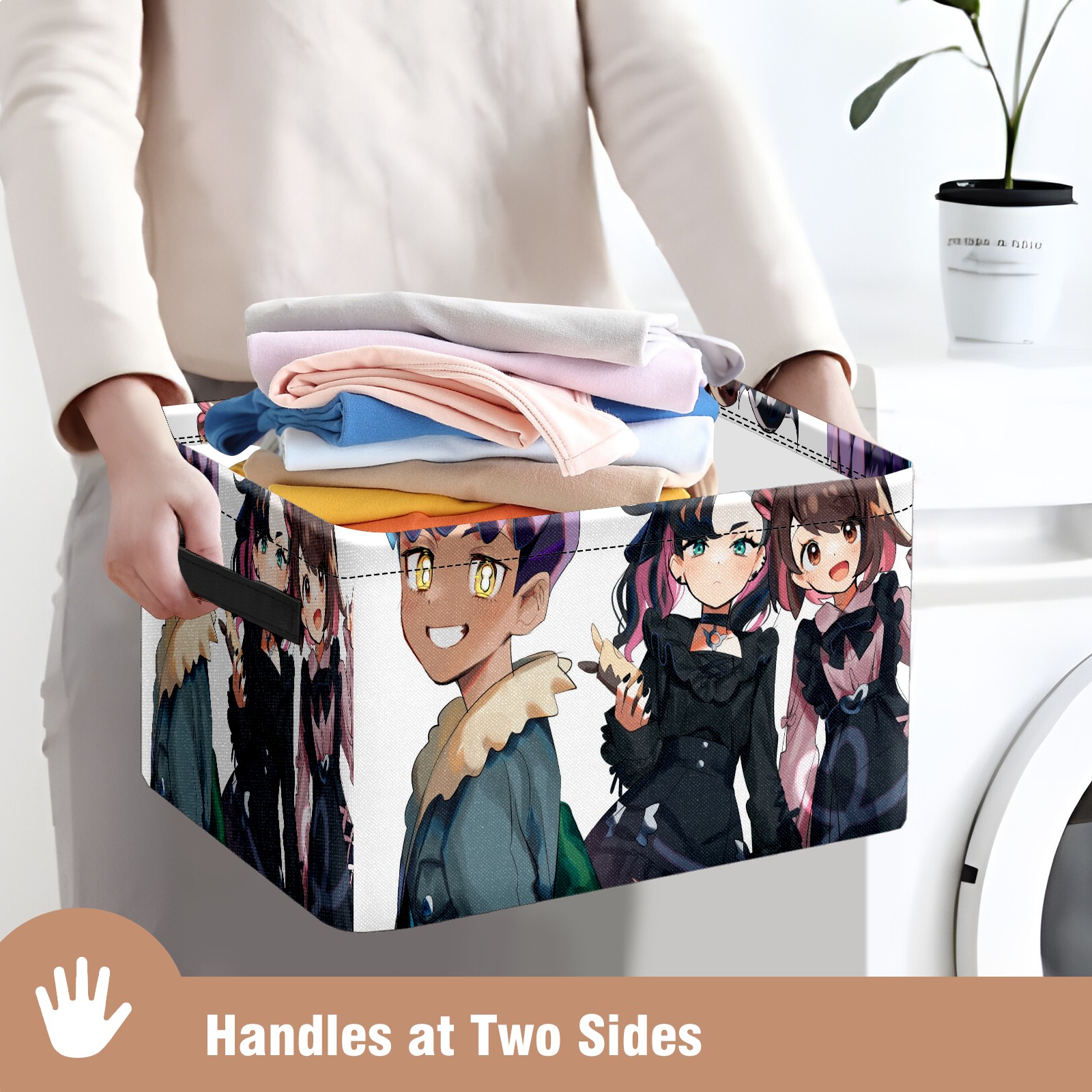 Foldable and Stackable Fabric Storage Basket for Home Organization with Handles, Decorative Closet Bins for Shelves and Laundry Storage( 横图A (107))
