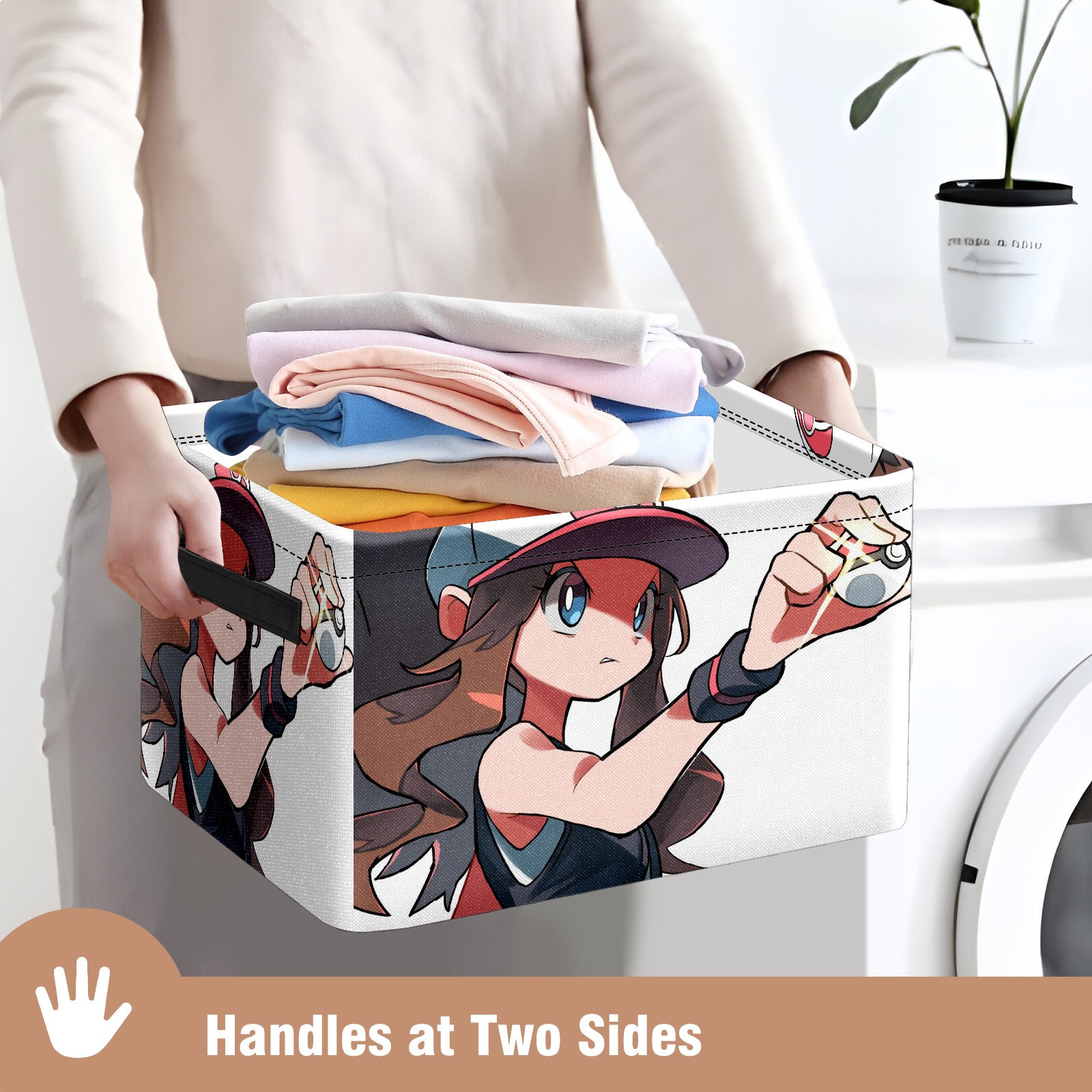 Foldable and Stackable Fabric Storage Basket for Home Organization with Handles, Decorative Closet Bins for Shelves and Laundry Storage( 横图A (48))