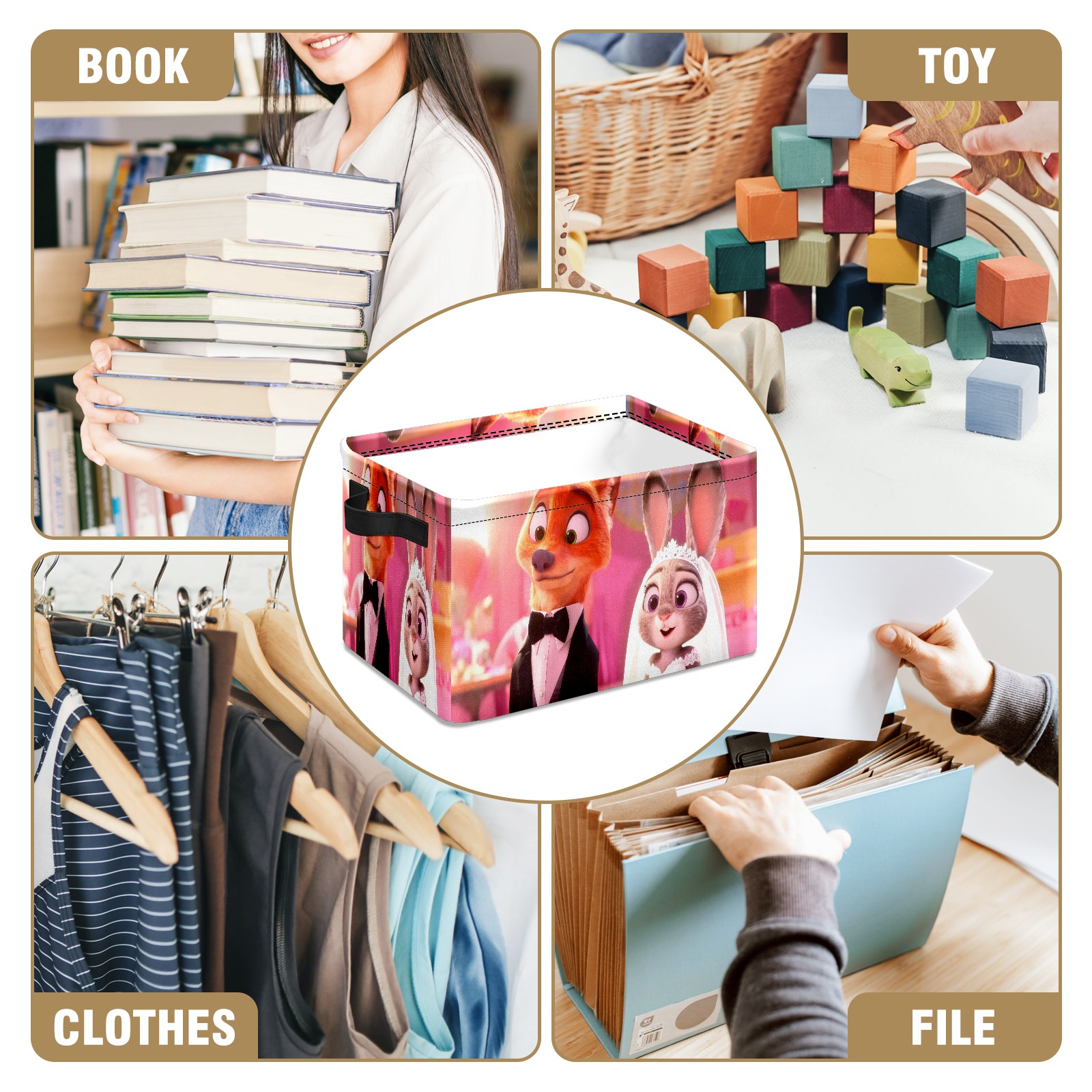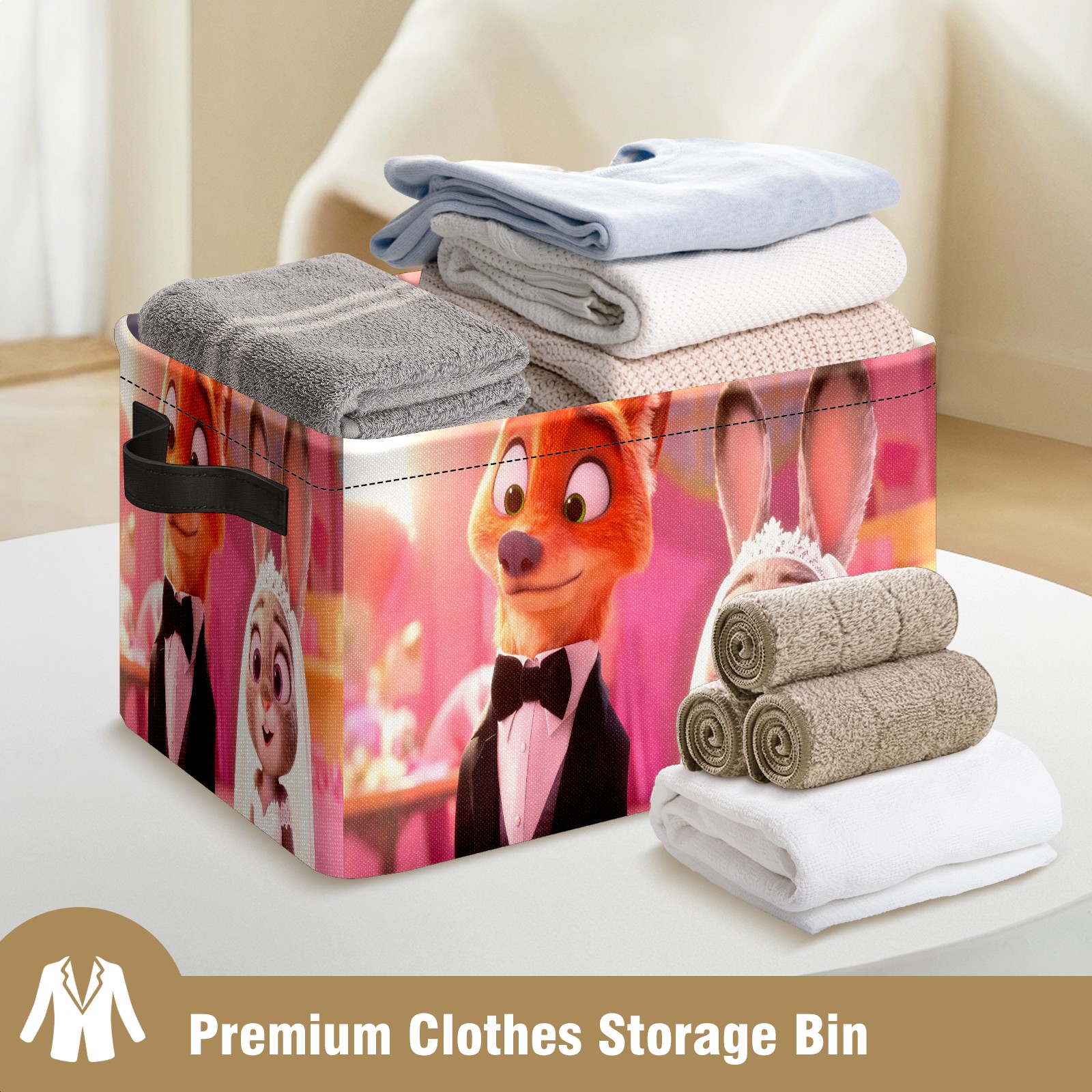 Foldable and Stackable Fabric Storage Basket for Home Organization with Handles, Decorative Closet Bins for Shelves and Laundry Storage( 朱迪尼克礼服 电脑版02)