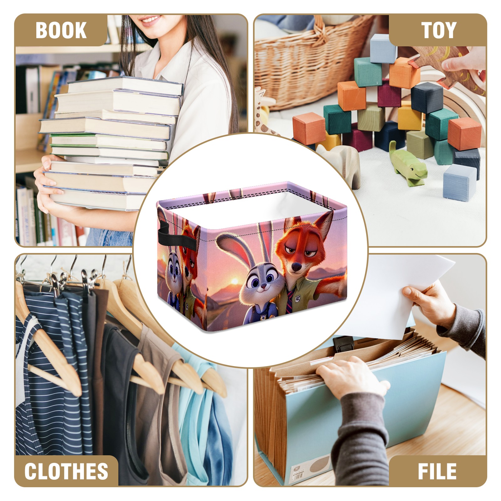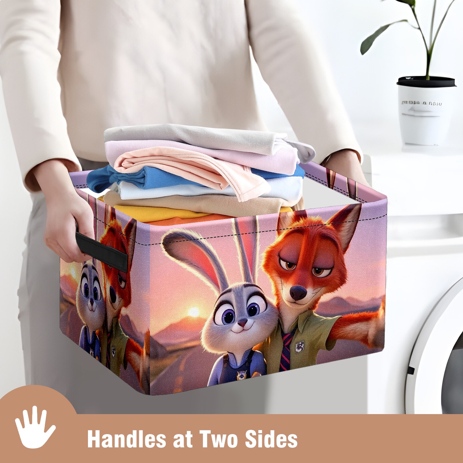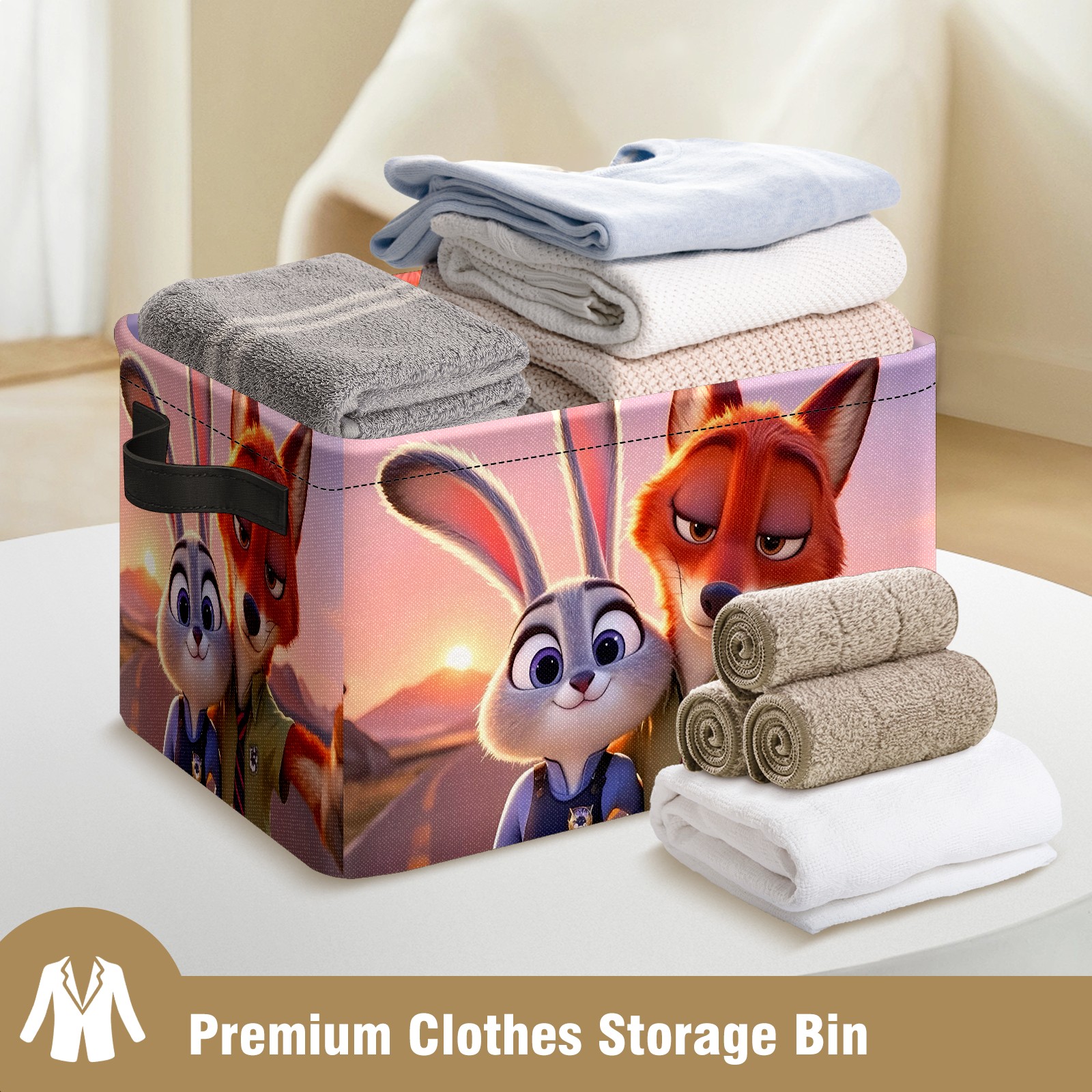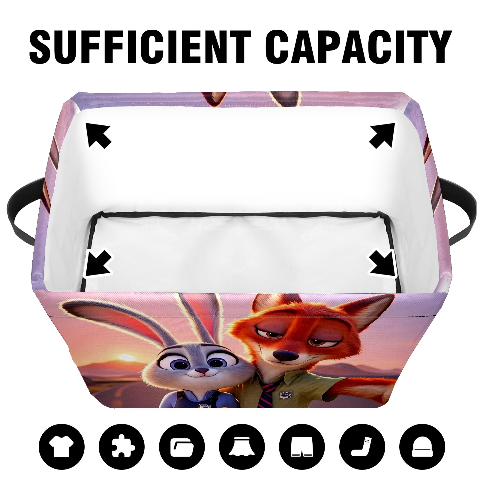 Foldable and Stackable Fabric Storage Basket for Home Organization with Handles, Decorative Closet Bins for Shelves and Laundry Storage( 疯狂动物城 新增 IPad 04)