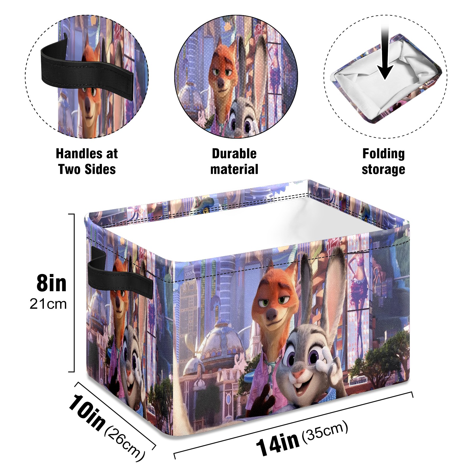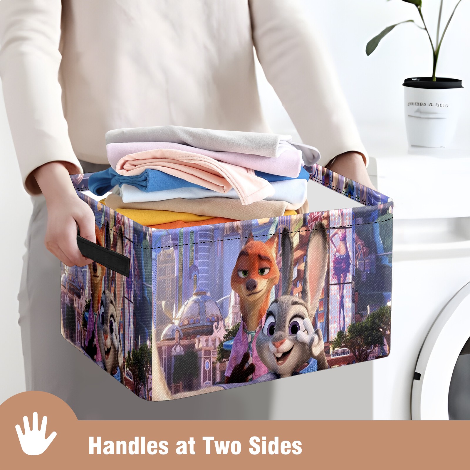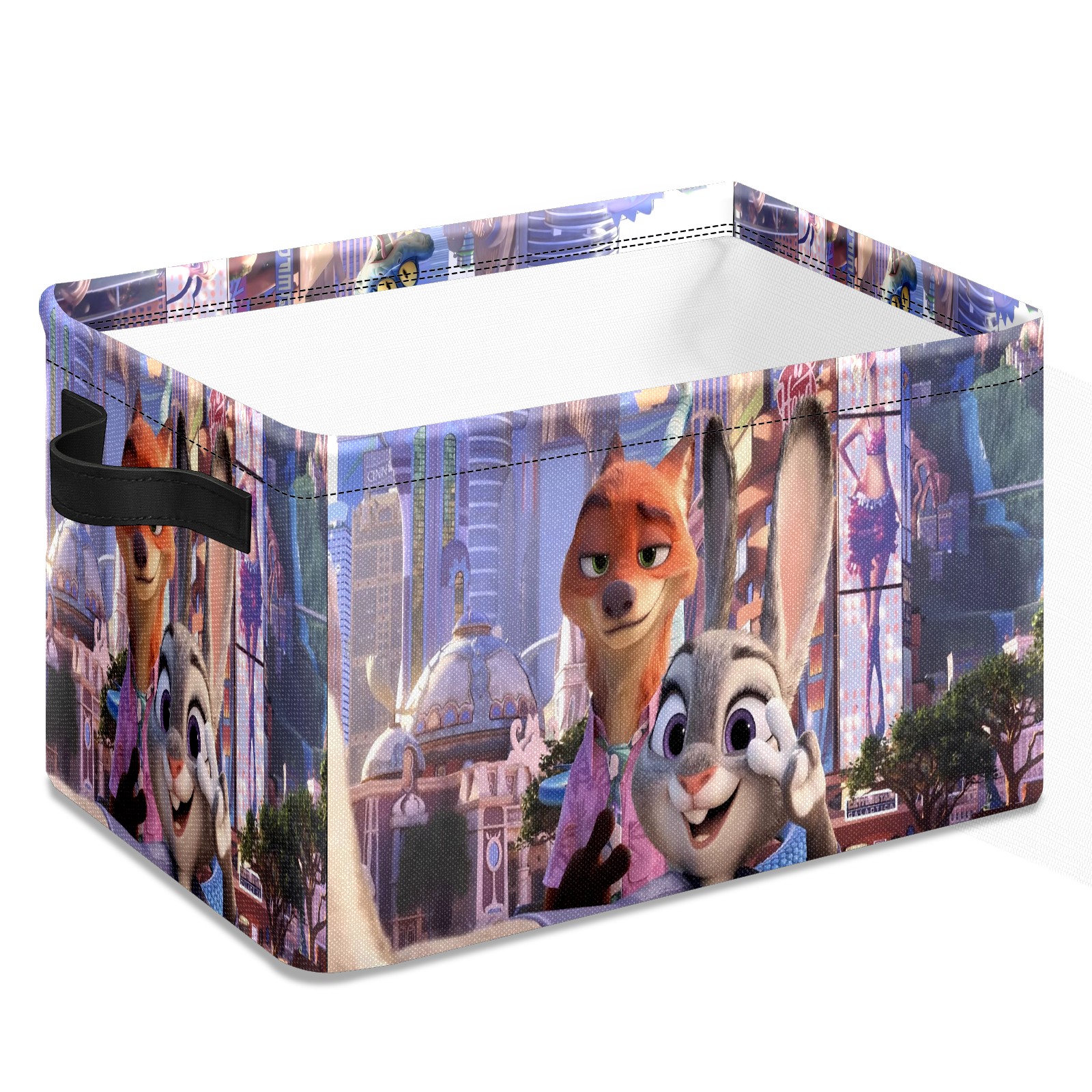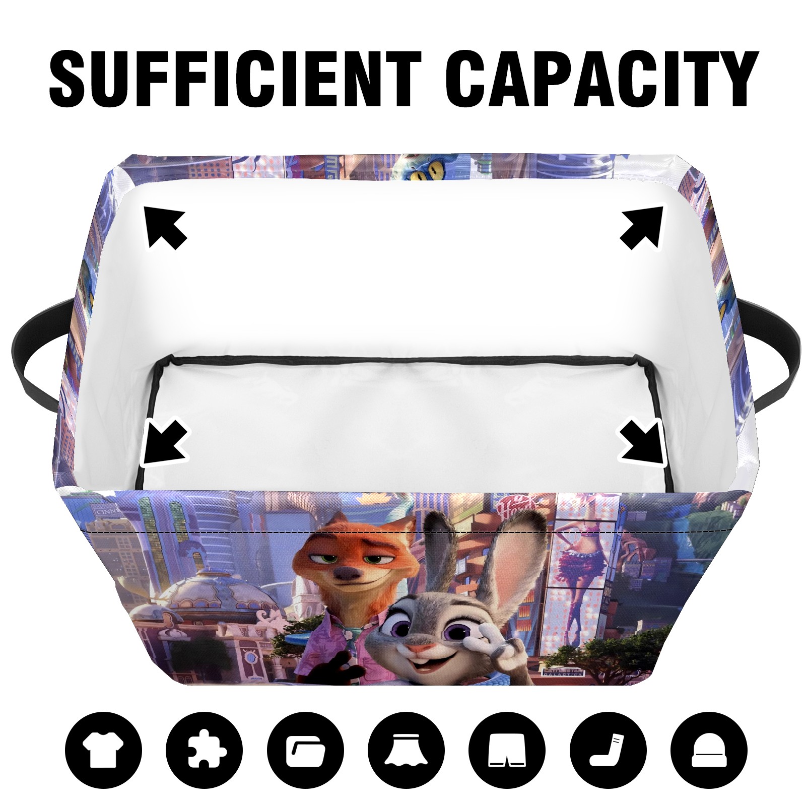 Foldable and Stackable Fabric Storage Basket for Home Organization with Handles, Decorative Closet Bins for Shelves and Laundry Storage( 疯狂动物城 电脑版 04)