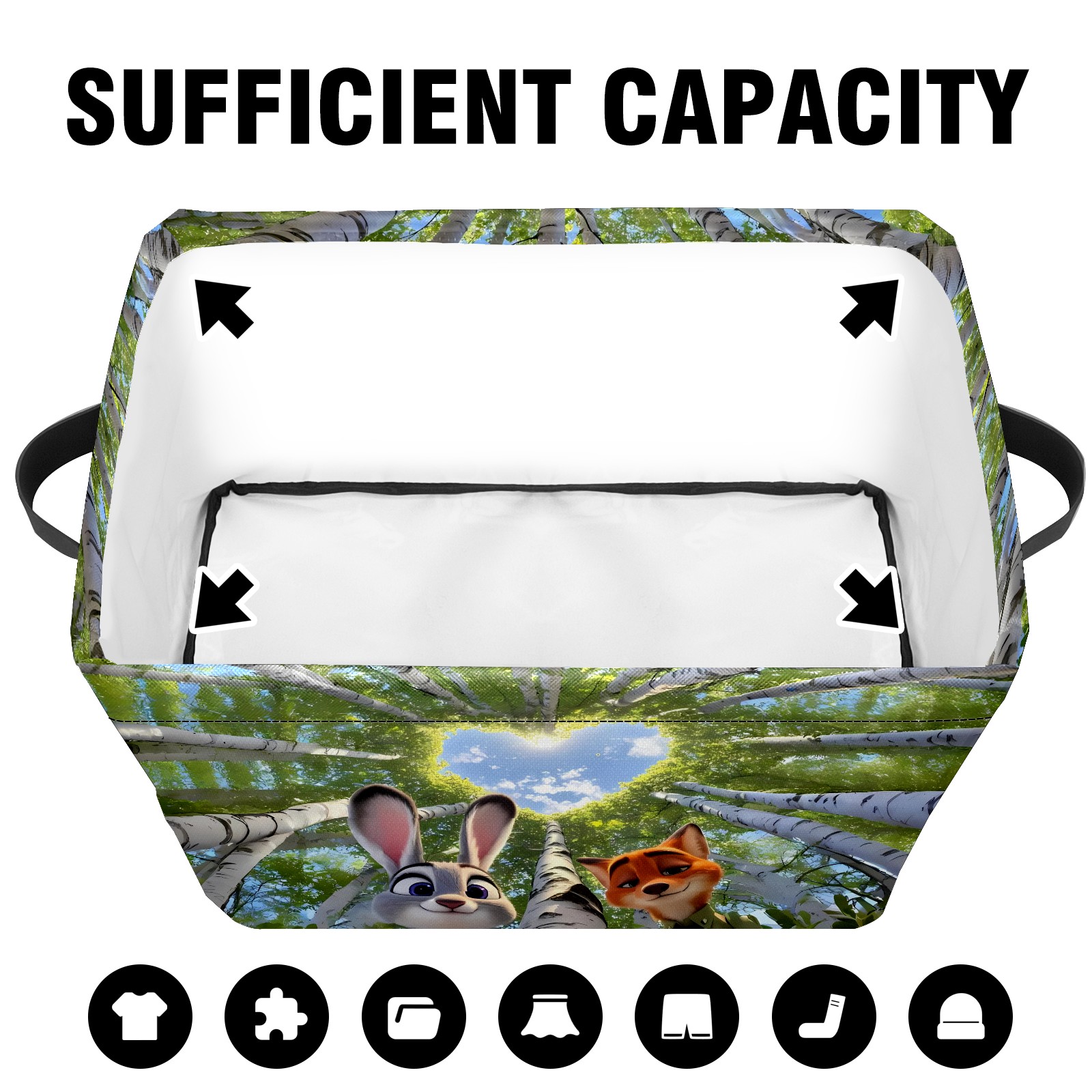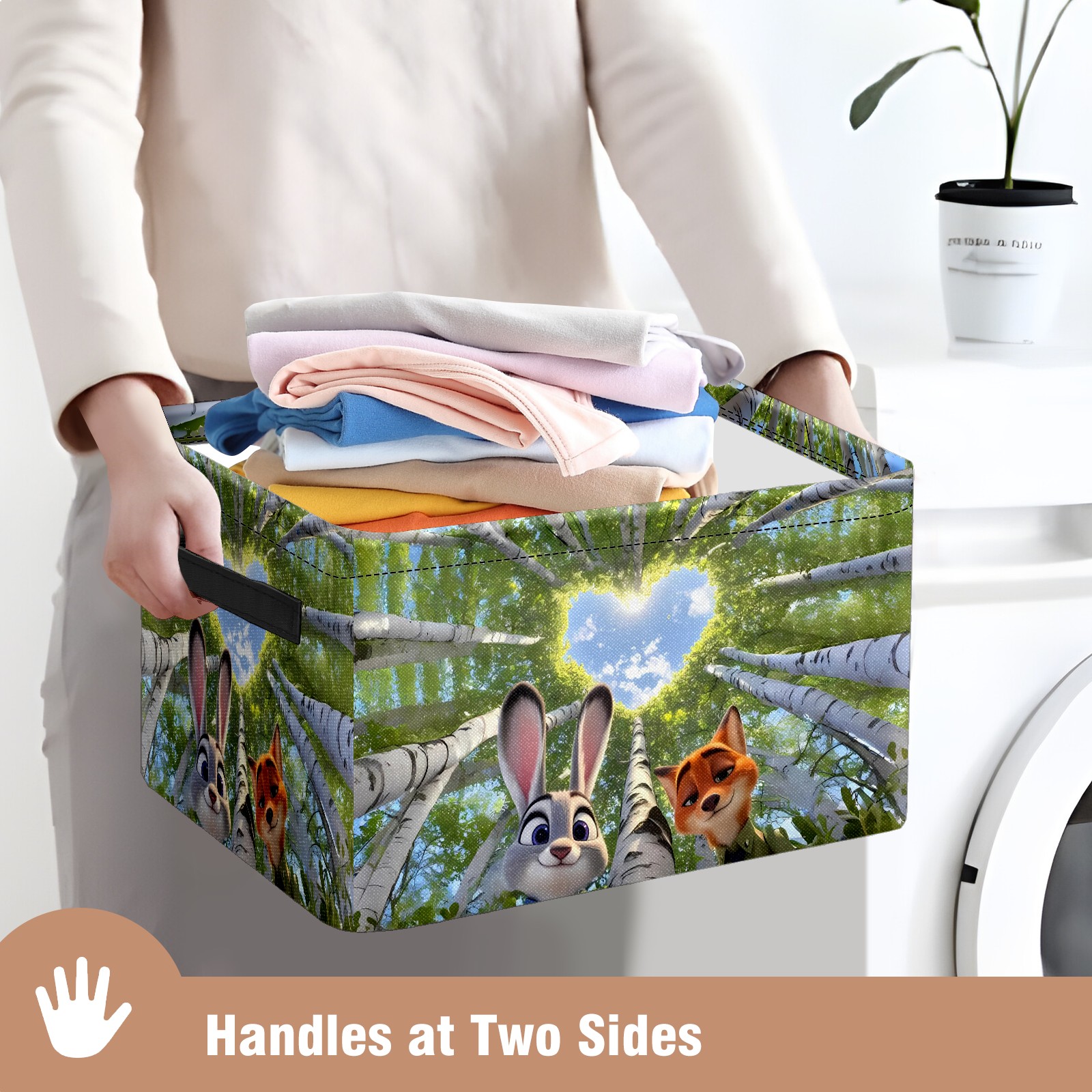 Foldable and Stackable Fabric Storage Basket for Home Organization with Handles, Decorative Closet Bins for Shelves and Laundry Storage( 疯狂动物城 IPad版)
