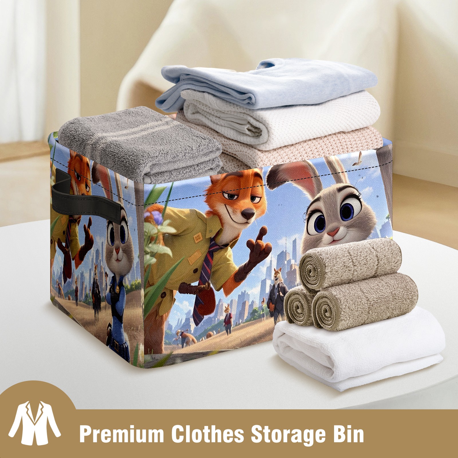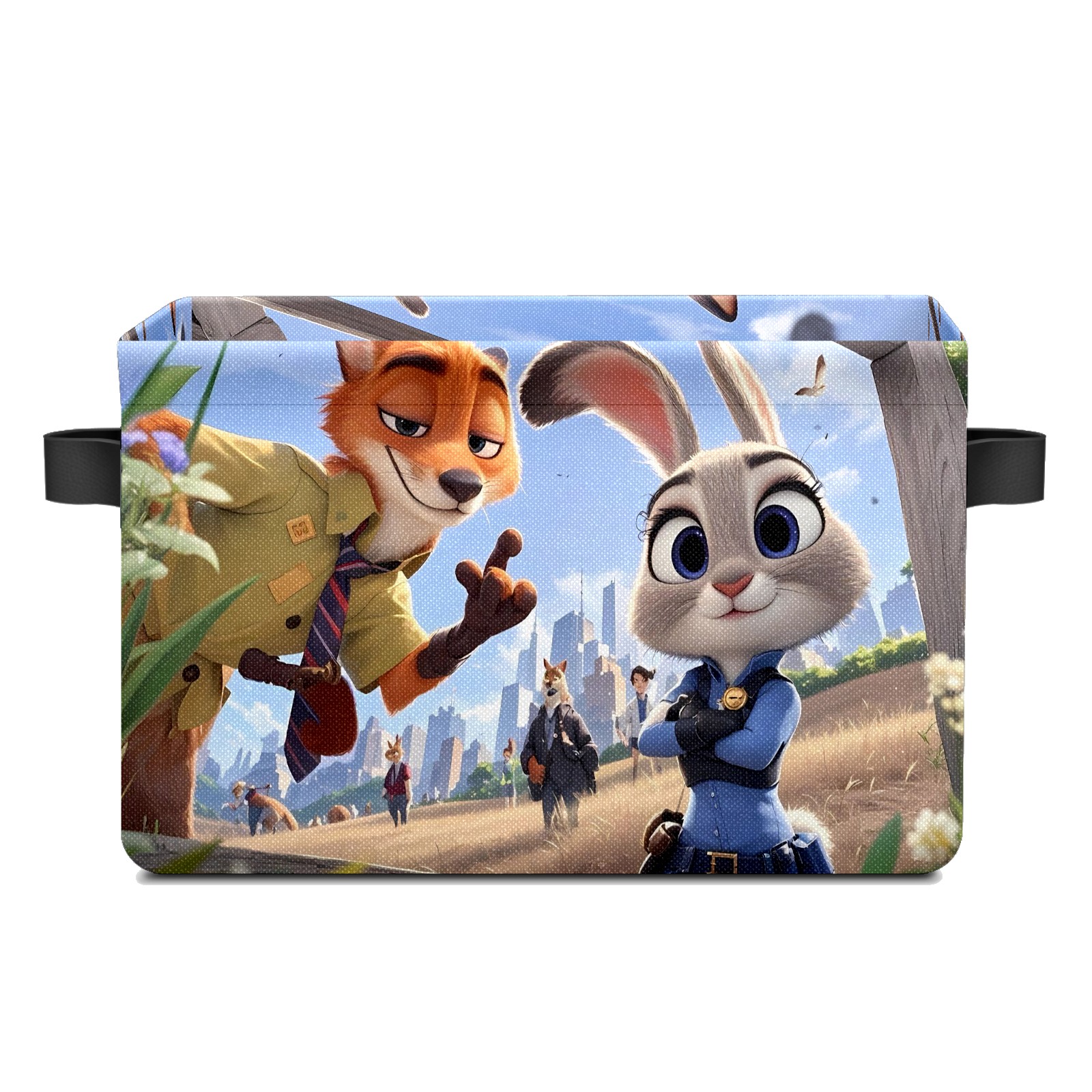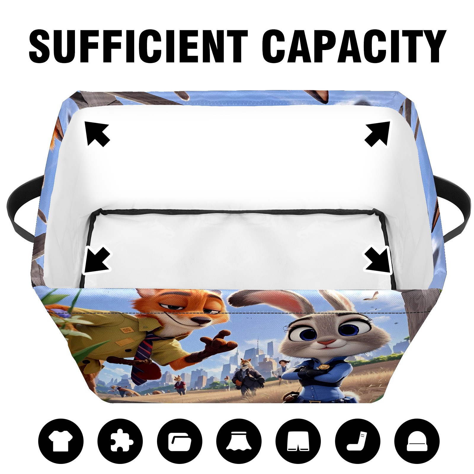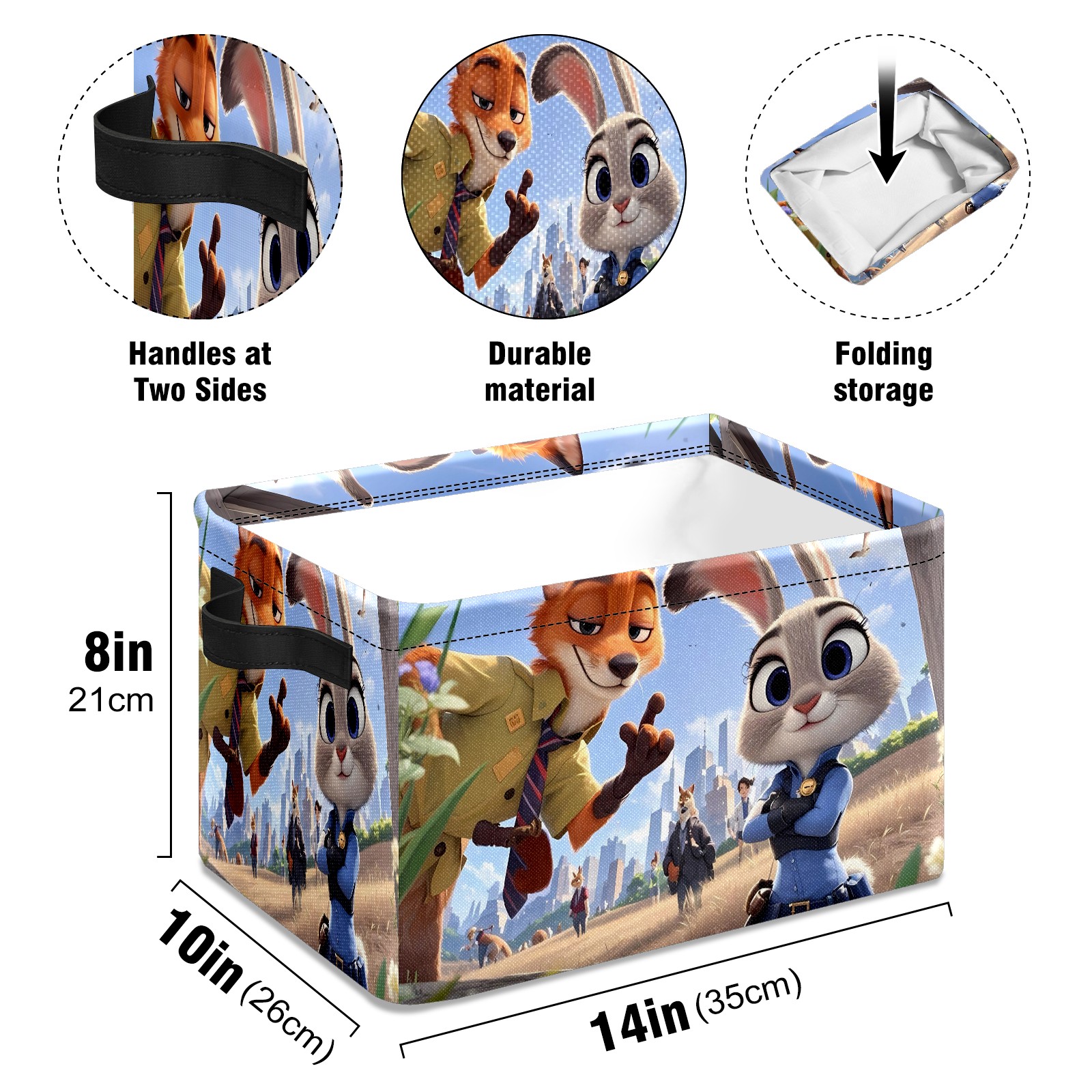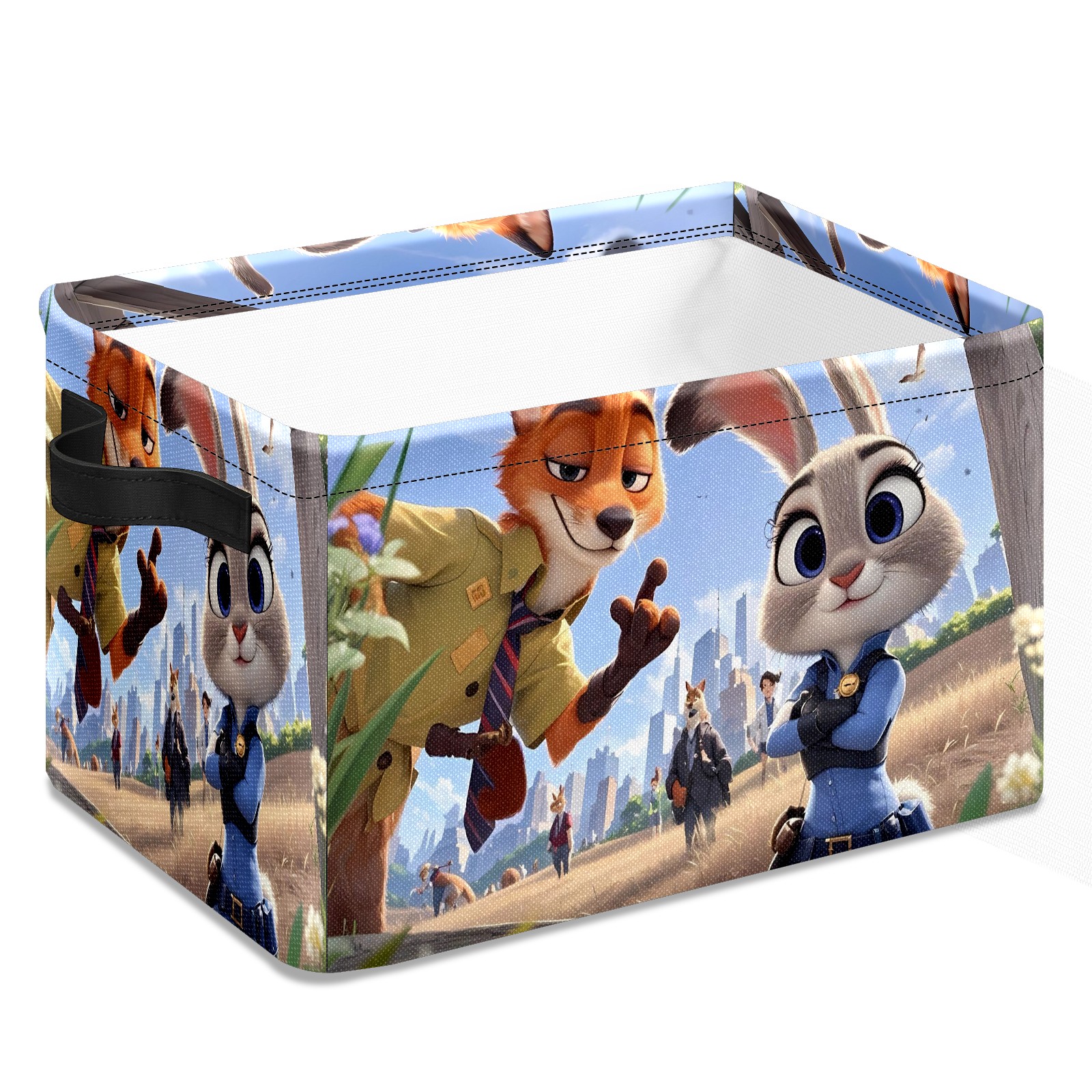 Foldable and Stackable Fabric Storage Basket for Home Organization with Handles, Decorative Closet Bins for Shelves and Laundry Storage( 疯狂动物城 IPad版 08)