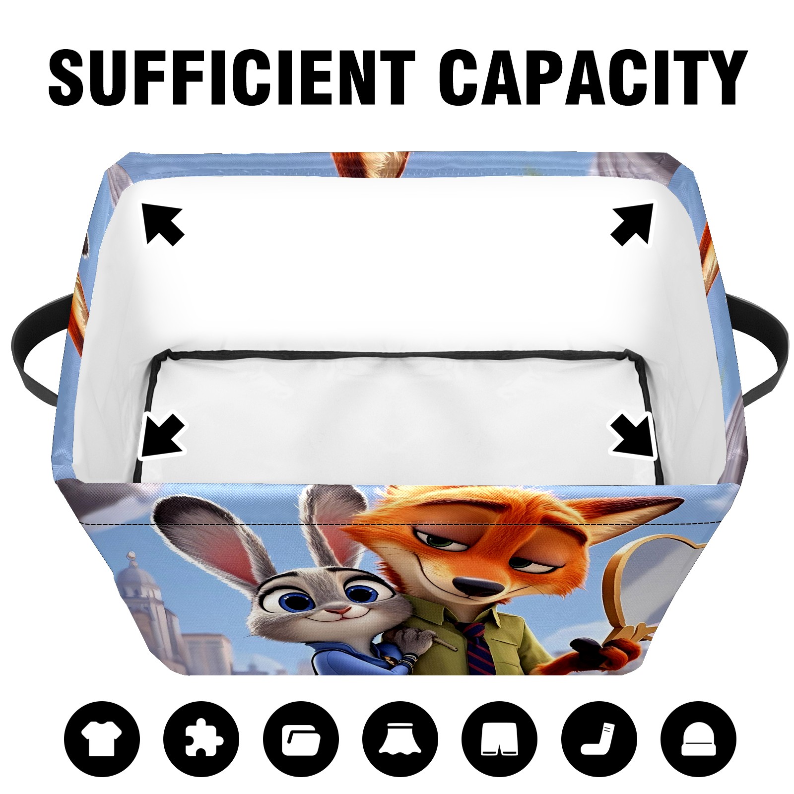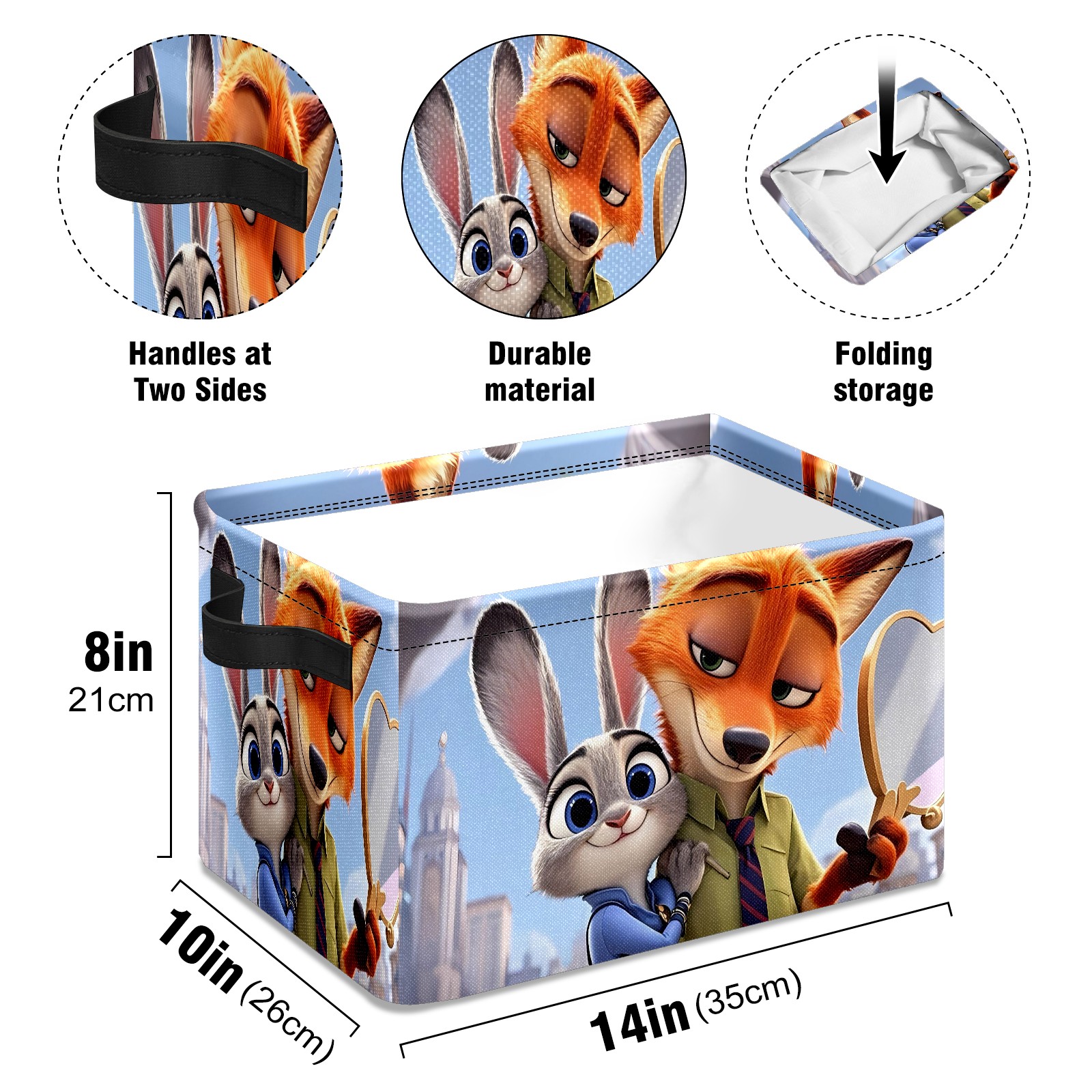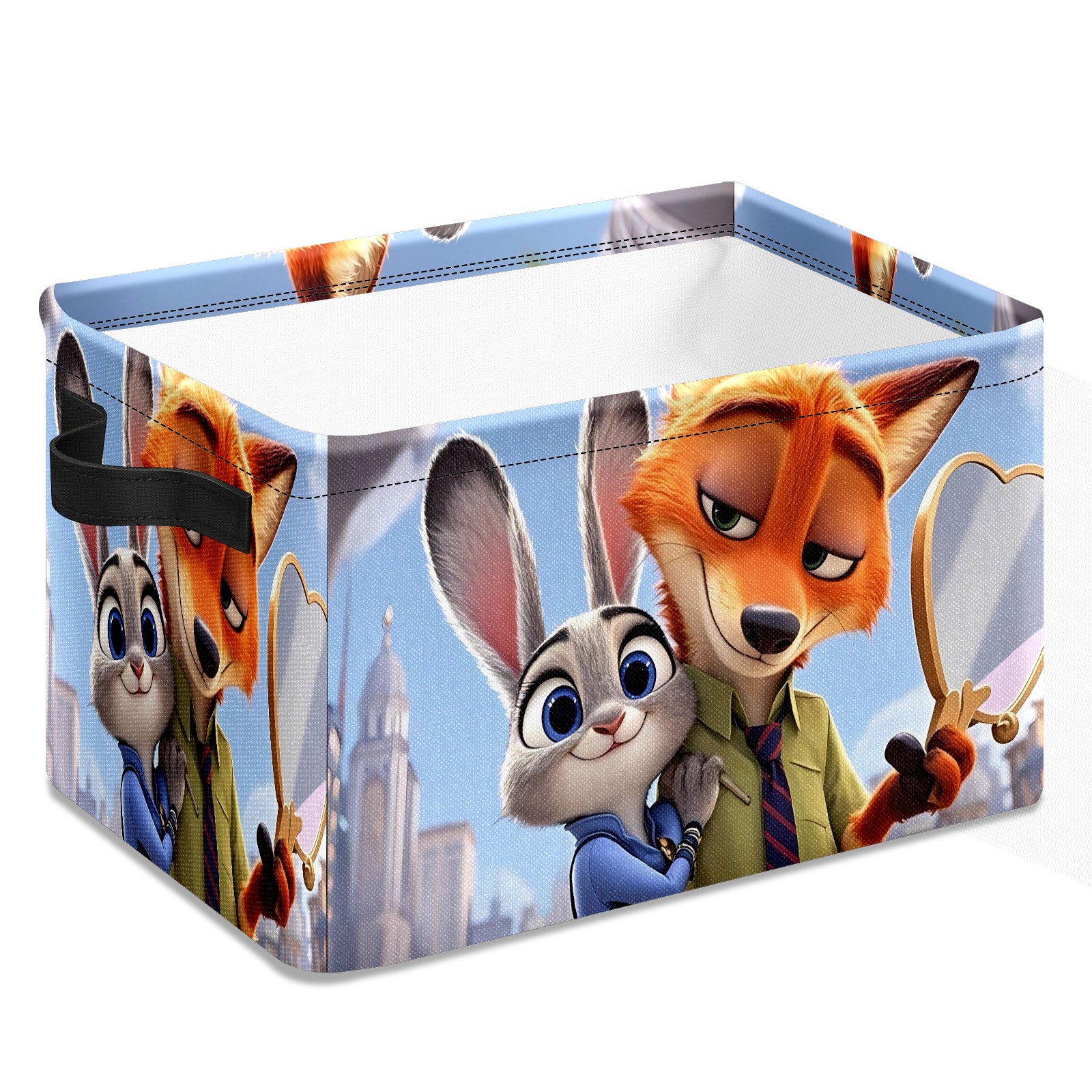 Foldable and Stackable Fabric Storage Basket for Home Organization with Handles, Decorative Closet Bins for Shelves and Laundry Storage( 疯狂动物城 IPad版 06)