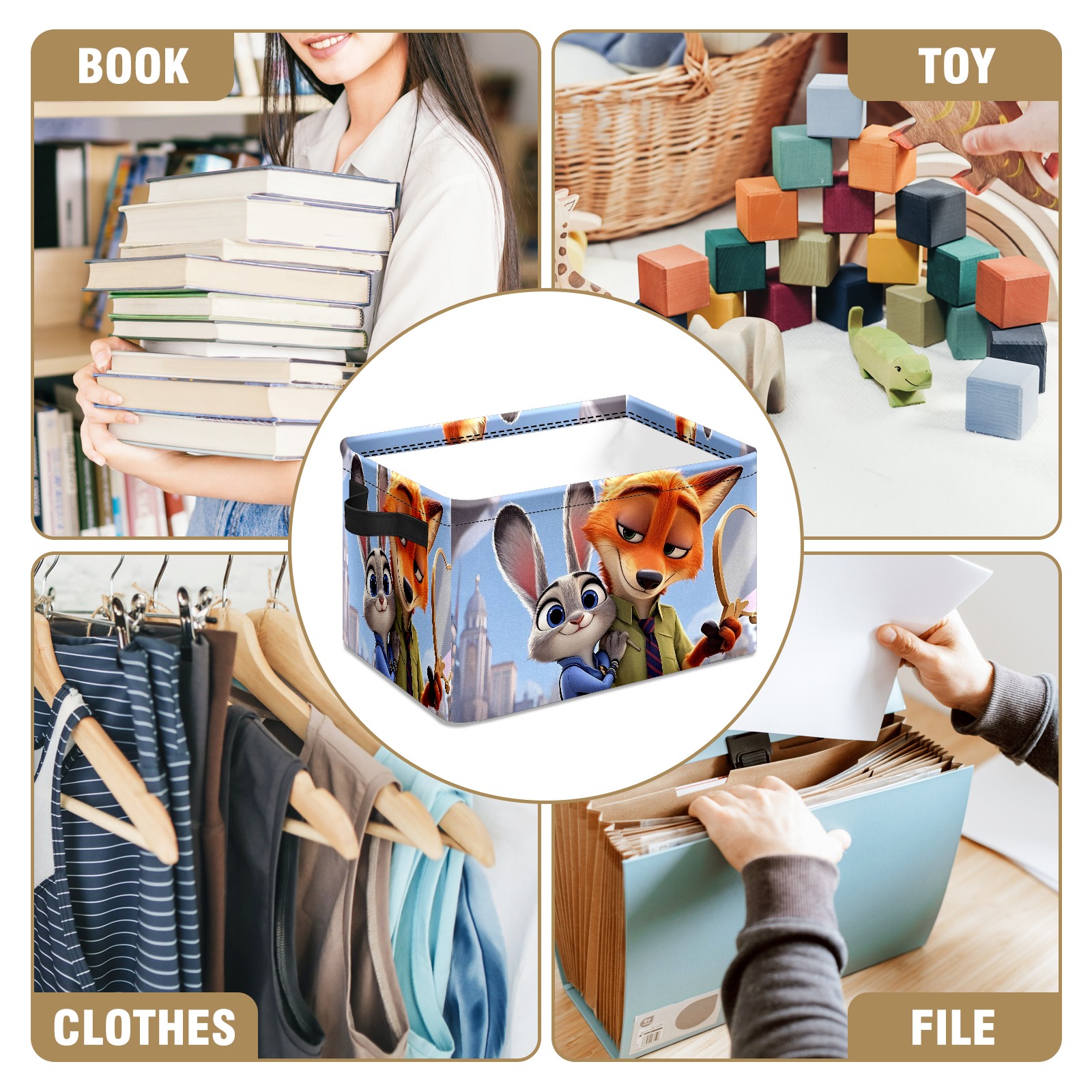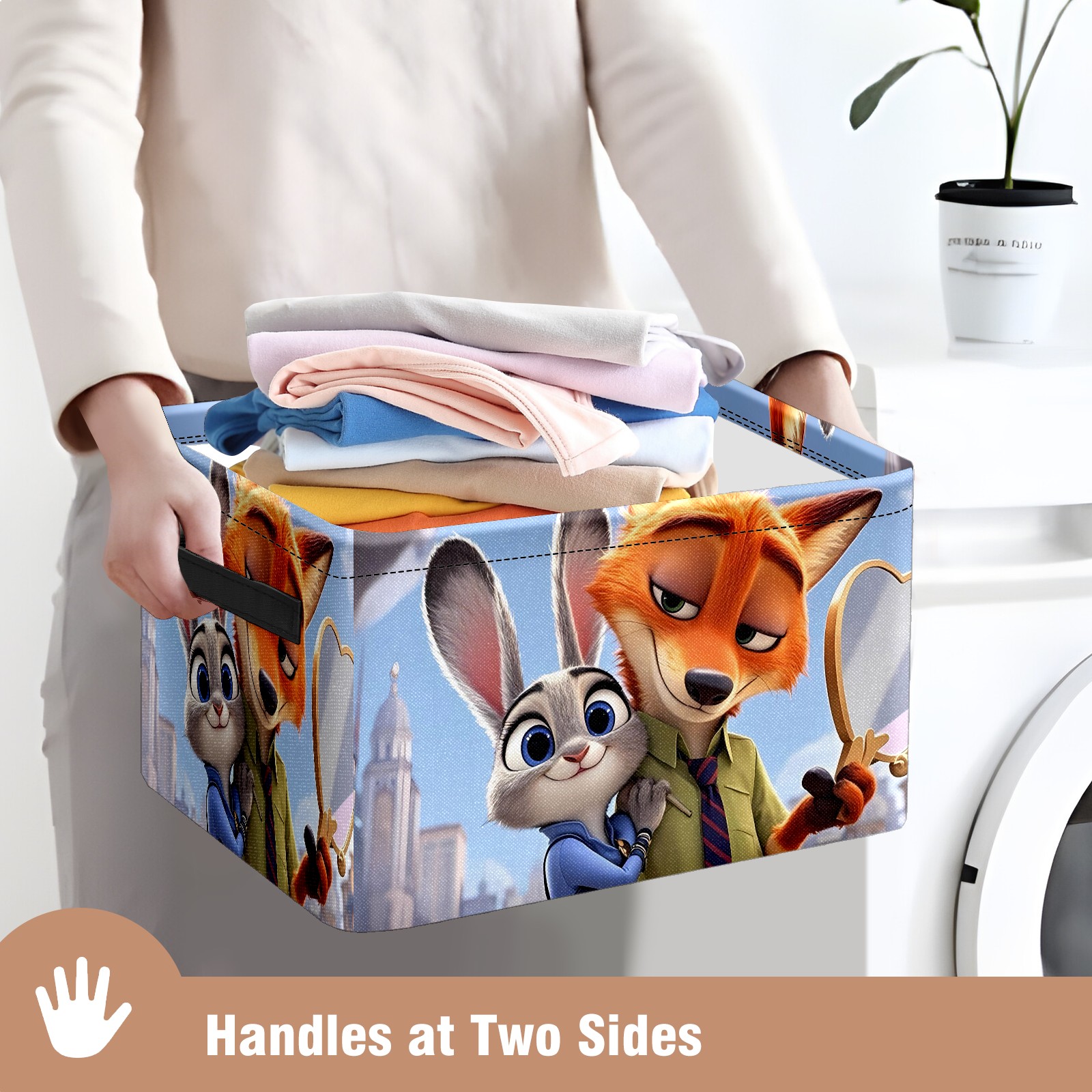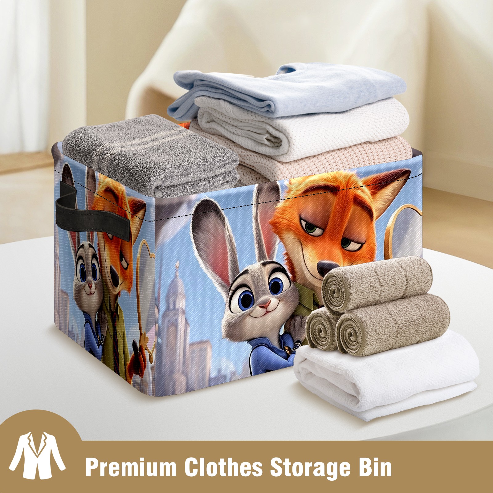 Foldable and Stackable Fabric Storage Basket for Home Organization with Handles, Decorative Closet Bins for Shelves and Laundry Storage( 疯狂动物城 IPad版 06)