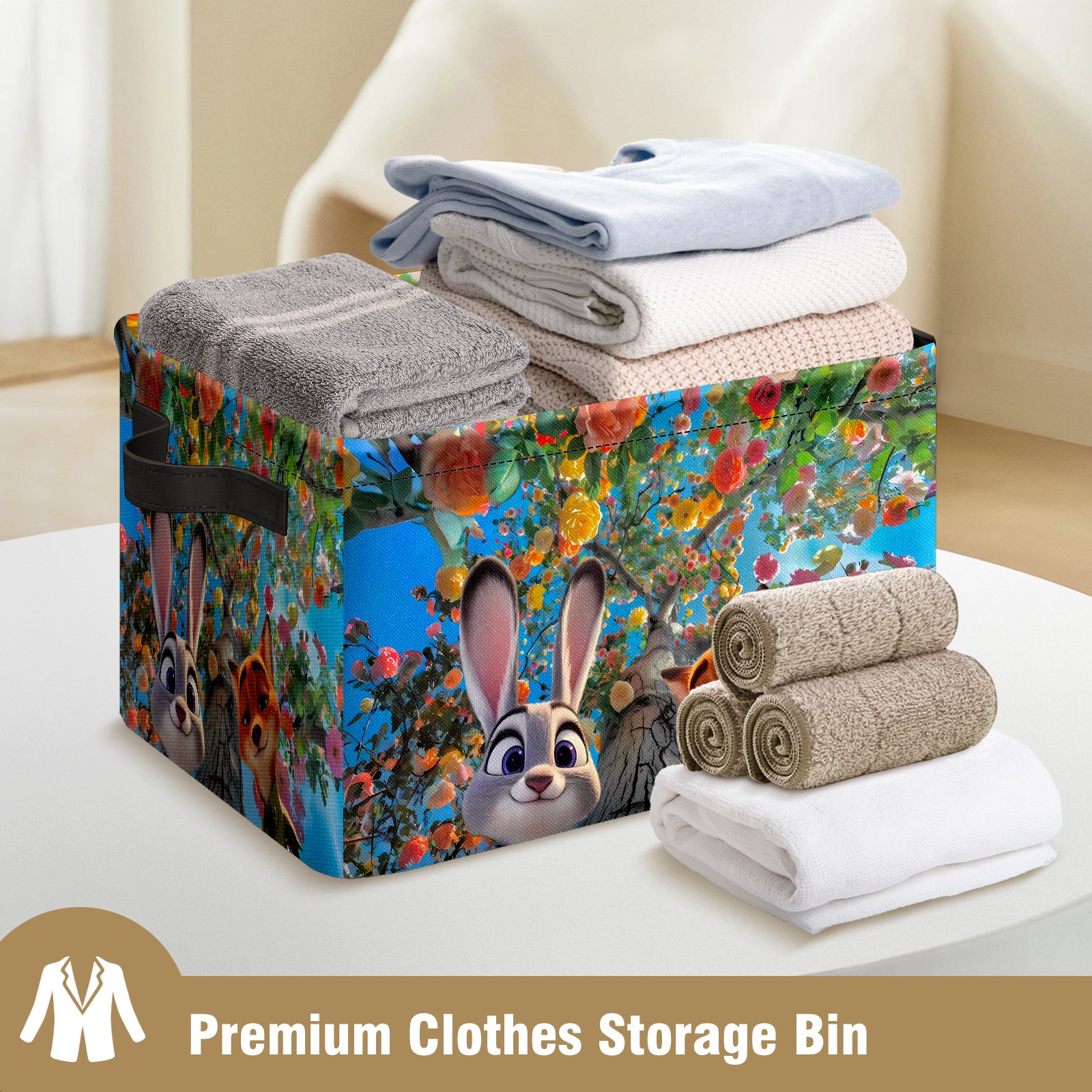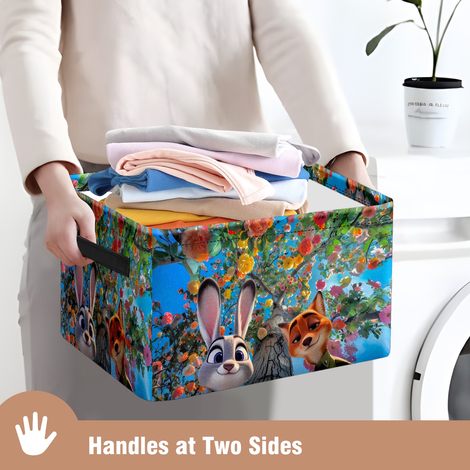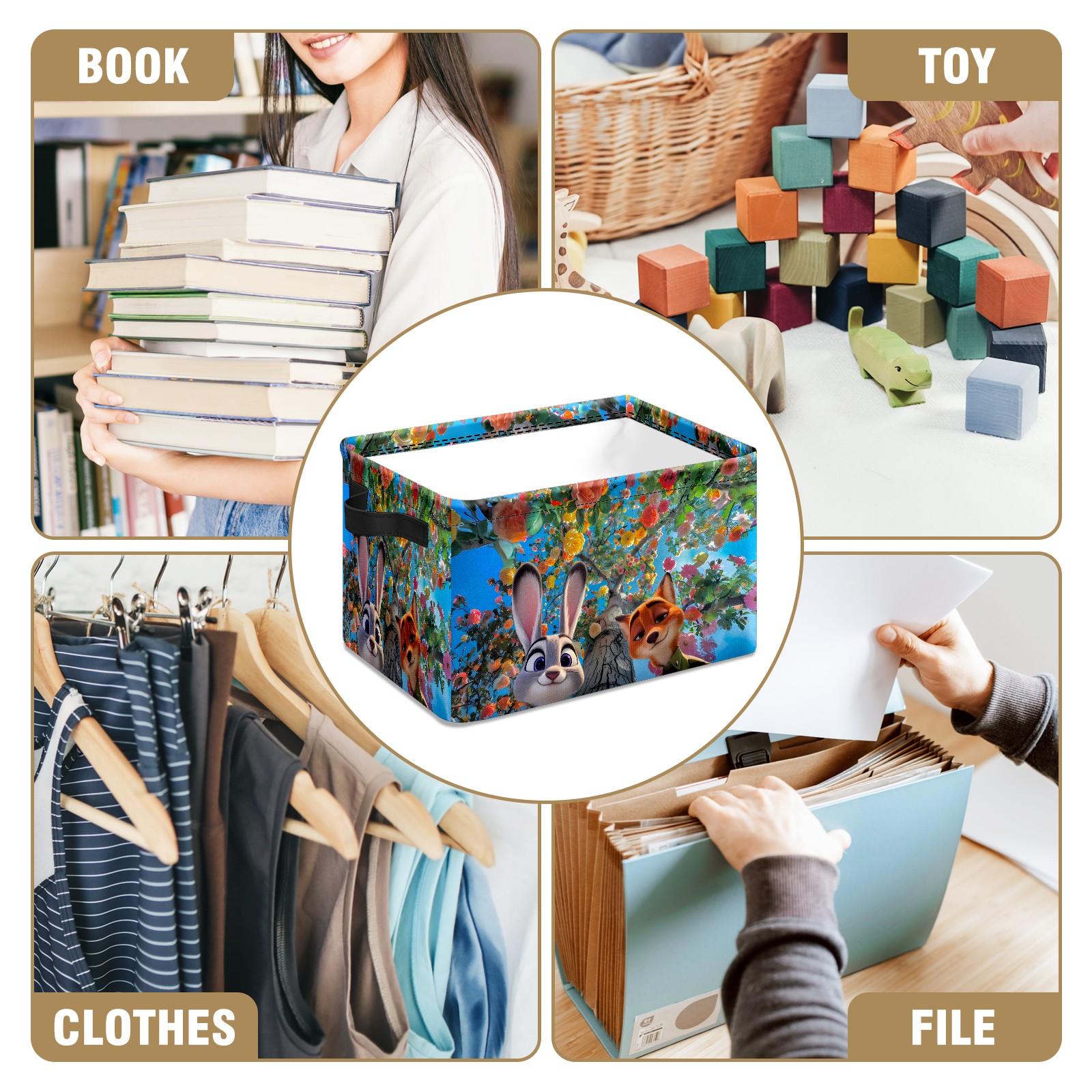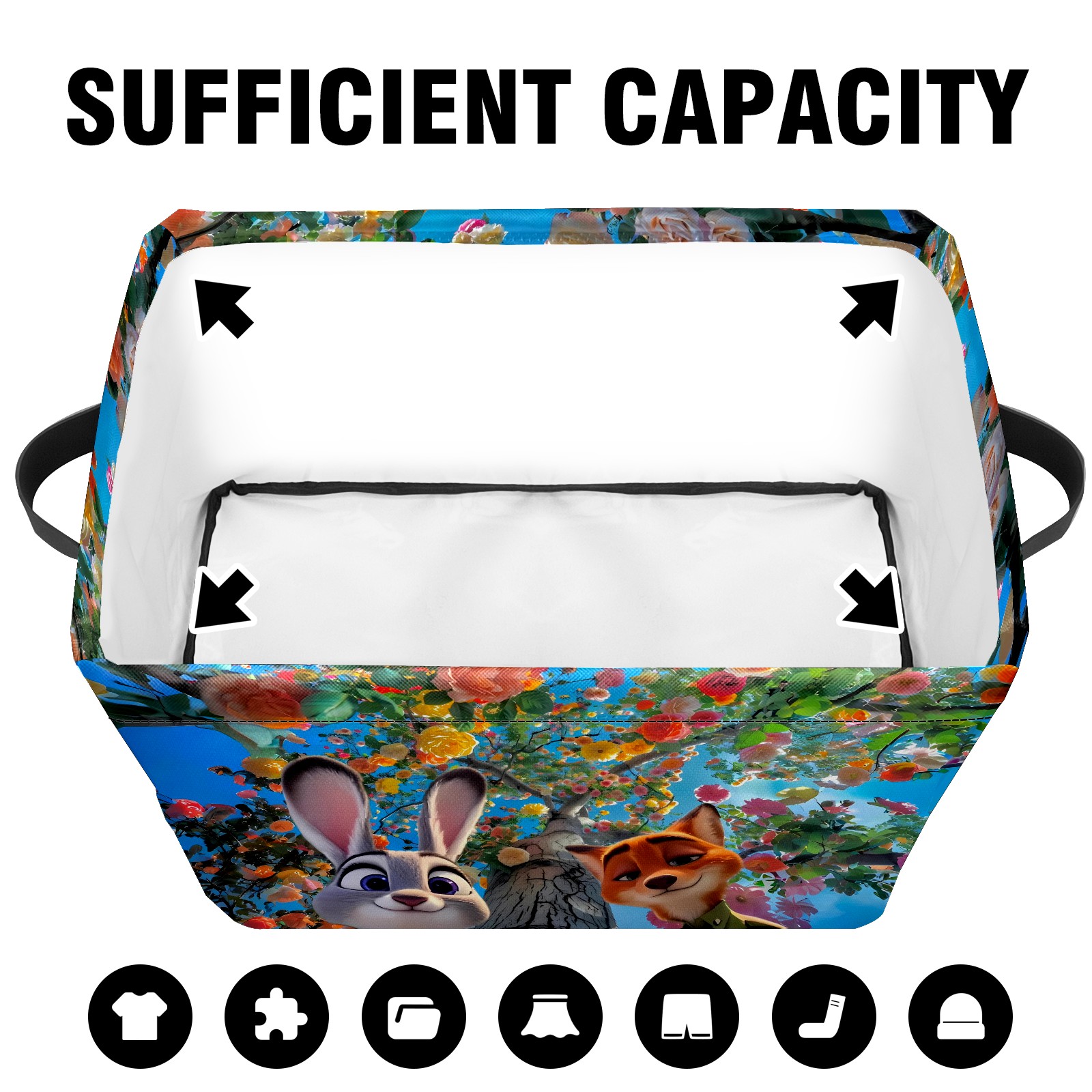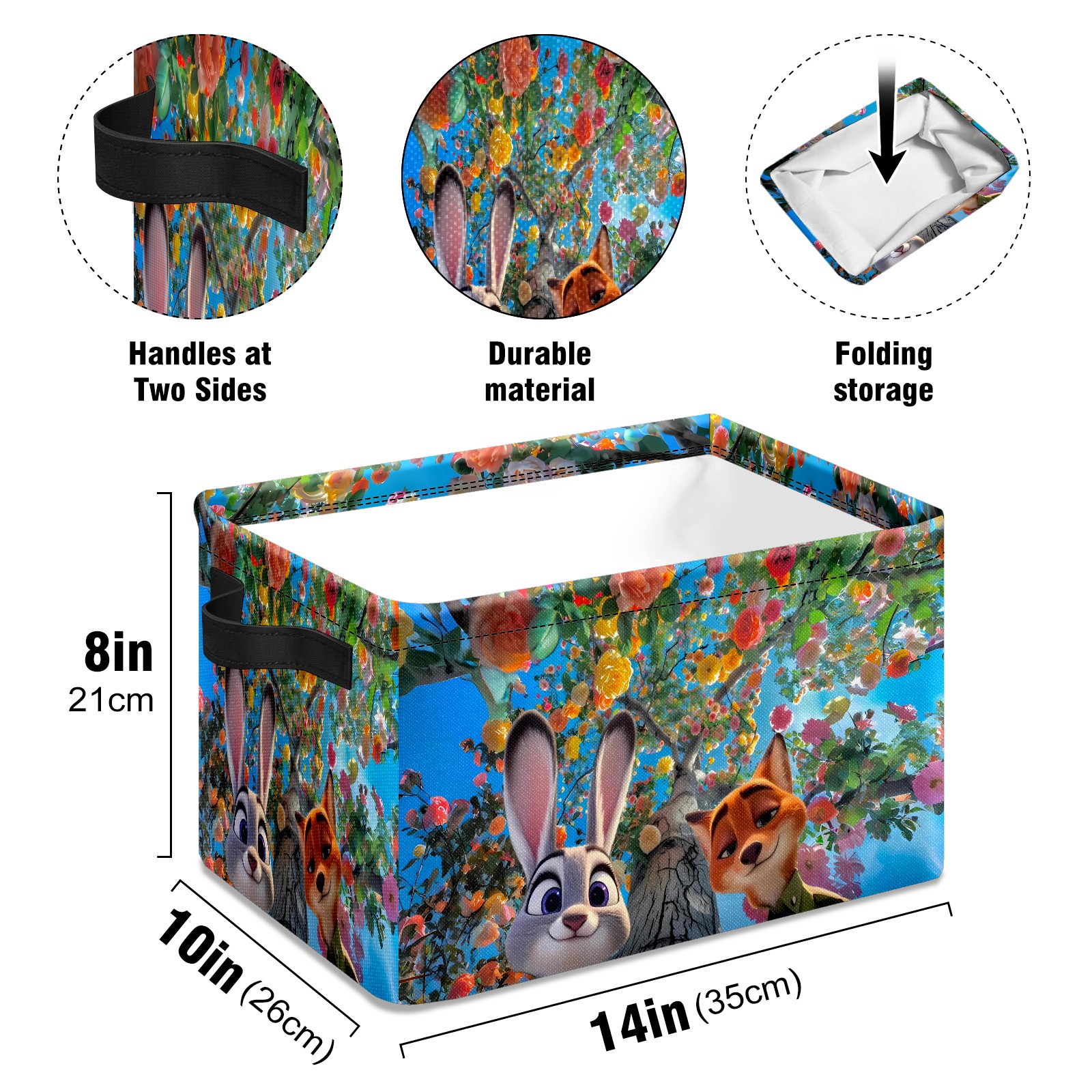 Foldable and Stackable Fabric Storage Basket for Home Organization with Handles, Decorative Closet Bins for Shelves and Laundry Storage( 疯狂动物城 IPad版 05)