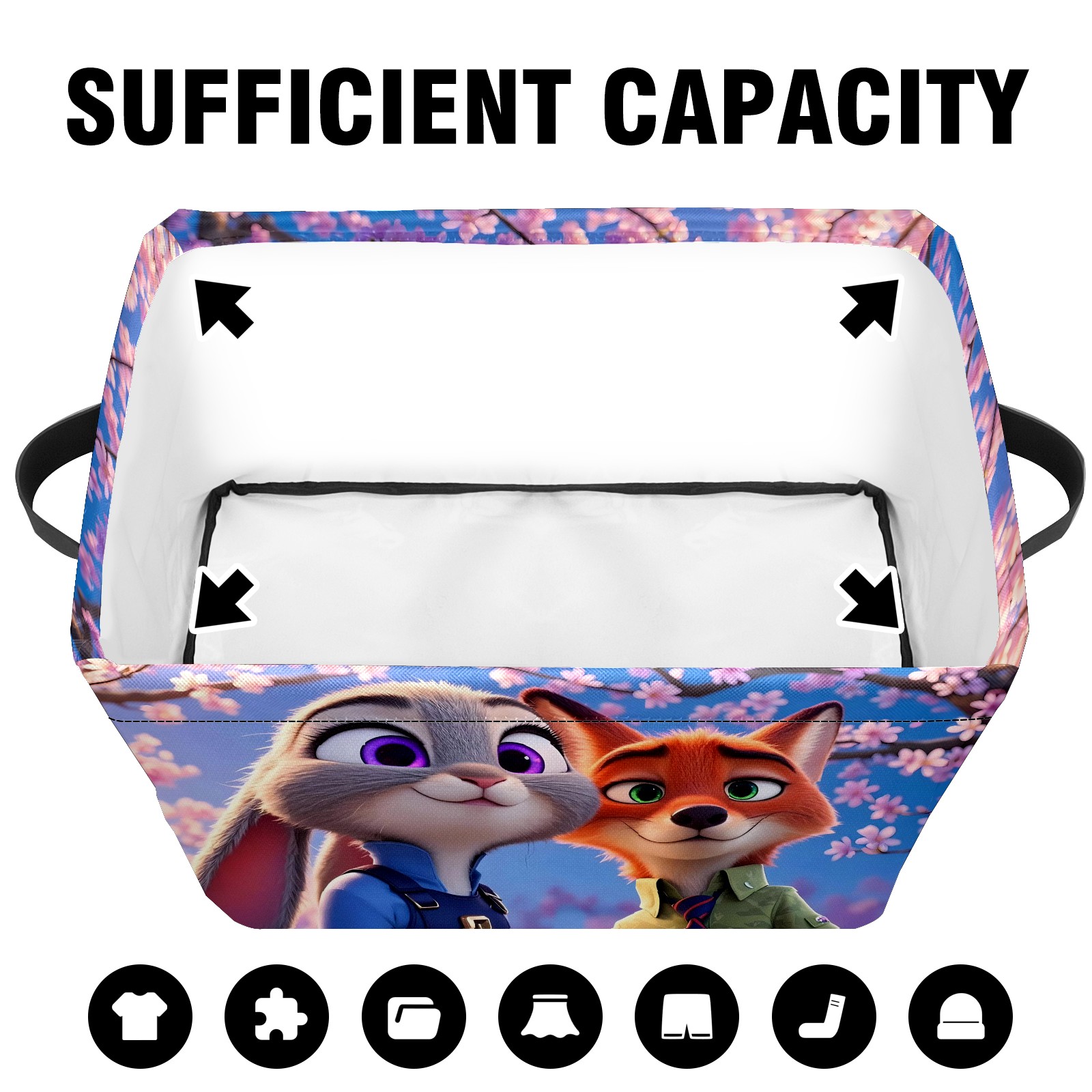 Foldable and Stackable Fabric Storage Basket for Home Organization with Handles, Decorative Closet Bins for Shelves and Laundry Storage( 疯狂动物城 IPad版 01)