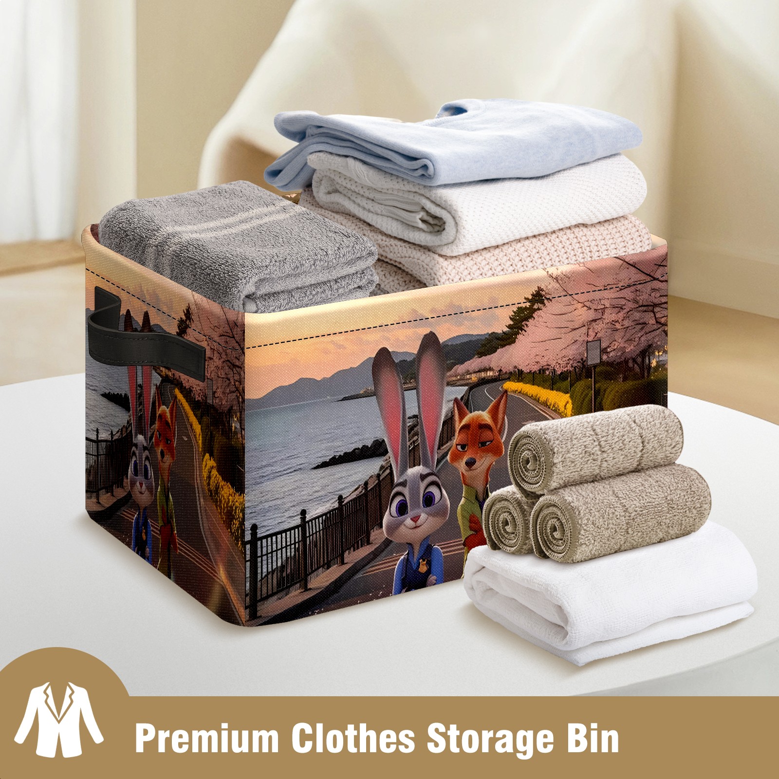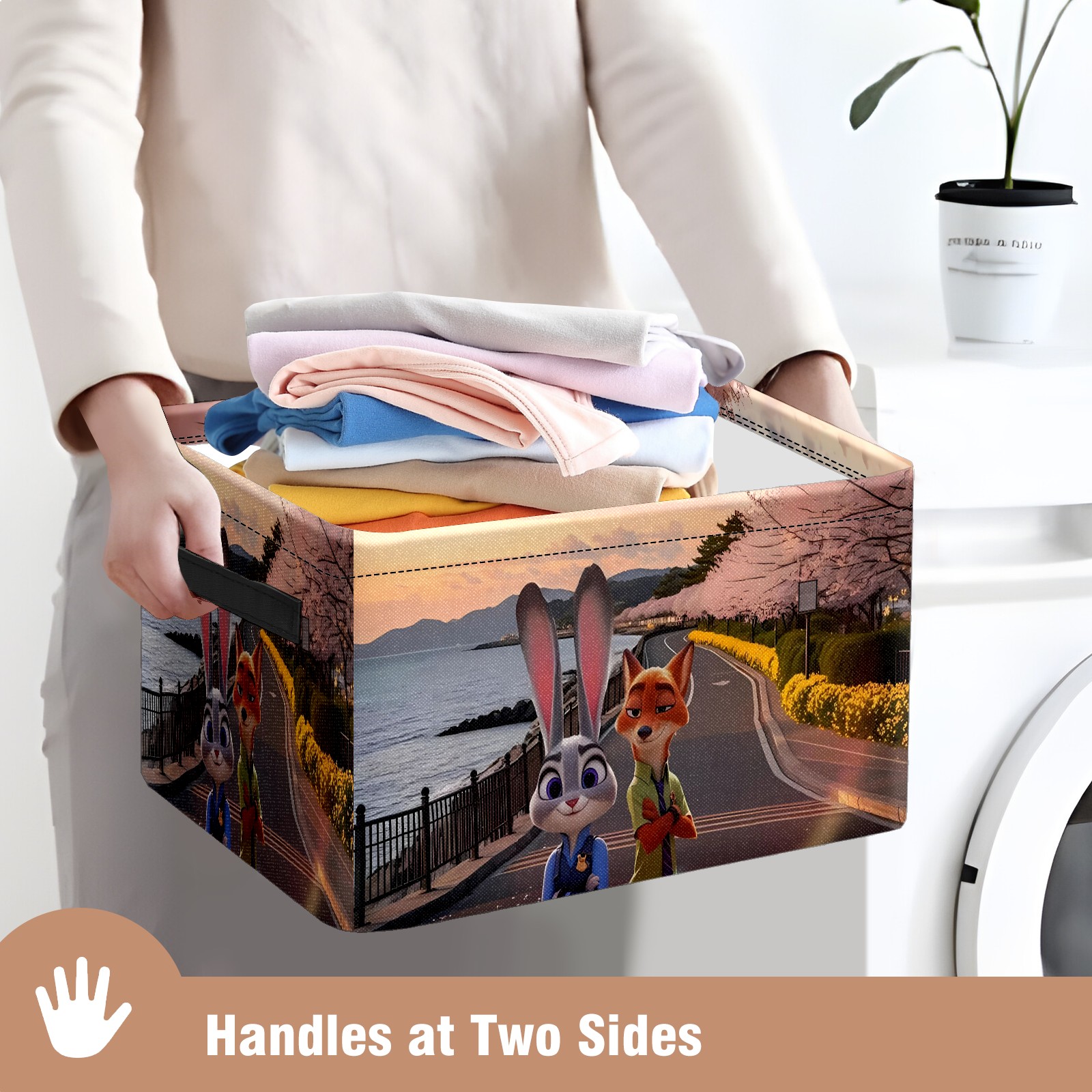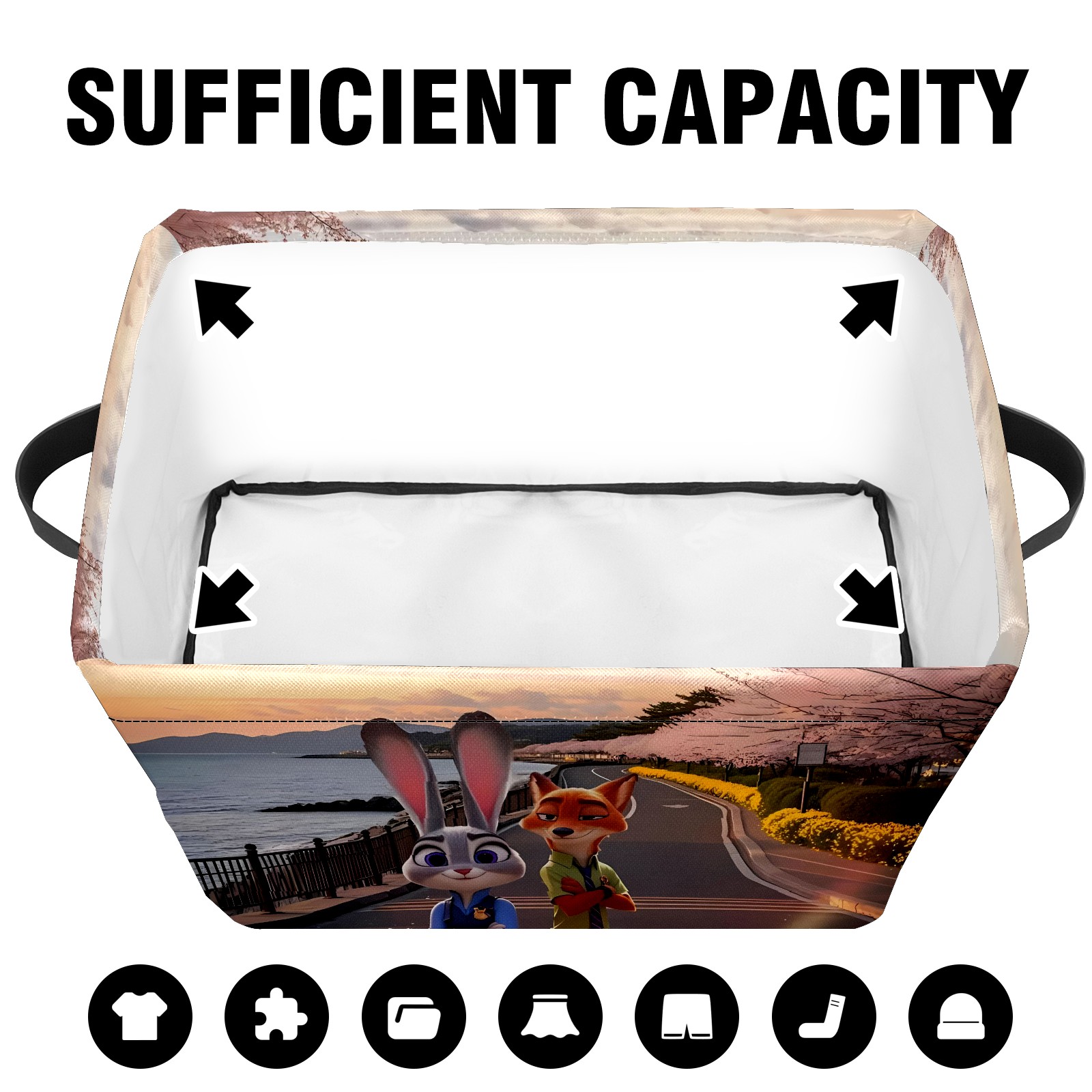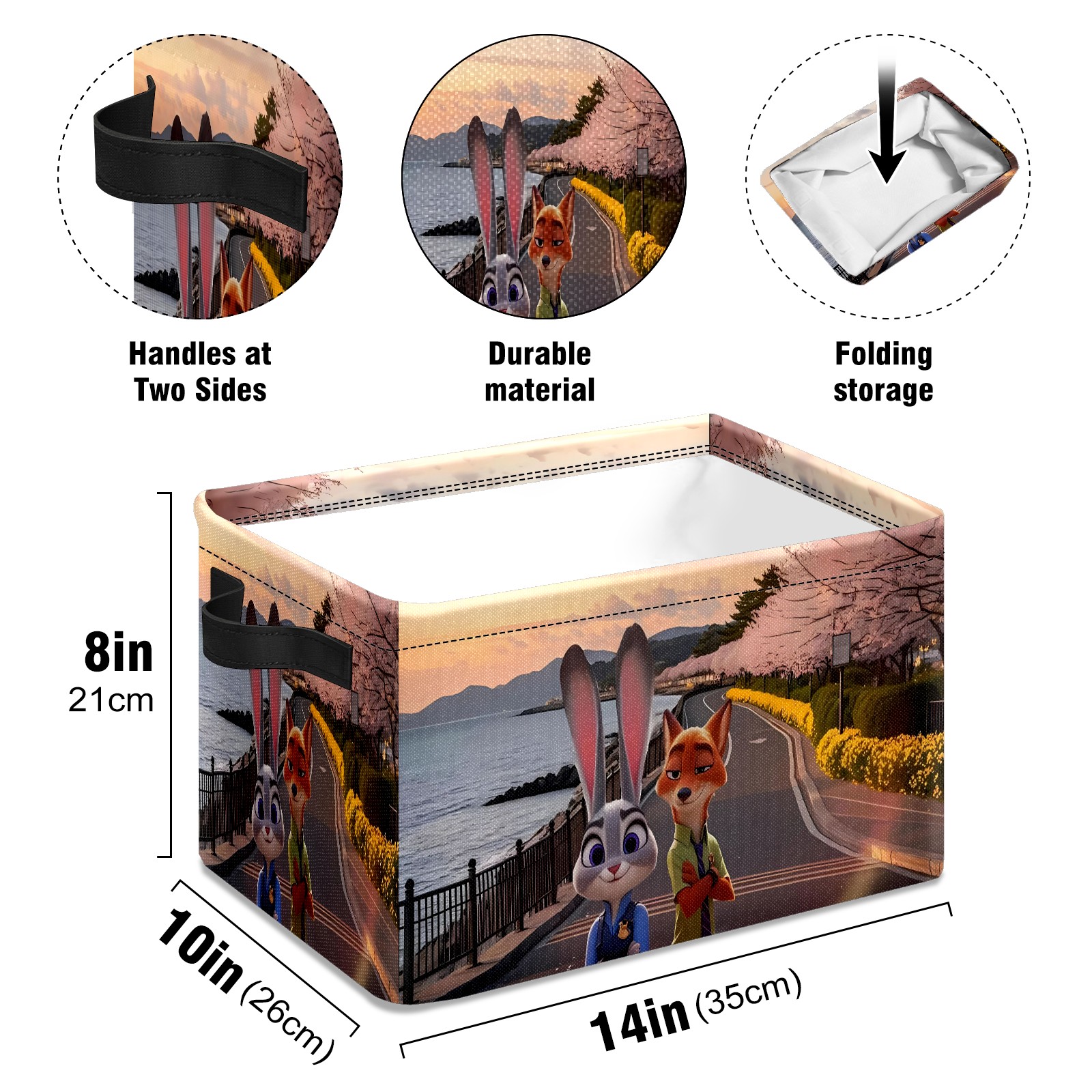 Foldable and Stackable Fabric Storage Basket for Home Organization with Handles, Decorative Closet Bins for Shelves and Laundry Storage( 疯狂动物城 IPad 新增01)