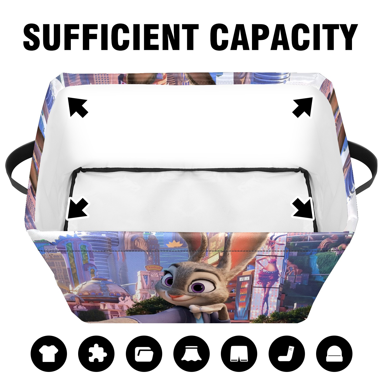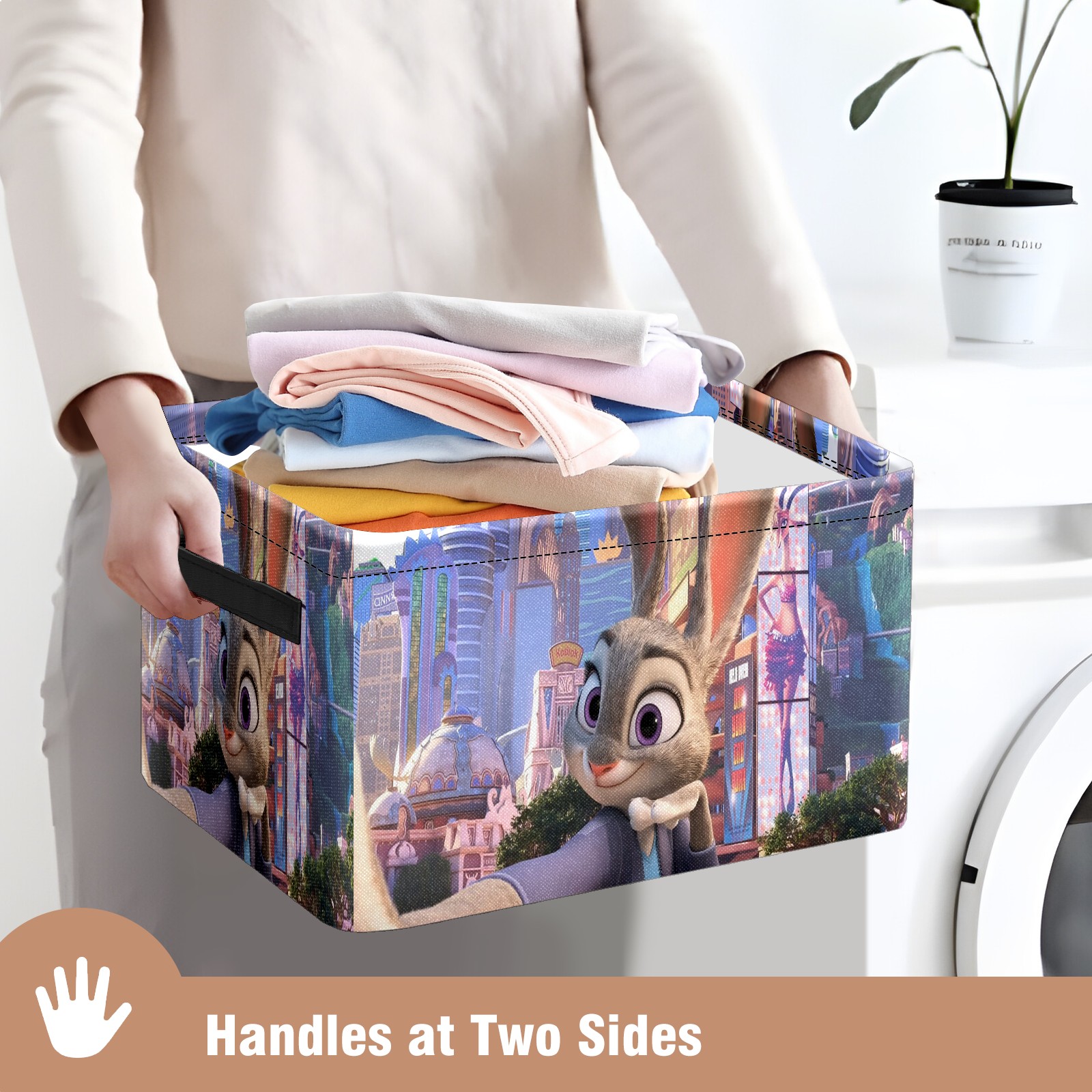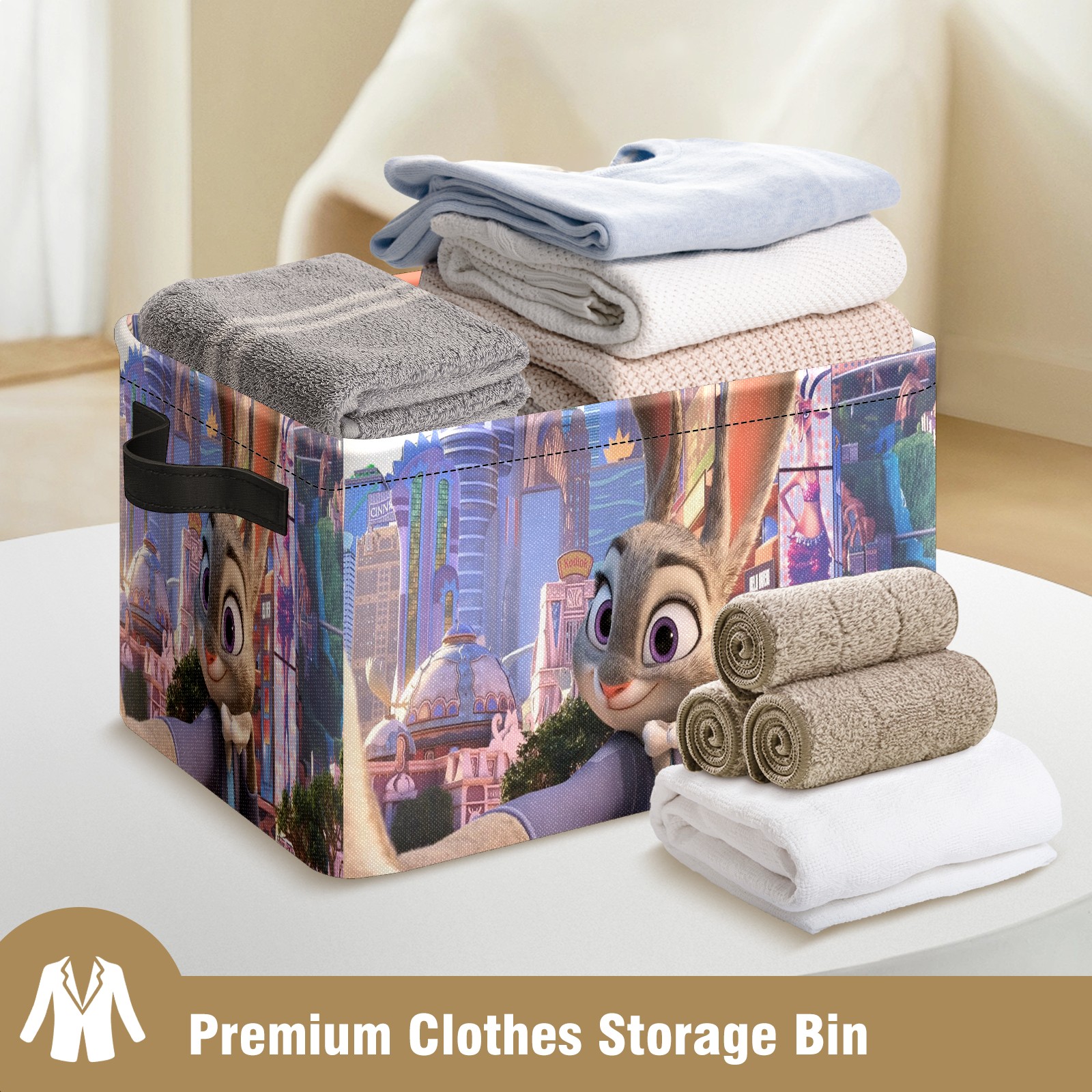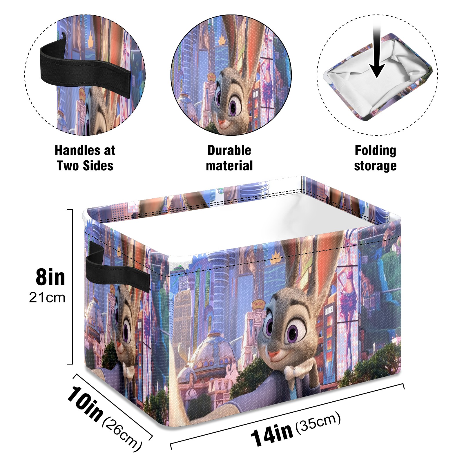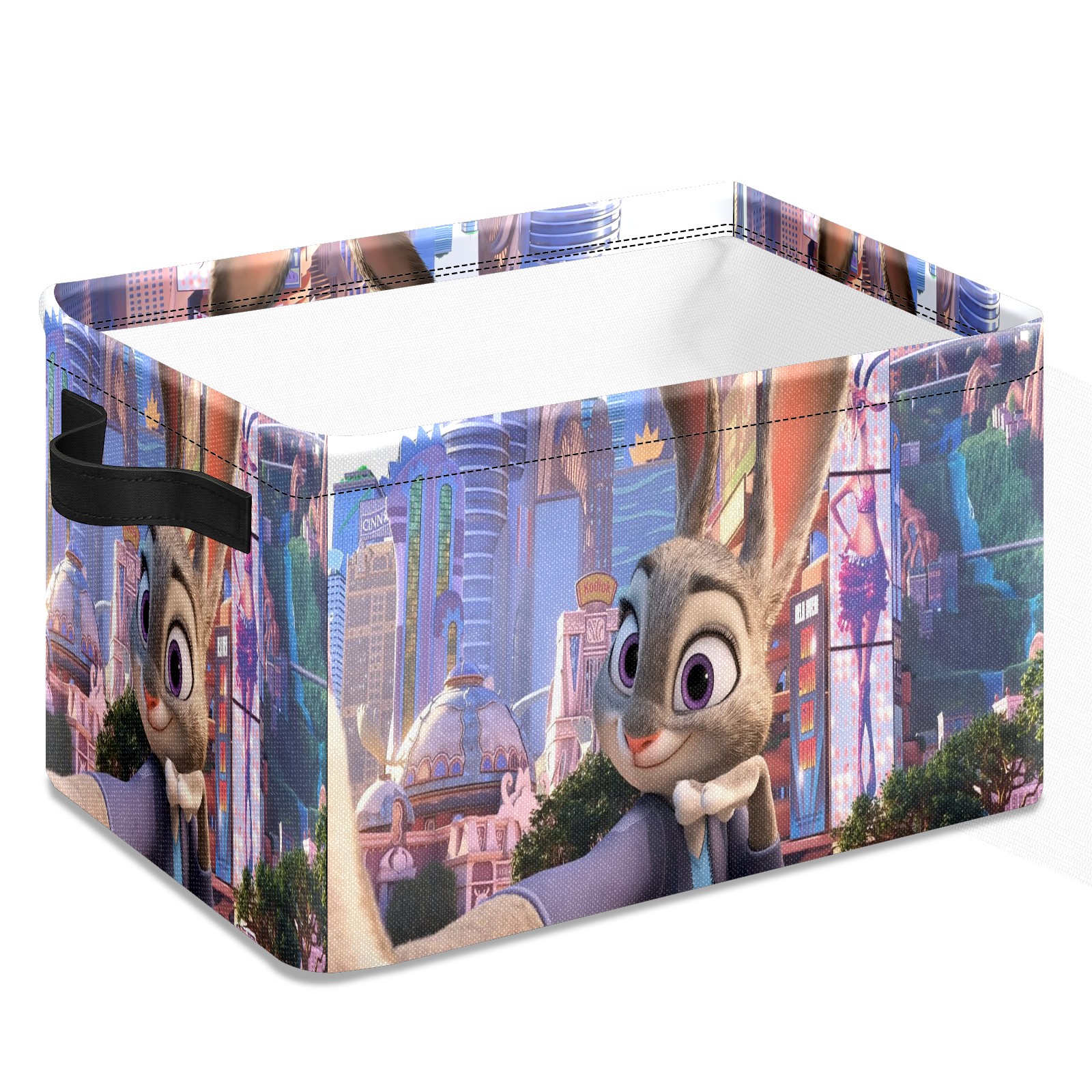 Foldable and Stackable Fabric Storage Basket for Home Organization with Handles, Decorative Closet Bins for Shelves and Laundry Storage( 疯狂动物城 电脑04)