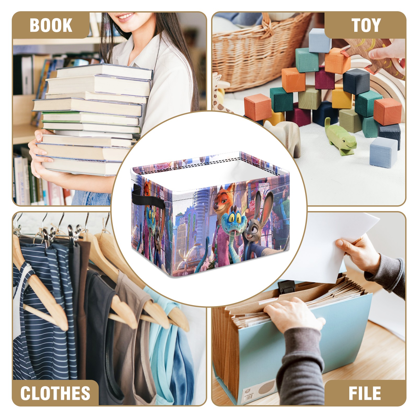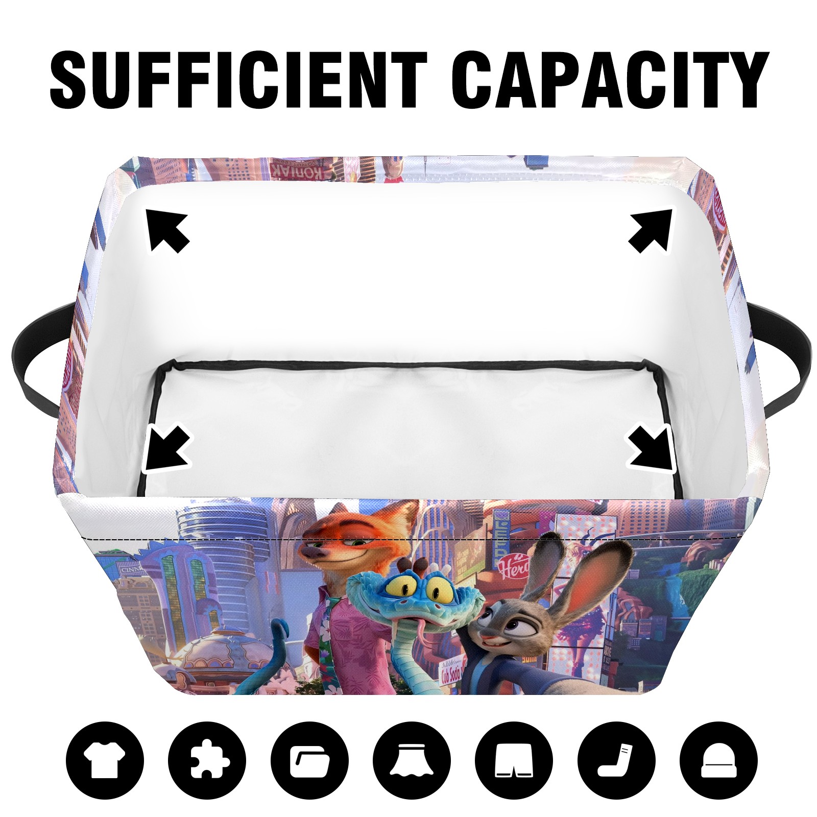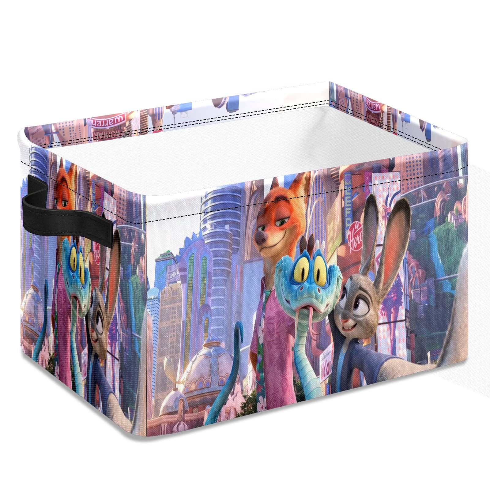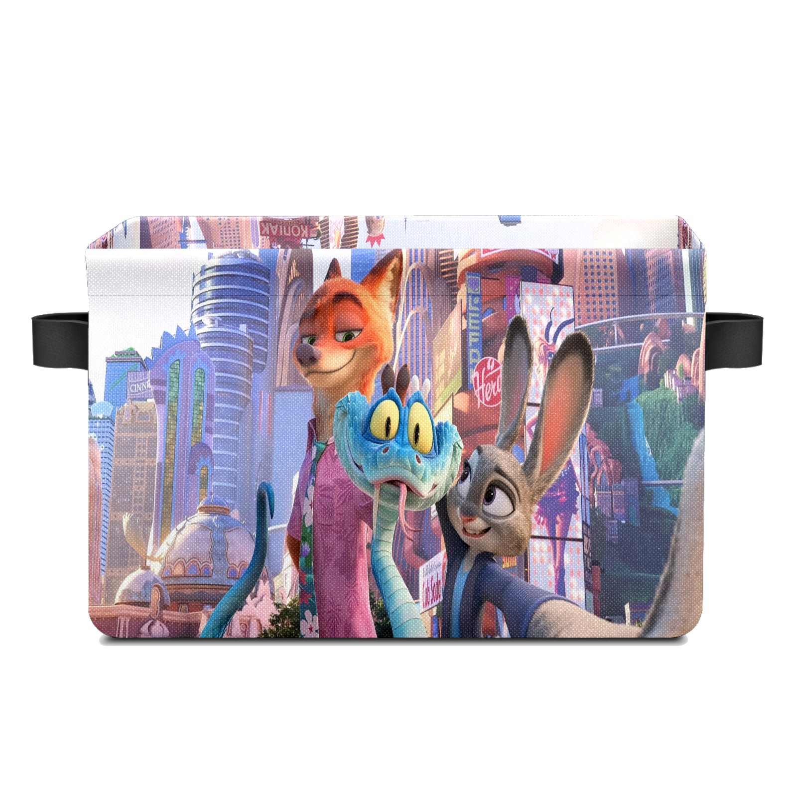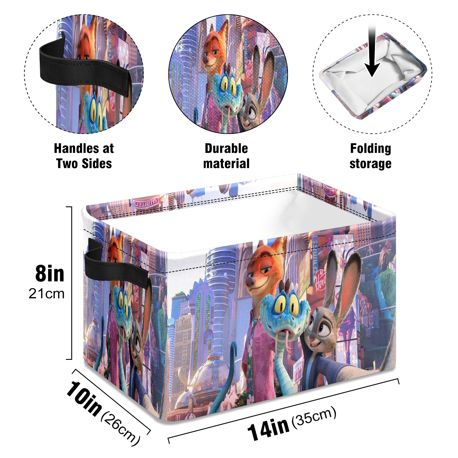 Foldable and Stackable Fabric Storage Basket for Home Organization with Handles, Decorative Closet Bins for Shelves and Laundry Storage( 疯狂动物城 电脑03)