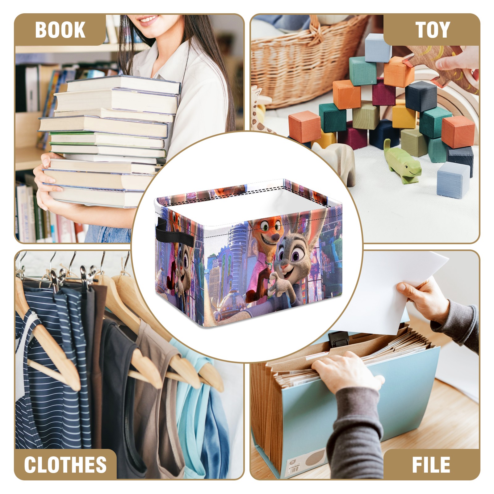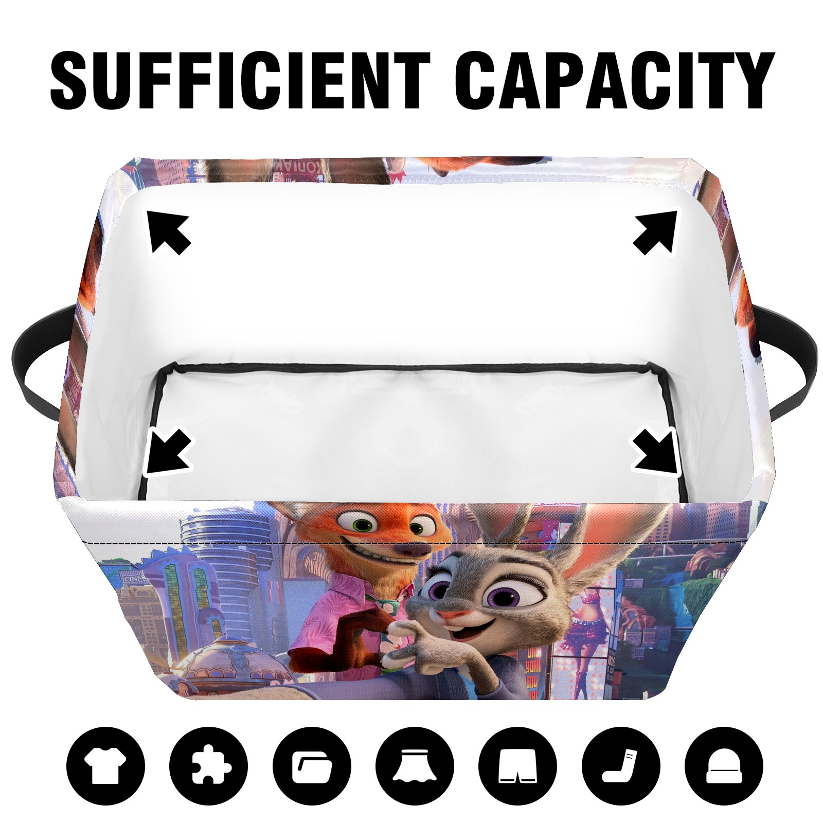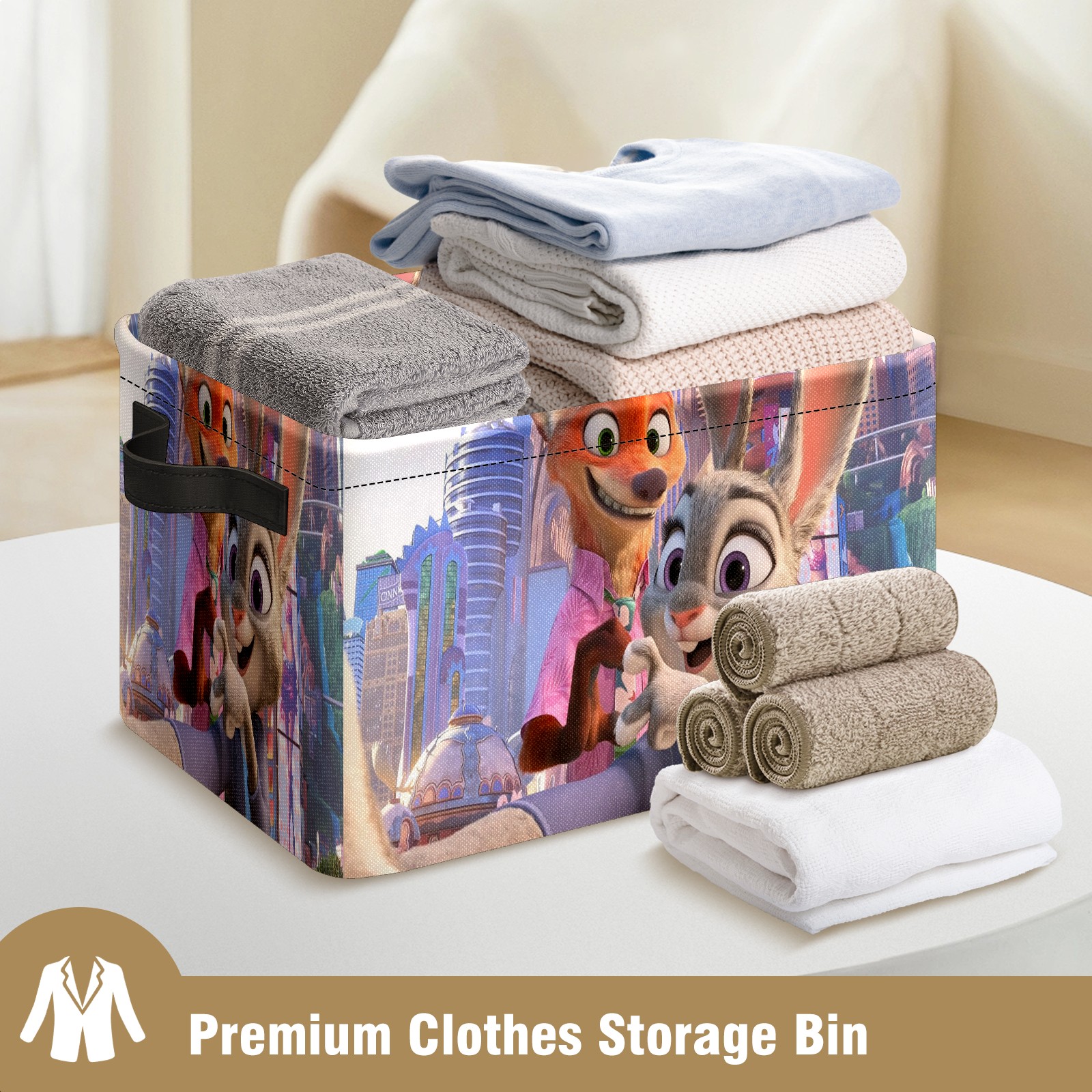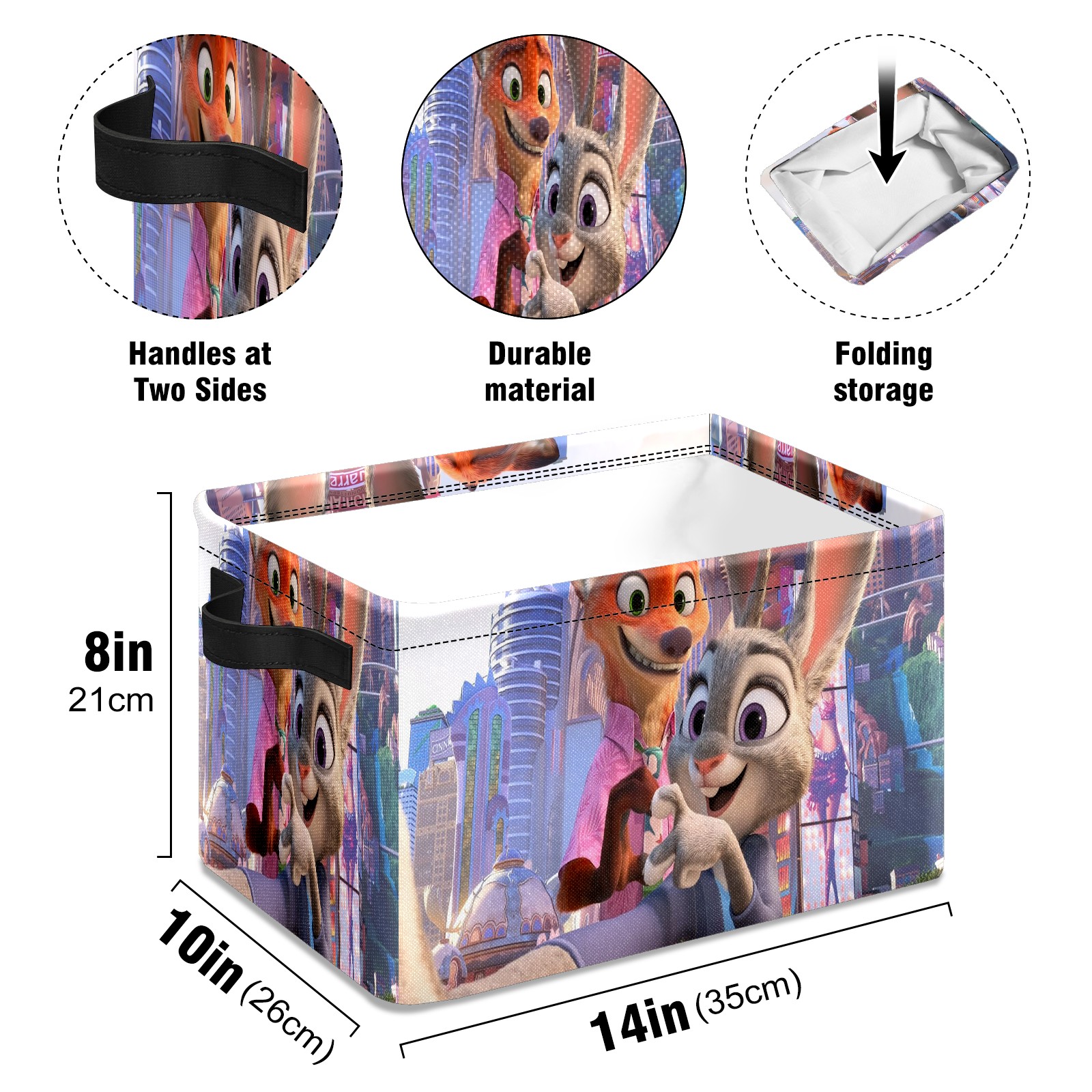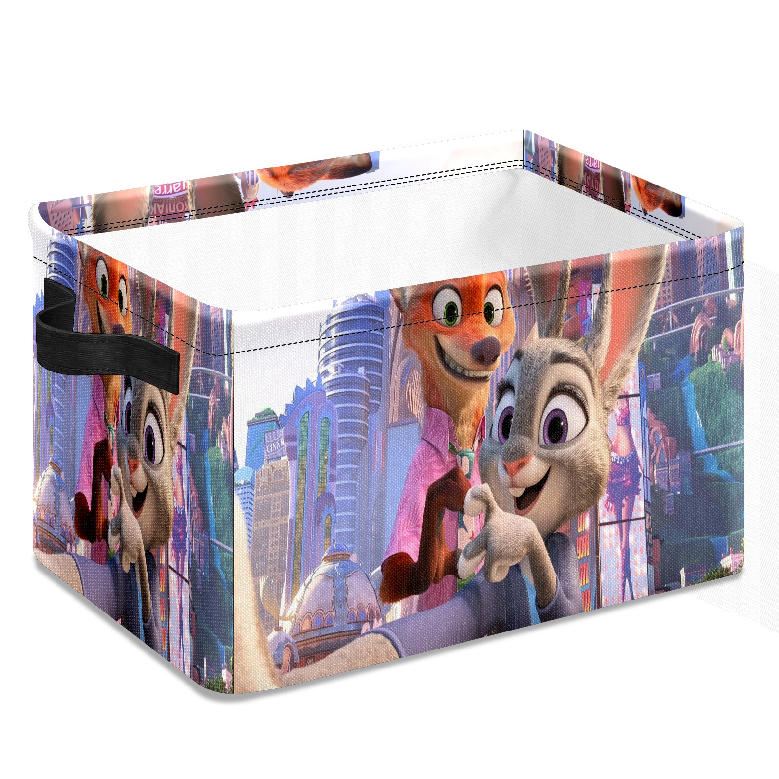 Foldable and Stackable Fabric Storage Basket for Home Organization with Handles, Decorative Closet Bins for Shelves and Laundry Storage( 疯狂动物城 电脑01)