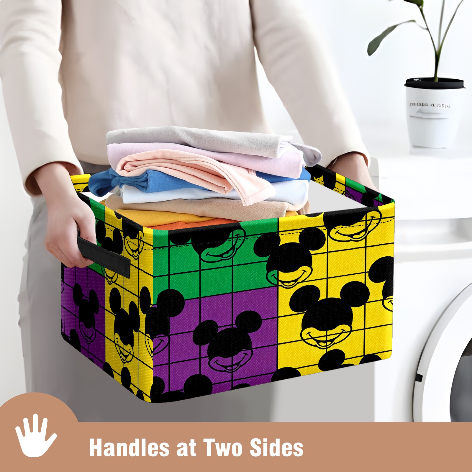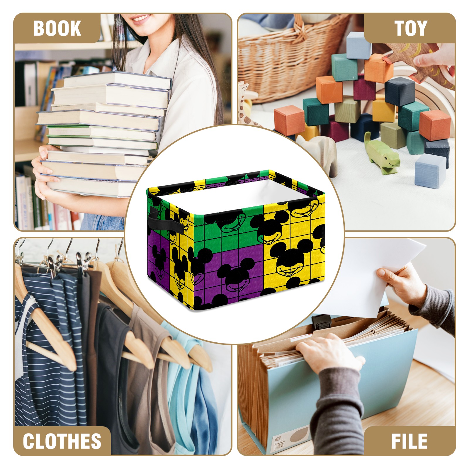 Foldable and Stackable Fabric Storage Basket for Home Organization with Handles, Decorative Closet Bins for Shelves and Laundry Storage( Cool Mouse Black)