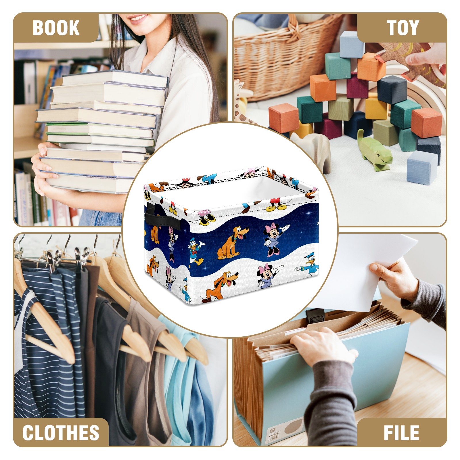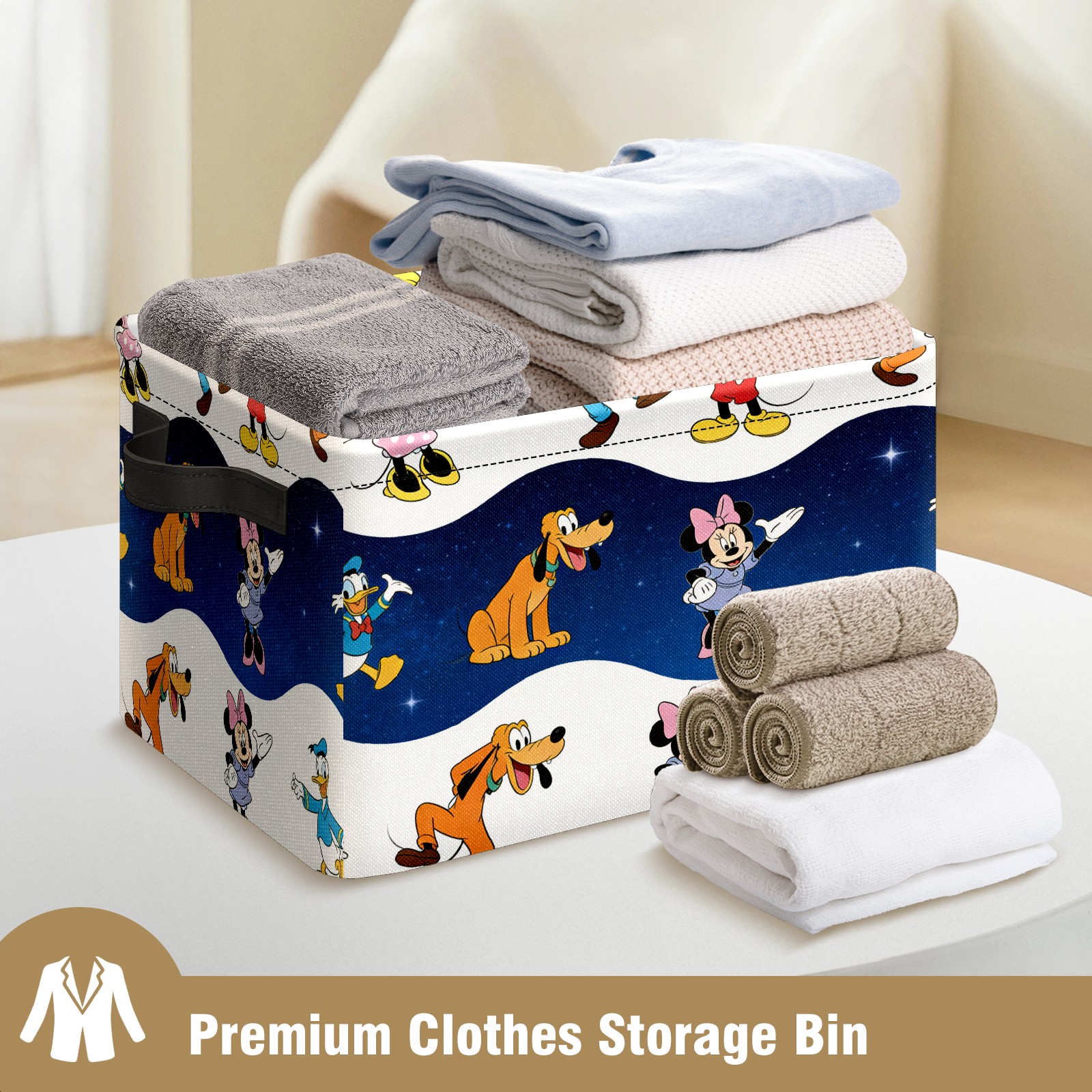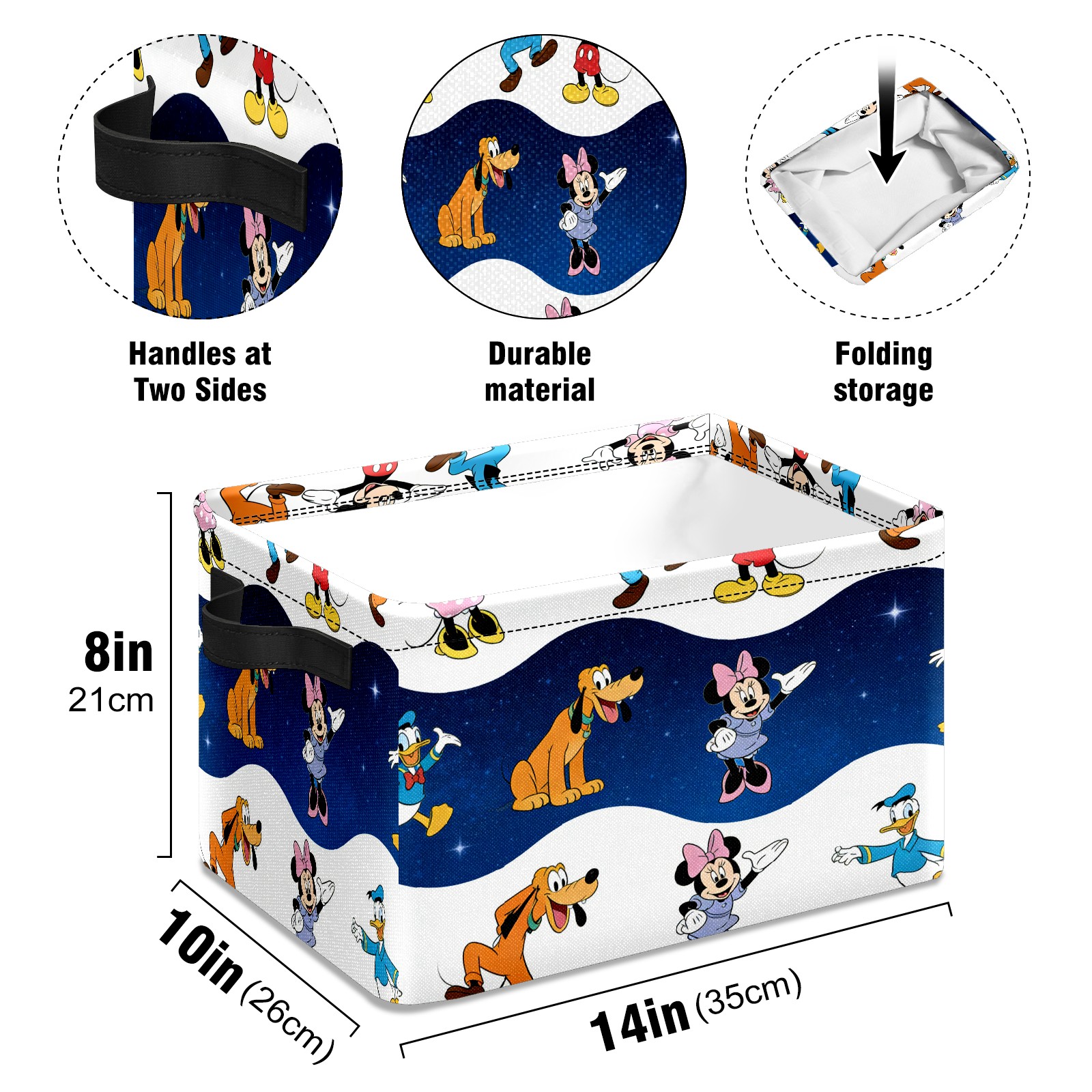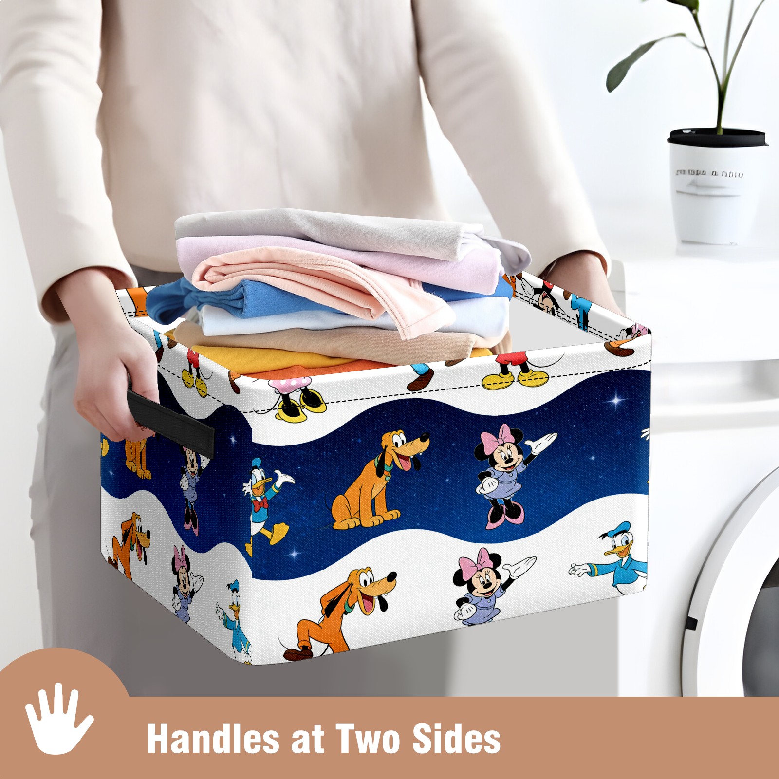 Foldable and Stackable Fabric Storage Basket for Home Organization with Handles, Decorative Closet Bins for Shelves and Laundry Storage( Cheerful Character White)