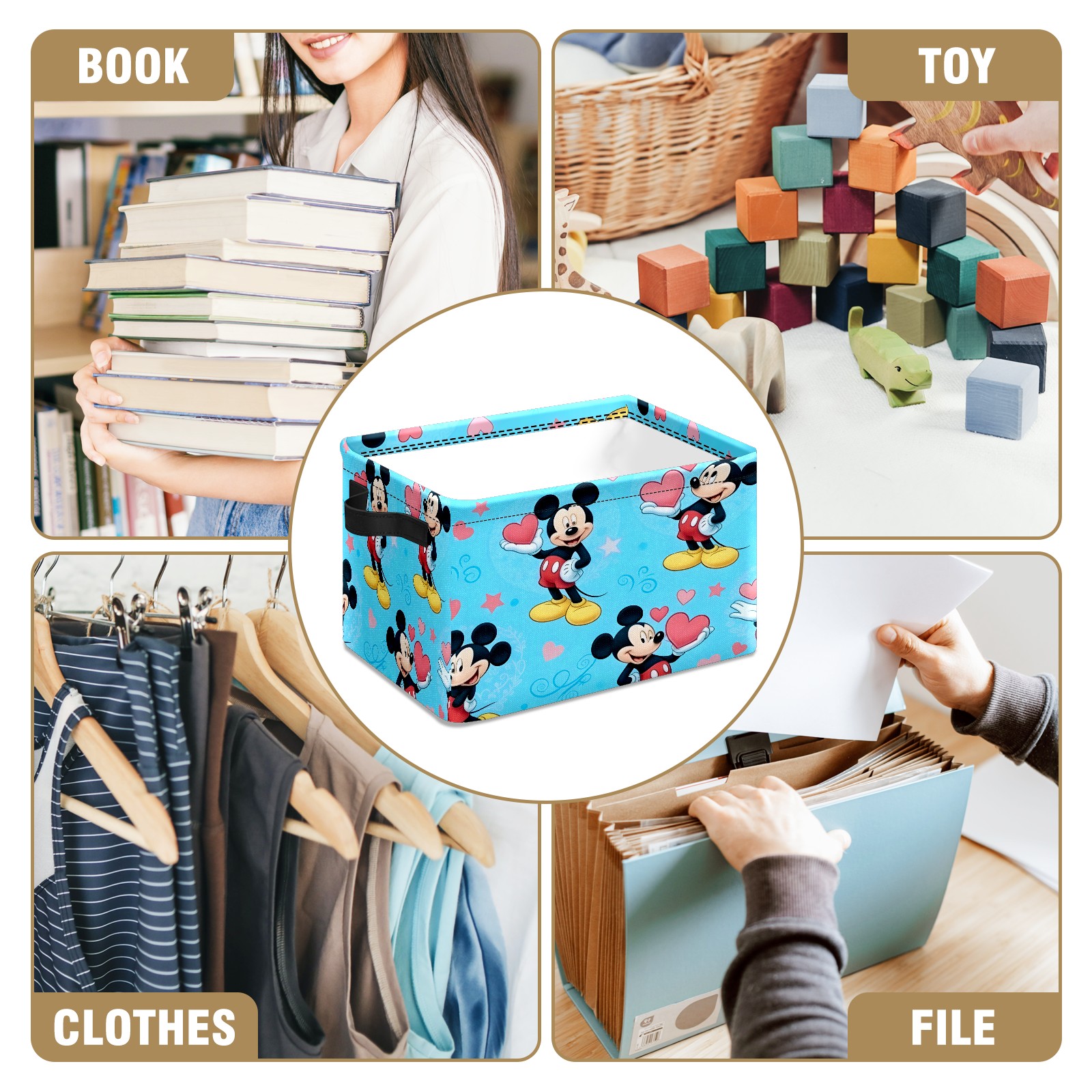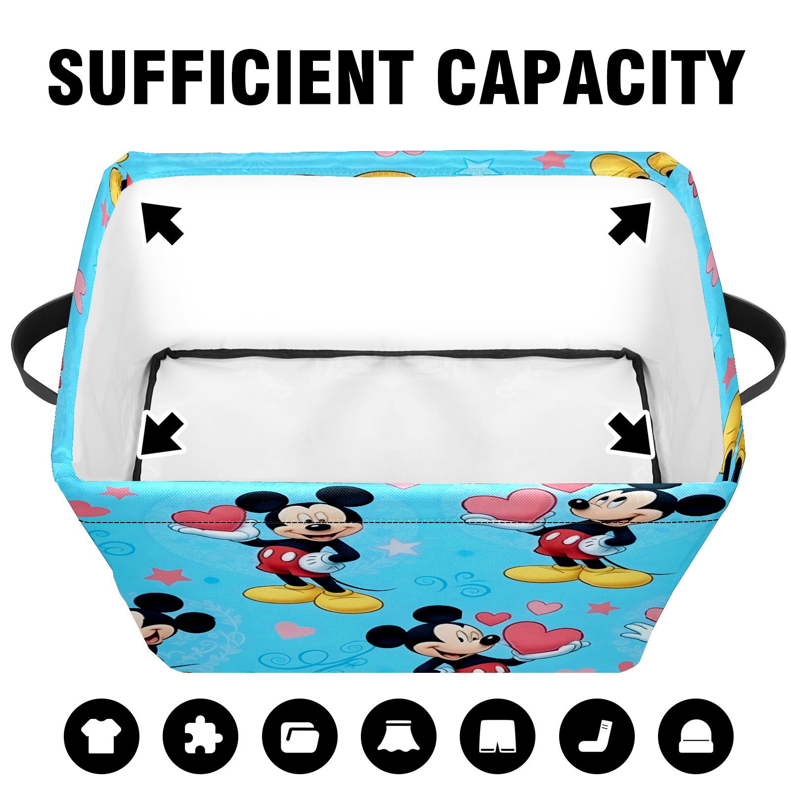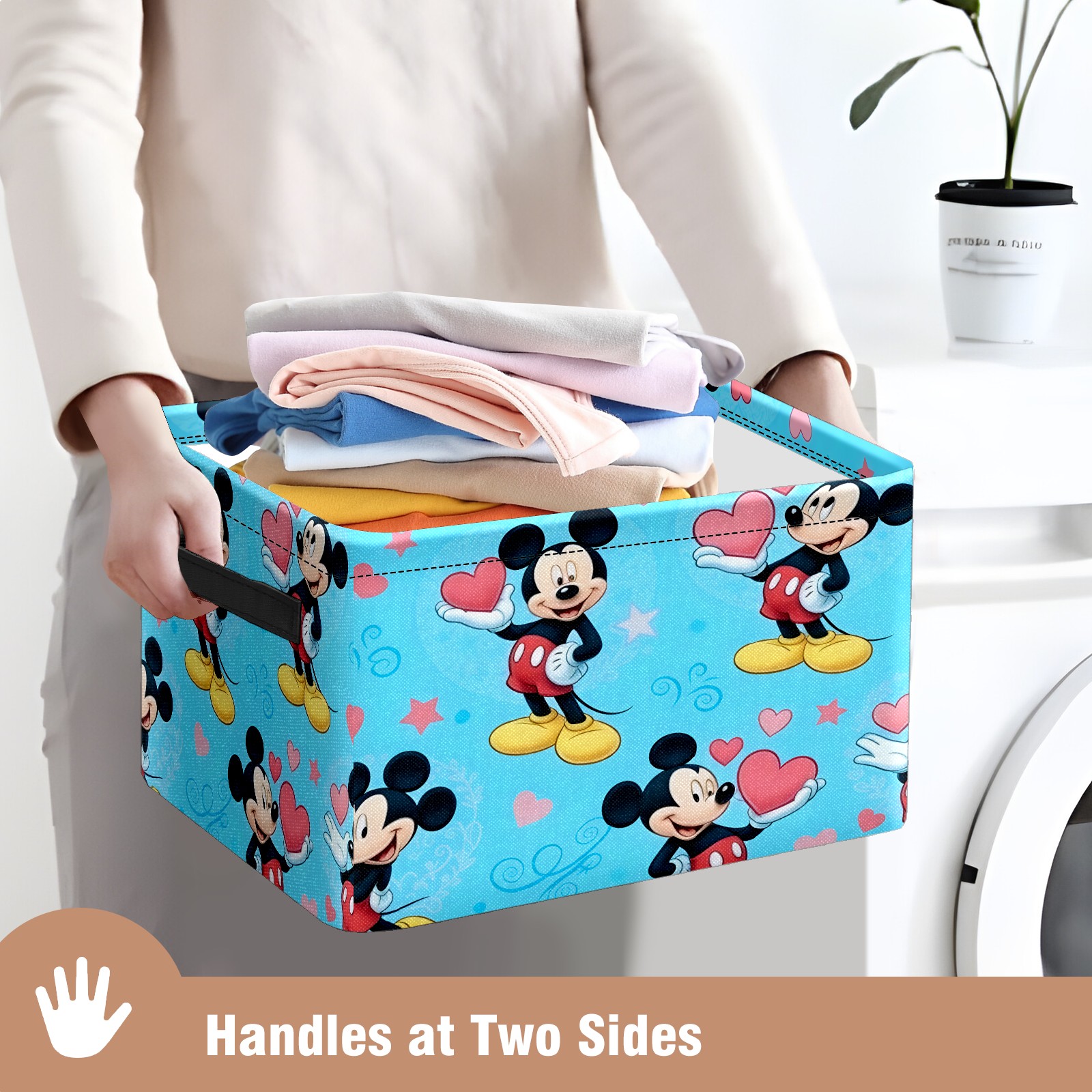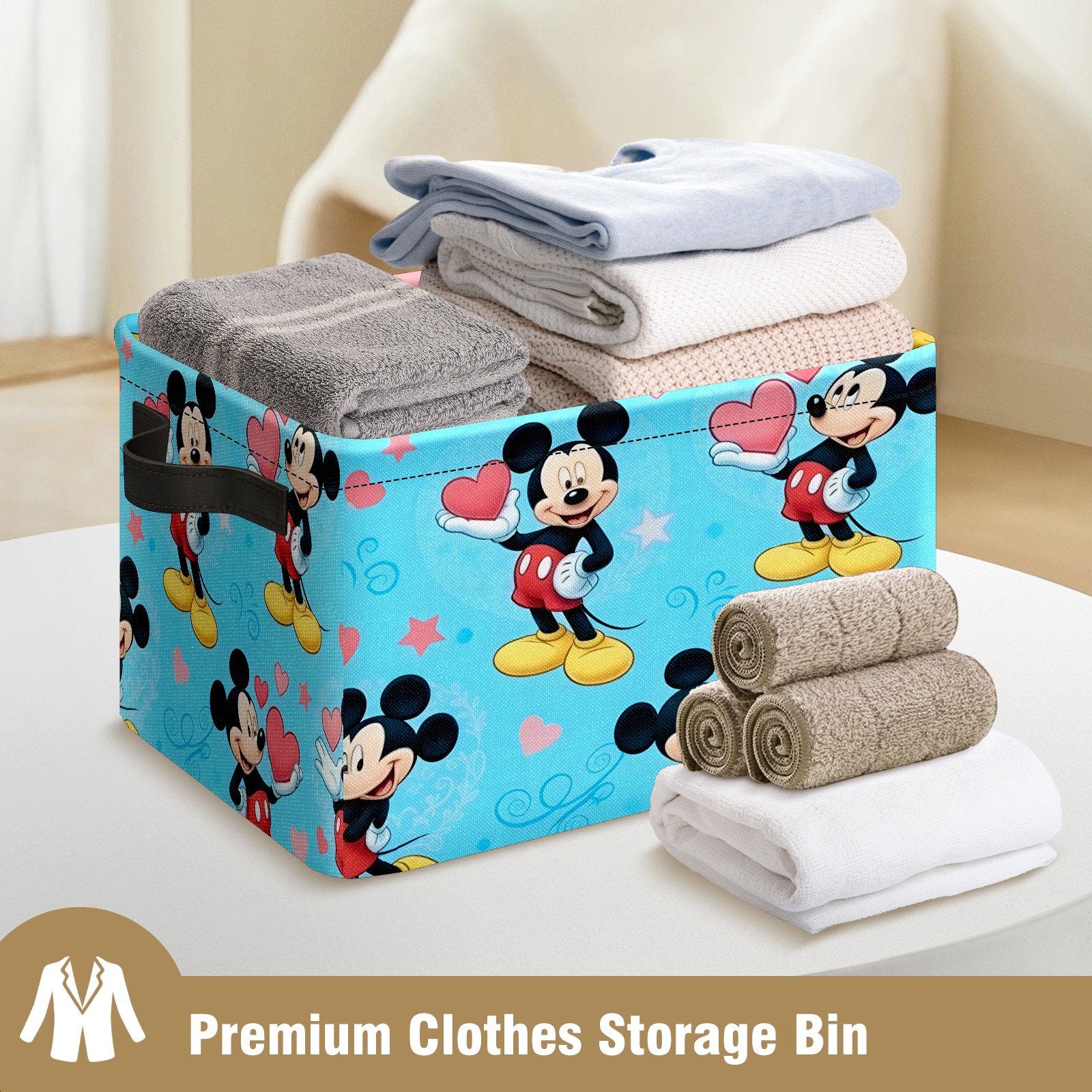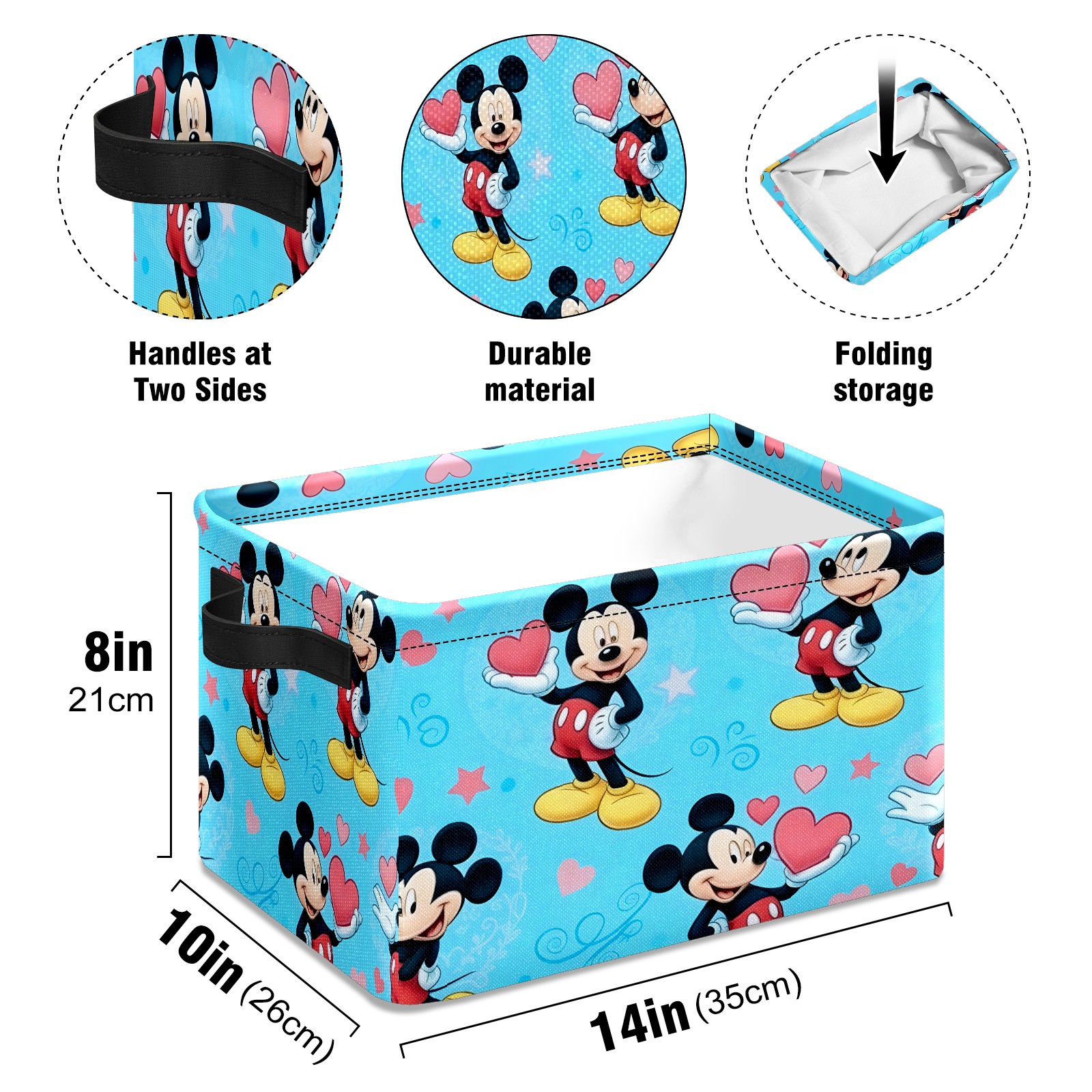 Foldable and Stackable Fabric Storage Basket for Home Organization with Handles, Decorative Closet Bins for Shelves and Laundry Storage( Romantic Mouse Blue)